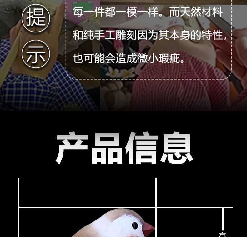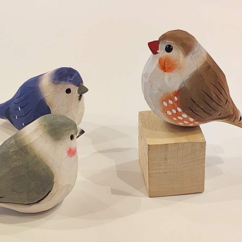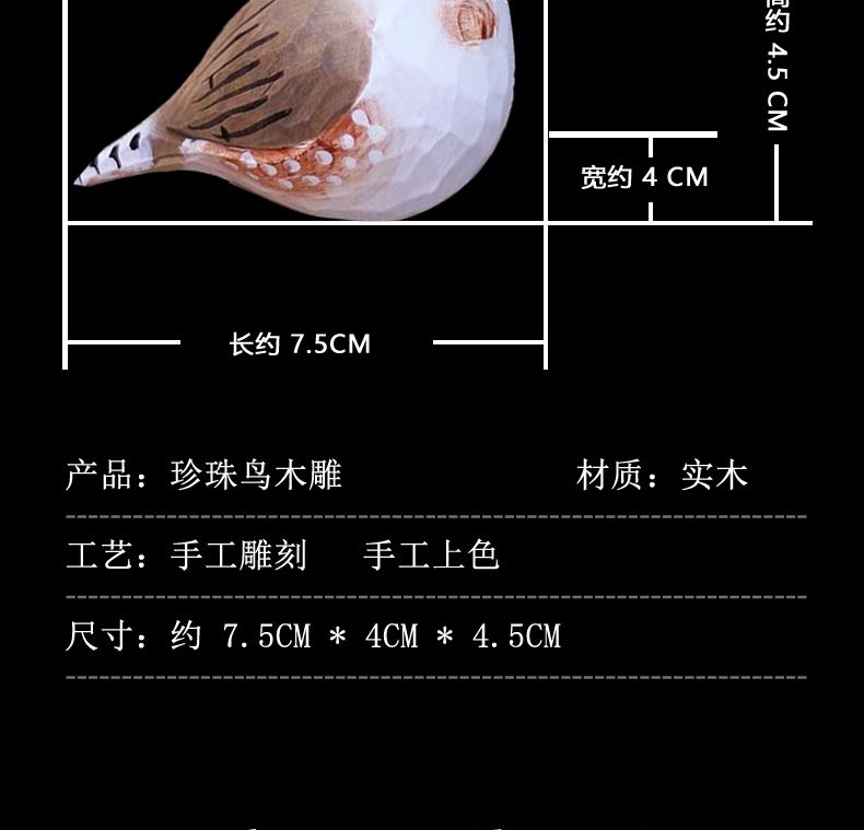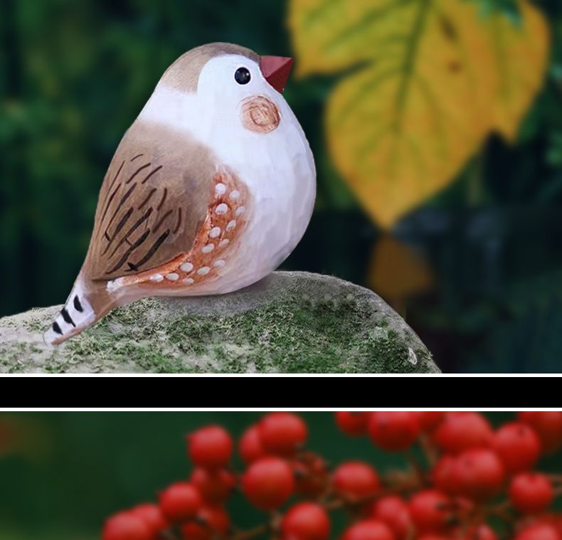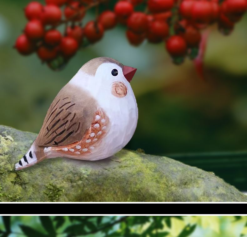 珍珠鸟纯手工木雕小鸟仿真木制雕刻朋友礼物小众高级可爱桌面摆件