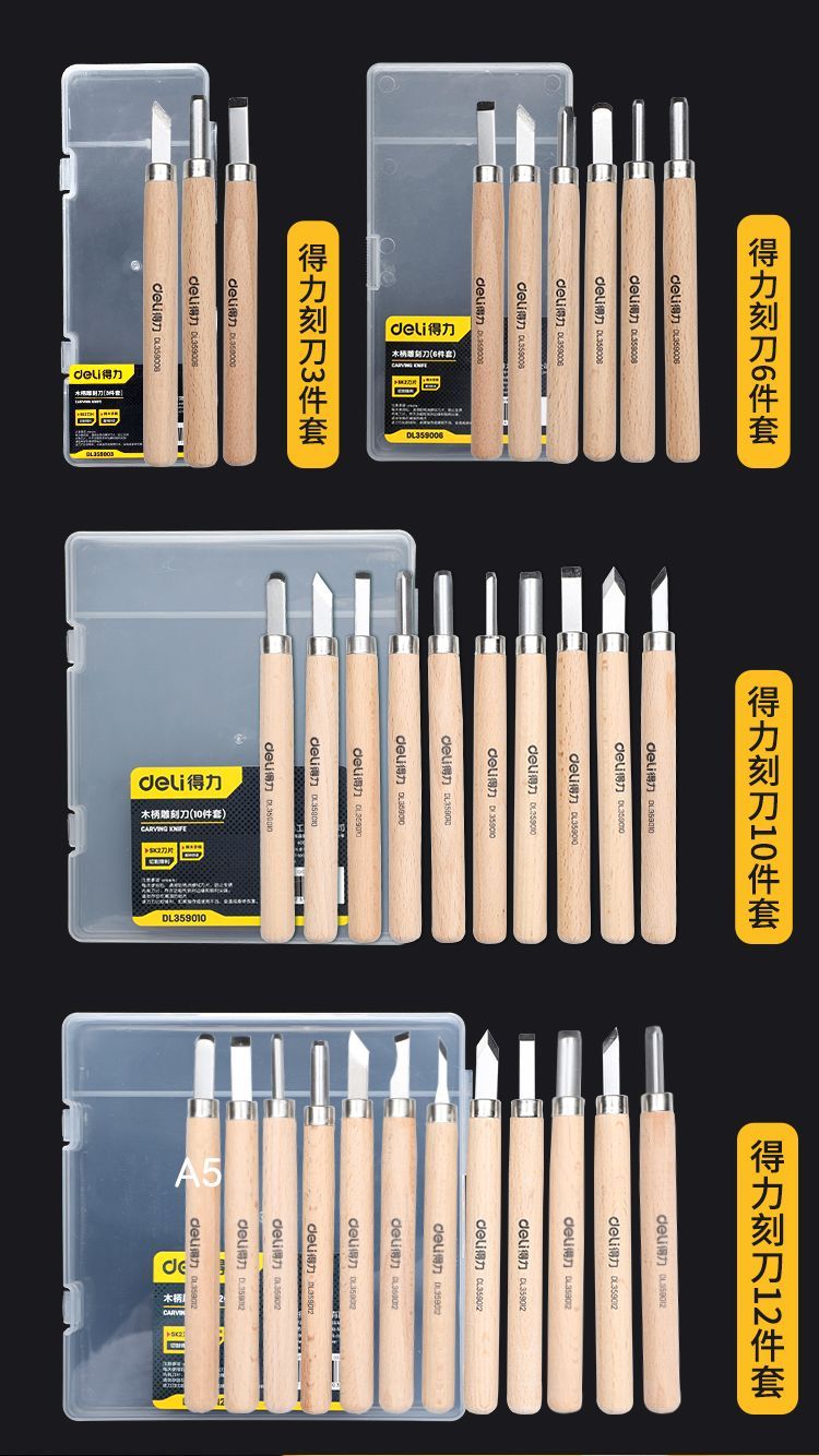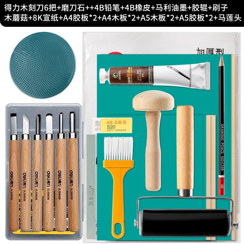 | 得力木刻刀6件套+A4胶板2张+磨刀石 | USD $6.15 | 99999 piece available |