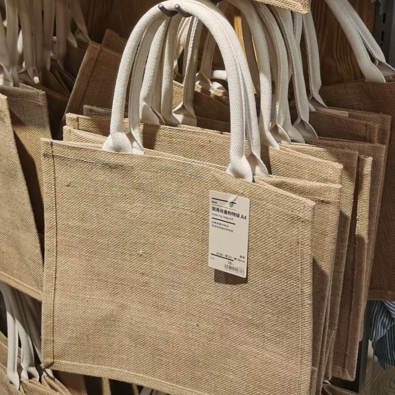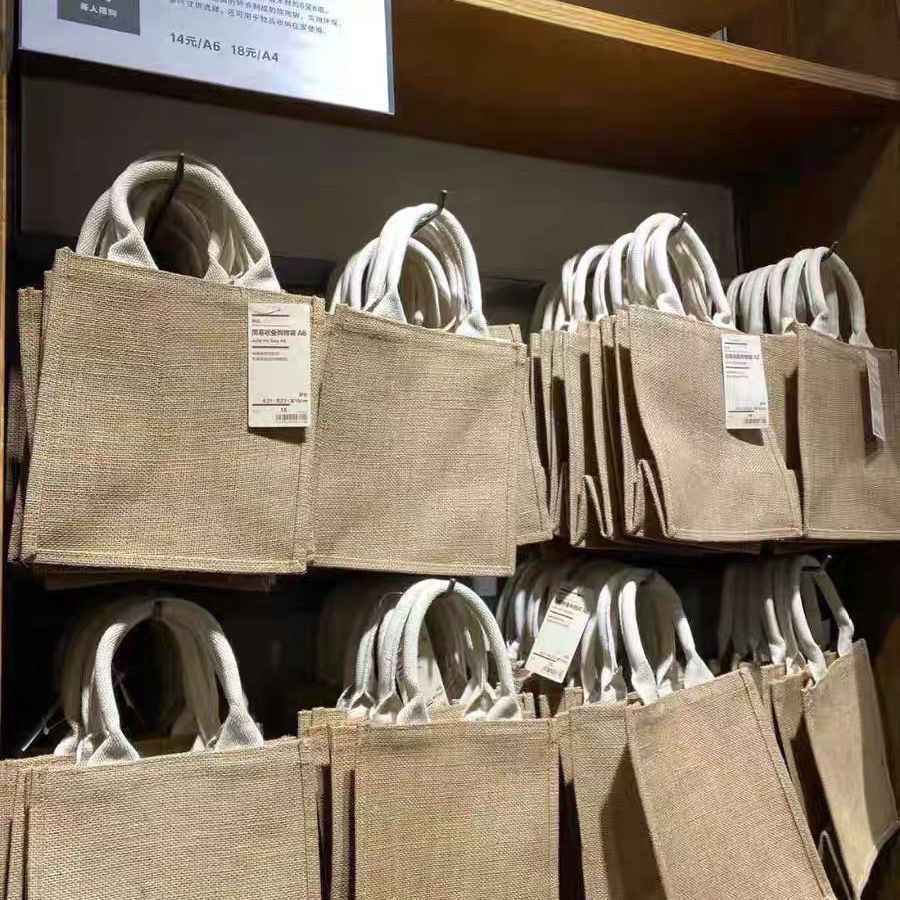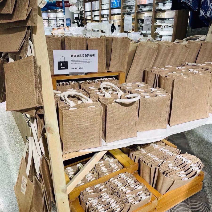 无印同款黄麻袋收纳袋亚麻男女孩购物手提袋MJ商场款学生宝妈通用