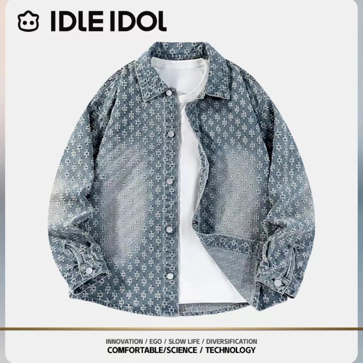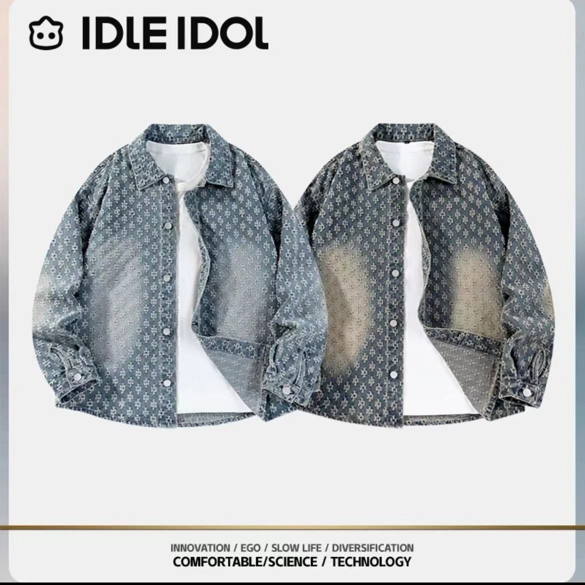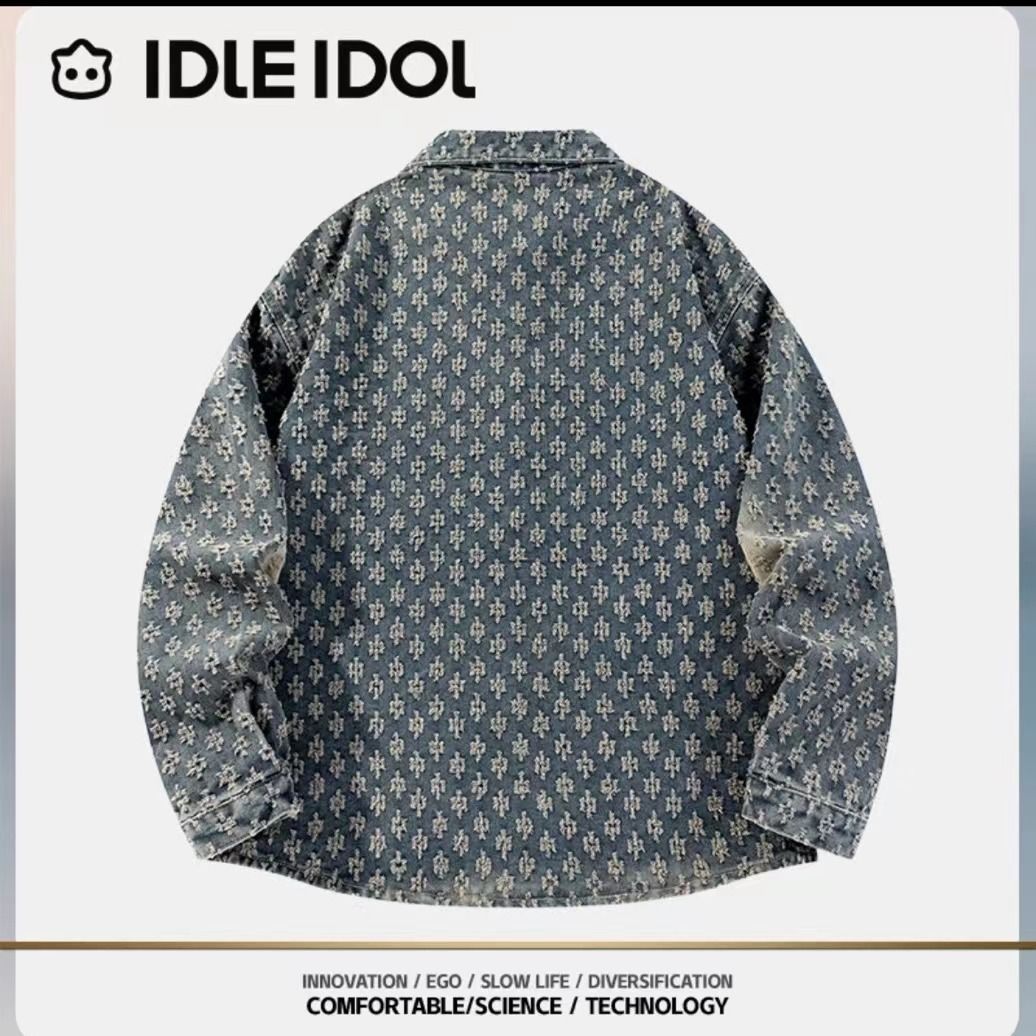 复古提花美式牛仔外套春秋季水洗情侣旧风高级感痞帅宽松休闲夹克