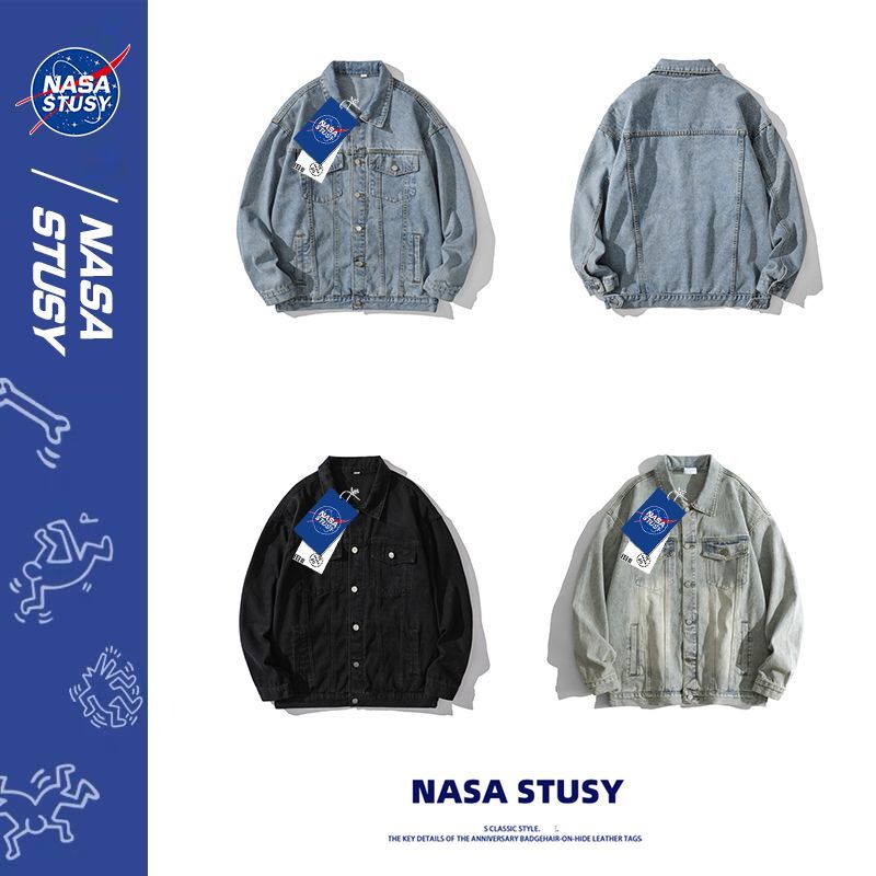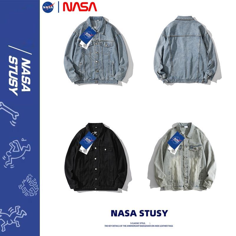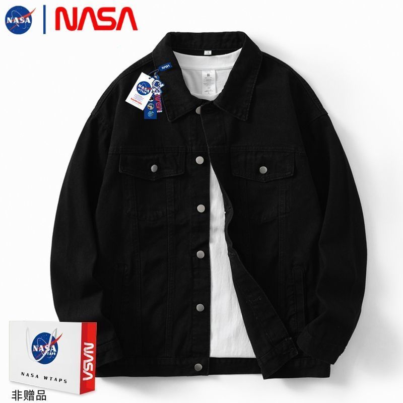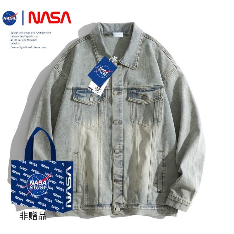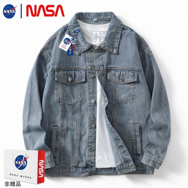 nasa美式牛仔外套男春秋季爆款复古ins百搭工装休闲翻领情侣夹克