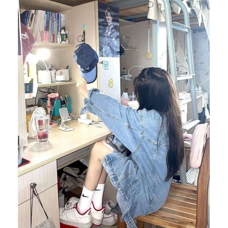 国潮牌美式复古夹克水洗牛仔外套女潮ins秋季新款宽松小个子上衣