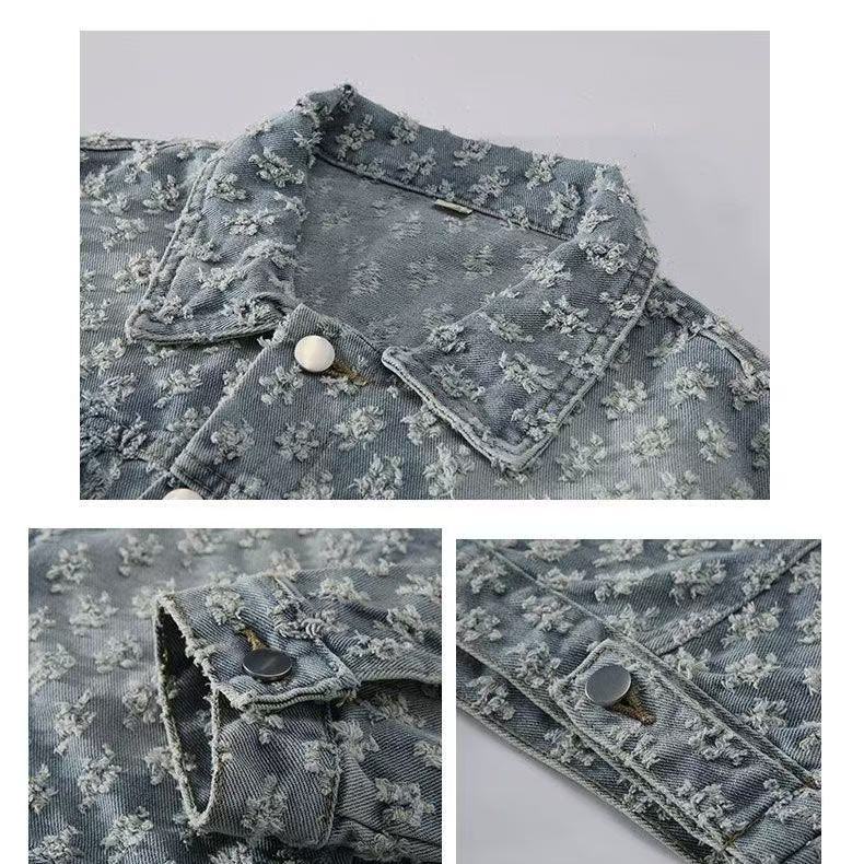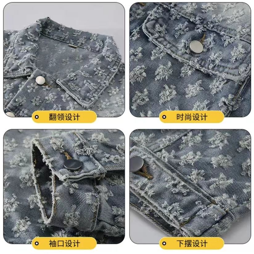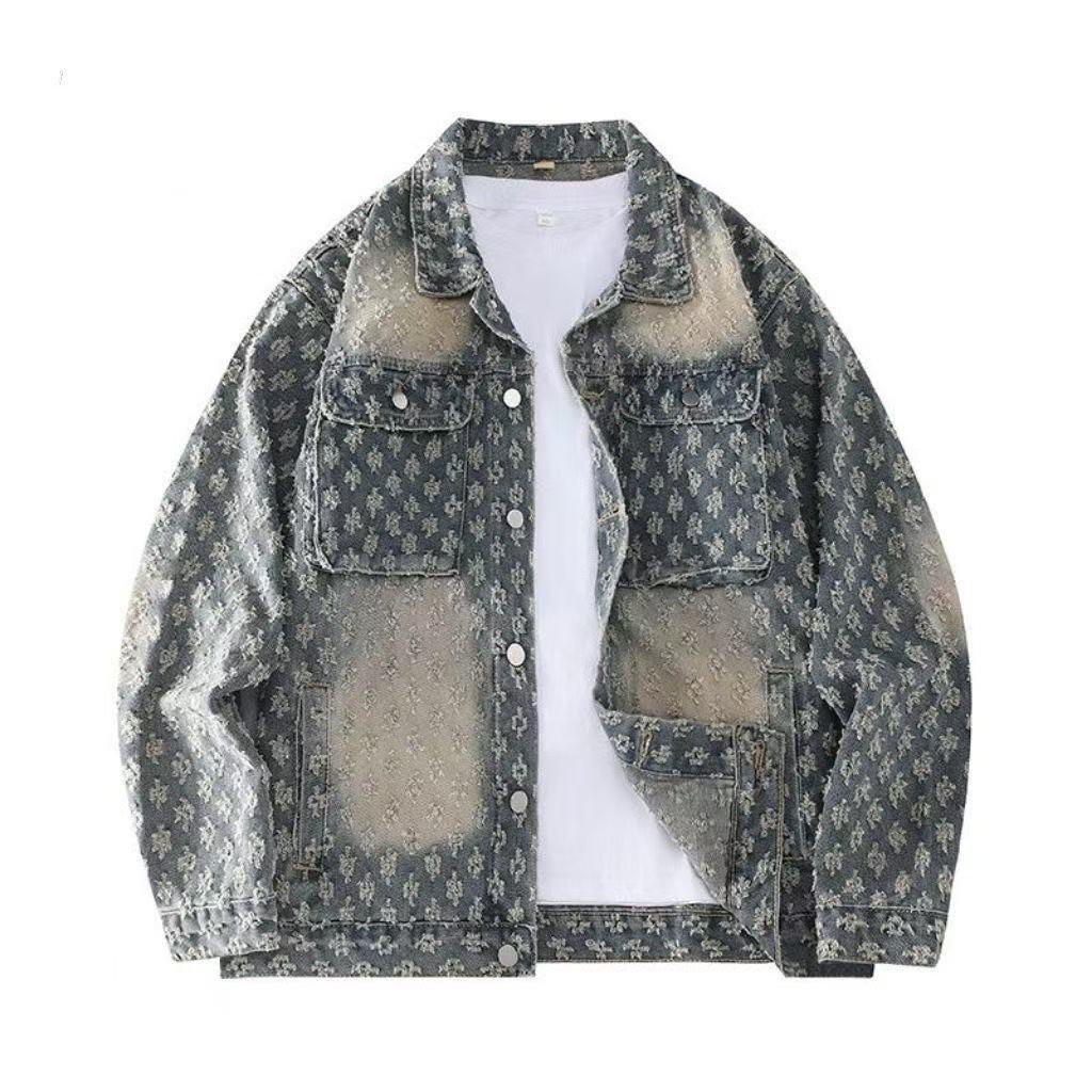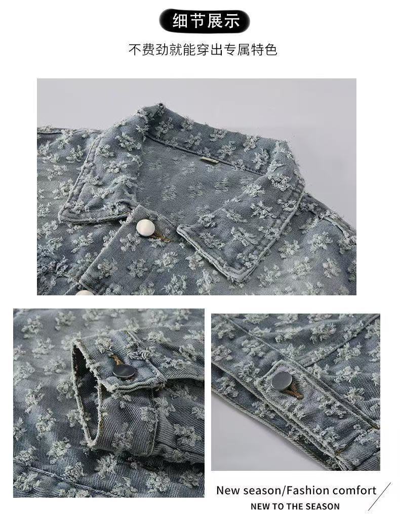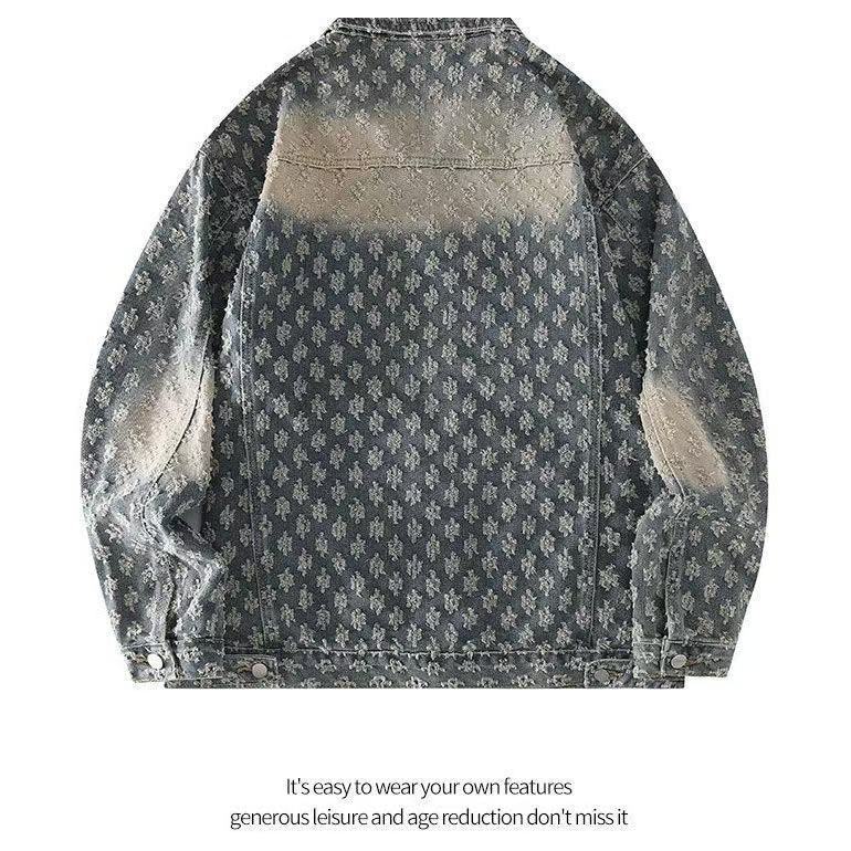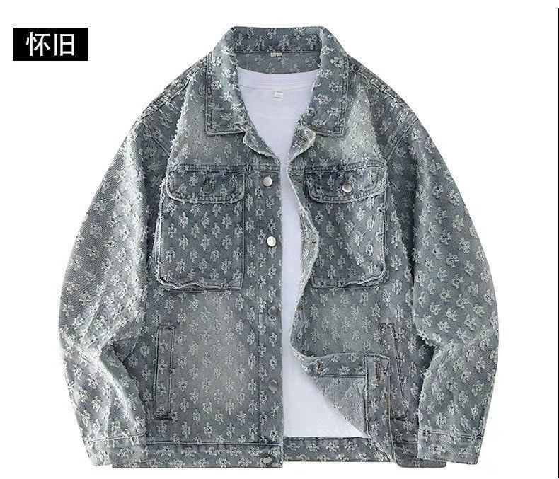 复古提花美式牛仔外套春秋季水洗情侣旧风高级感痞帅宽松休闲夹克