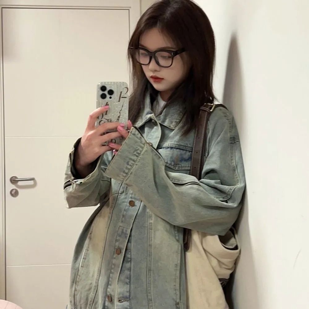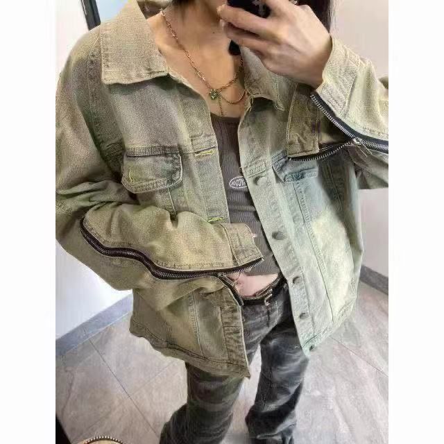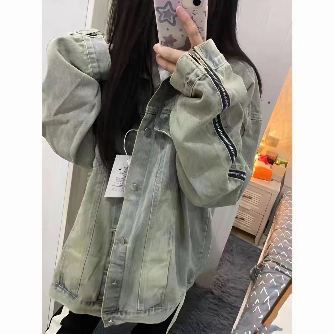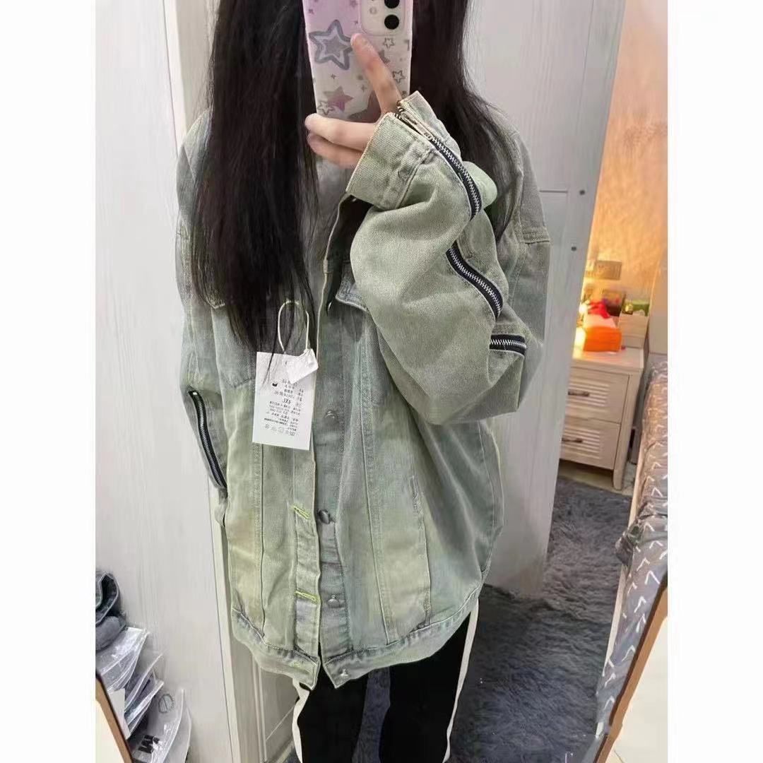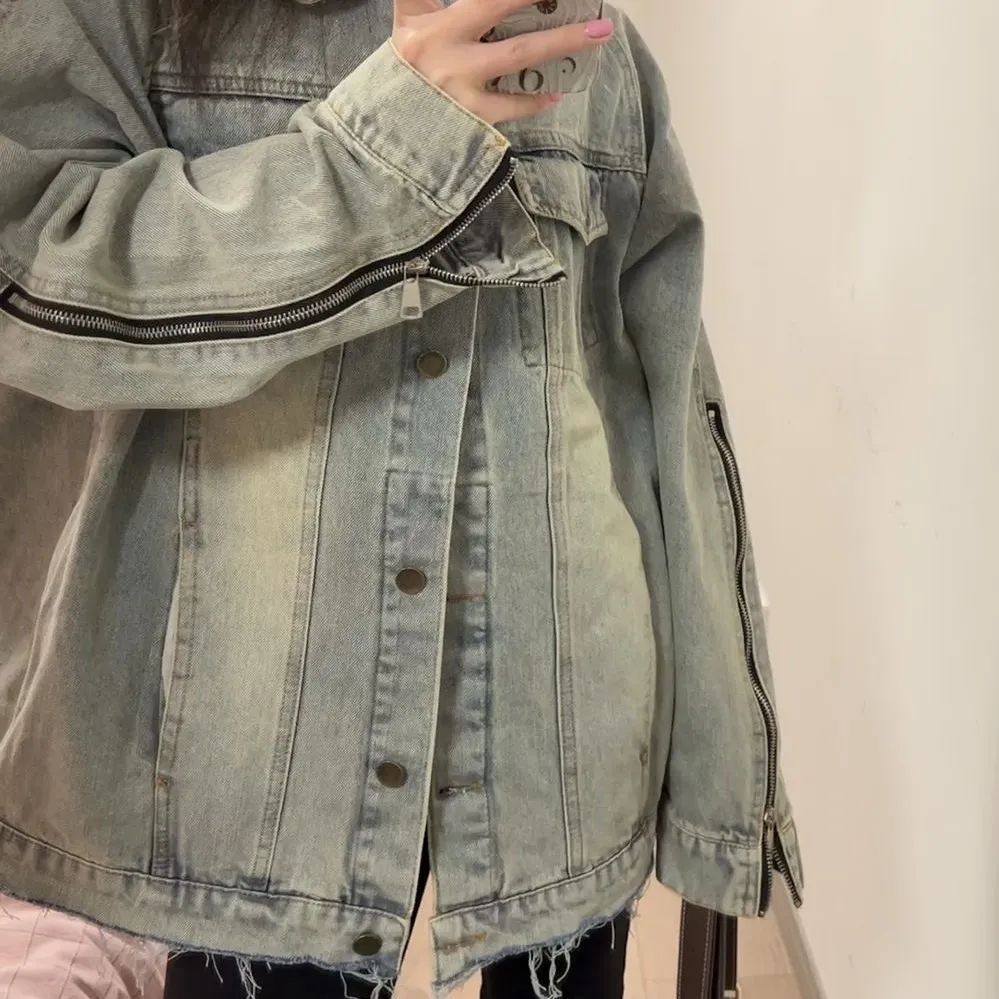 2024新款美式高街vibe牛仔外套春秋季复古宽松欧美设计夹克上衣女