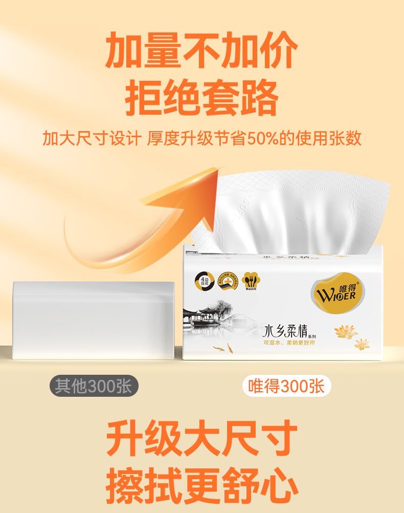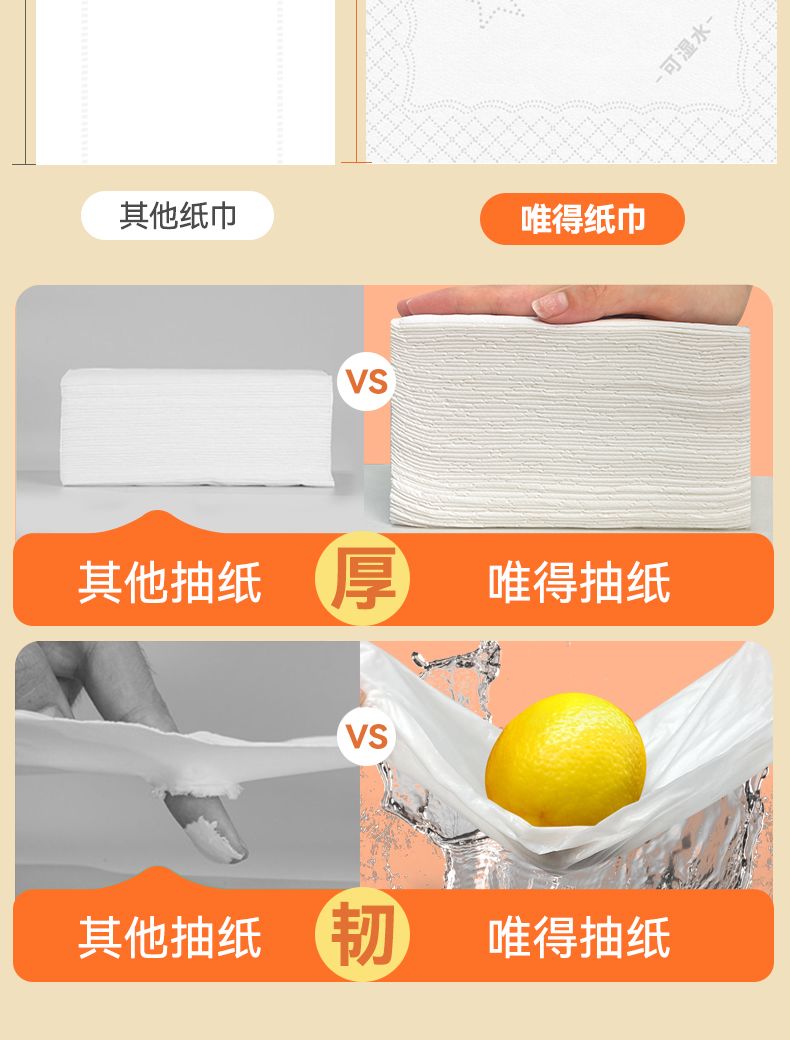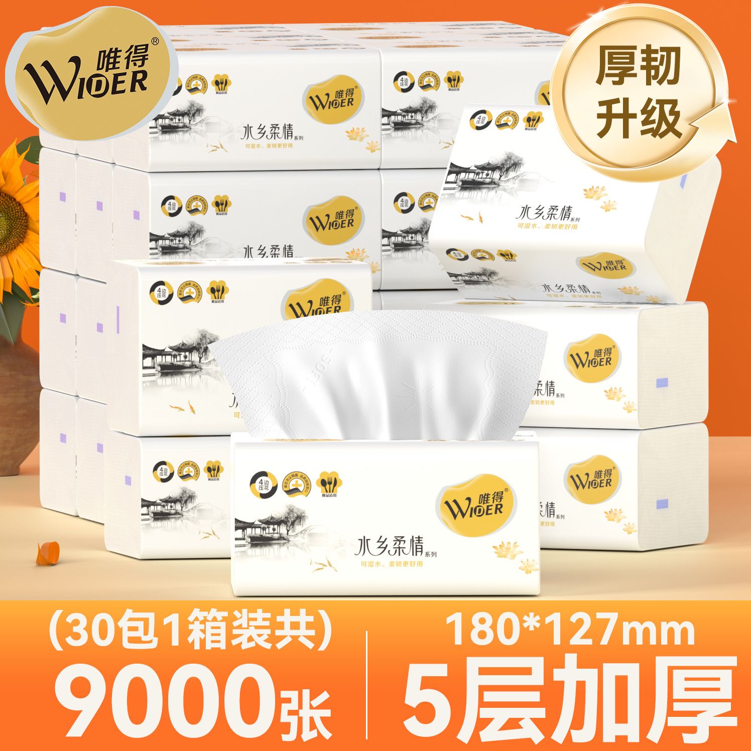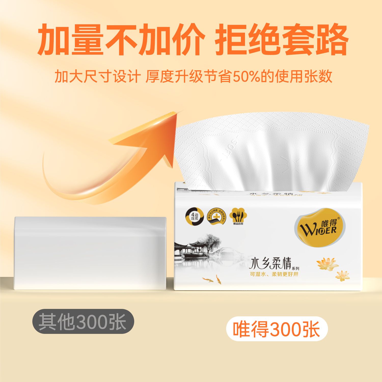 【加厚5层300张抽纸】唯得小抽纸整箱餐巾纸擦手纸卫生纸学生宿舍