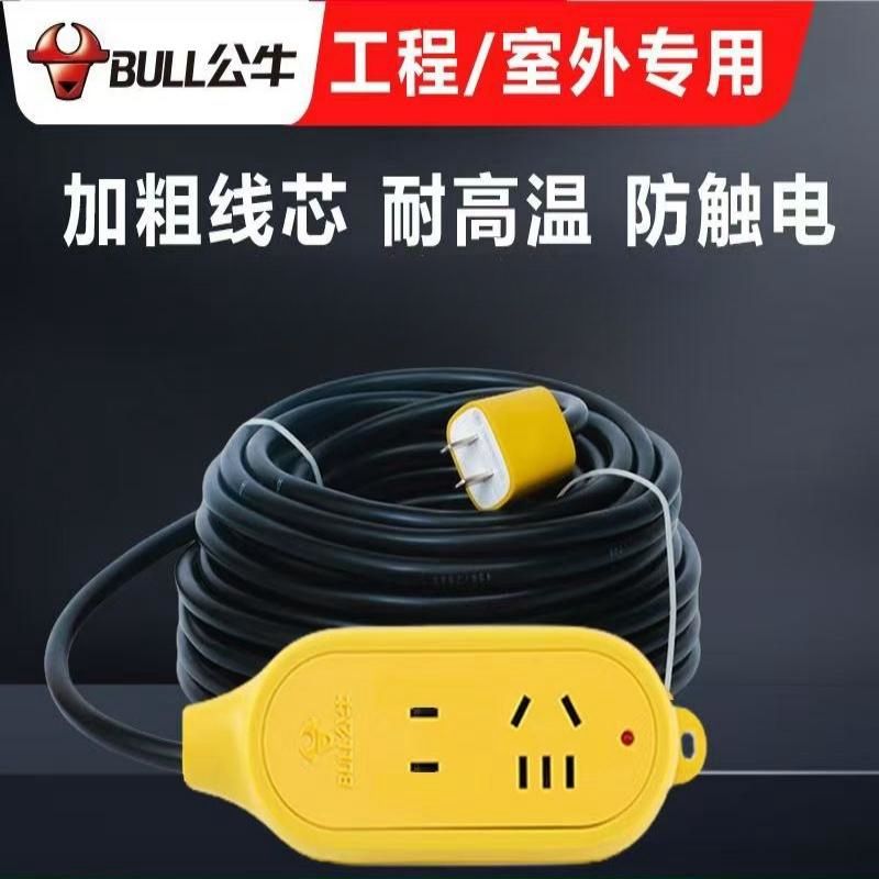 公牛国标电线电缆家用两芯软电源线户外插座带线电动车充电延长线
