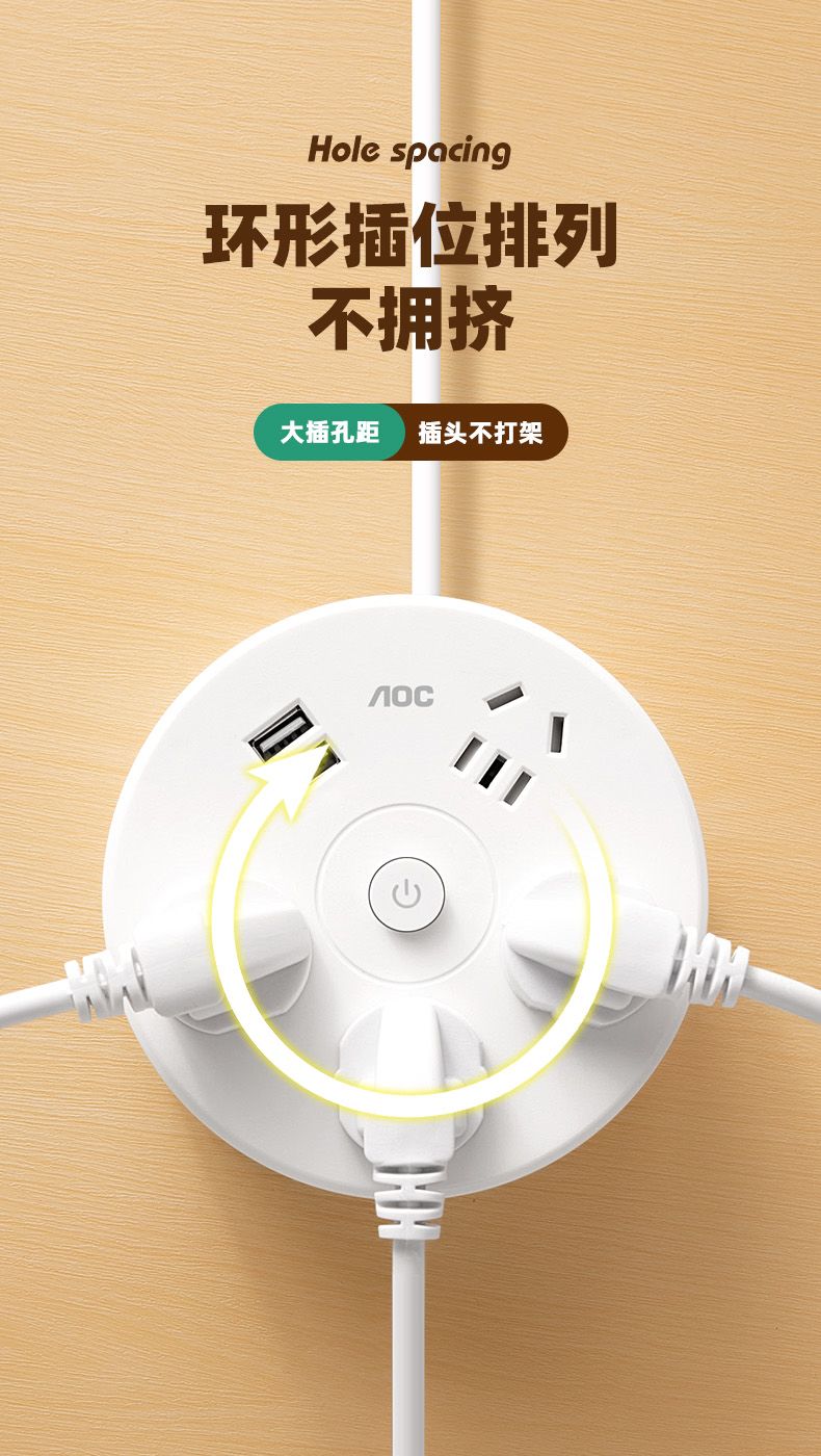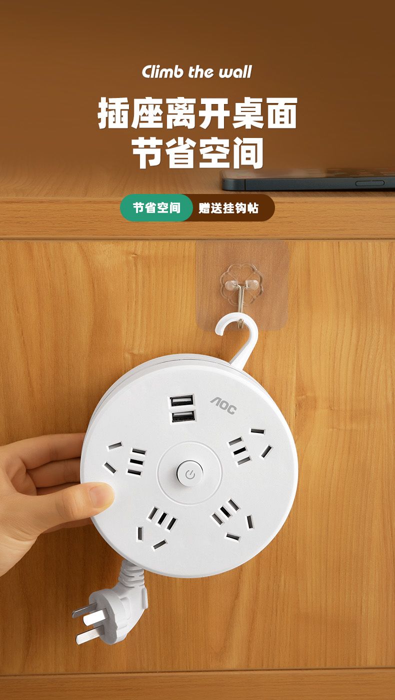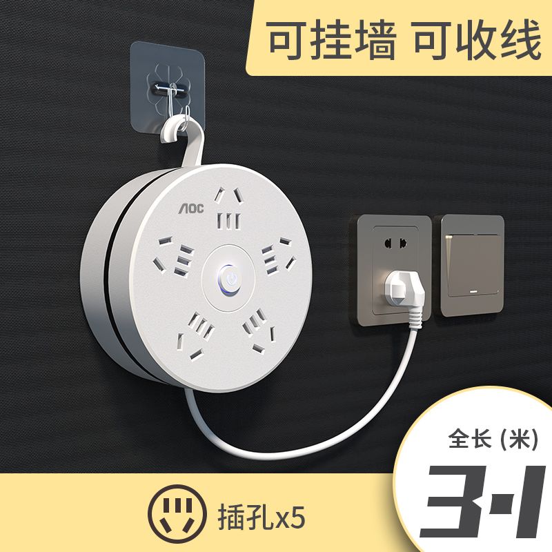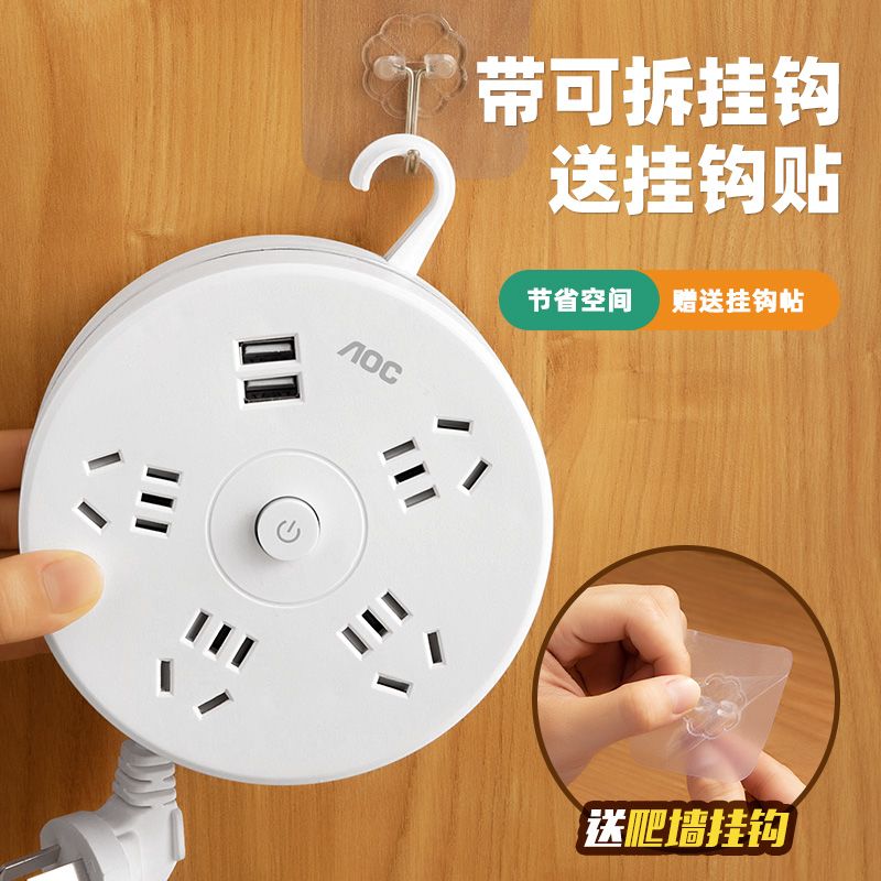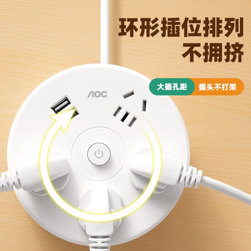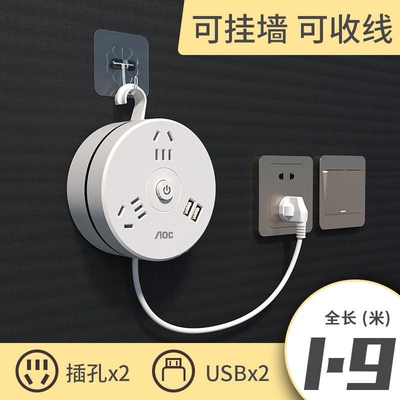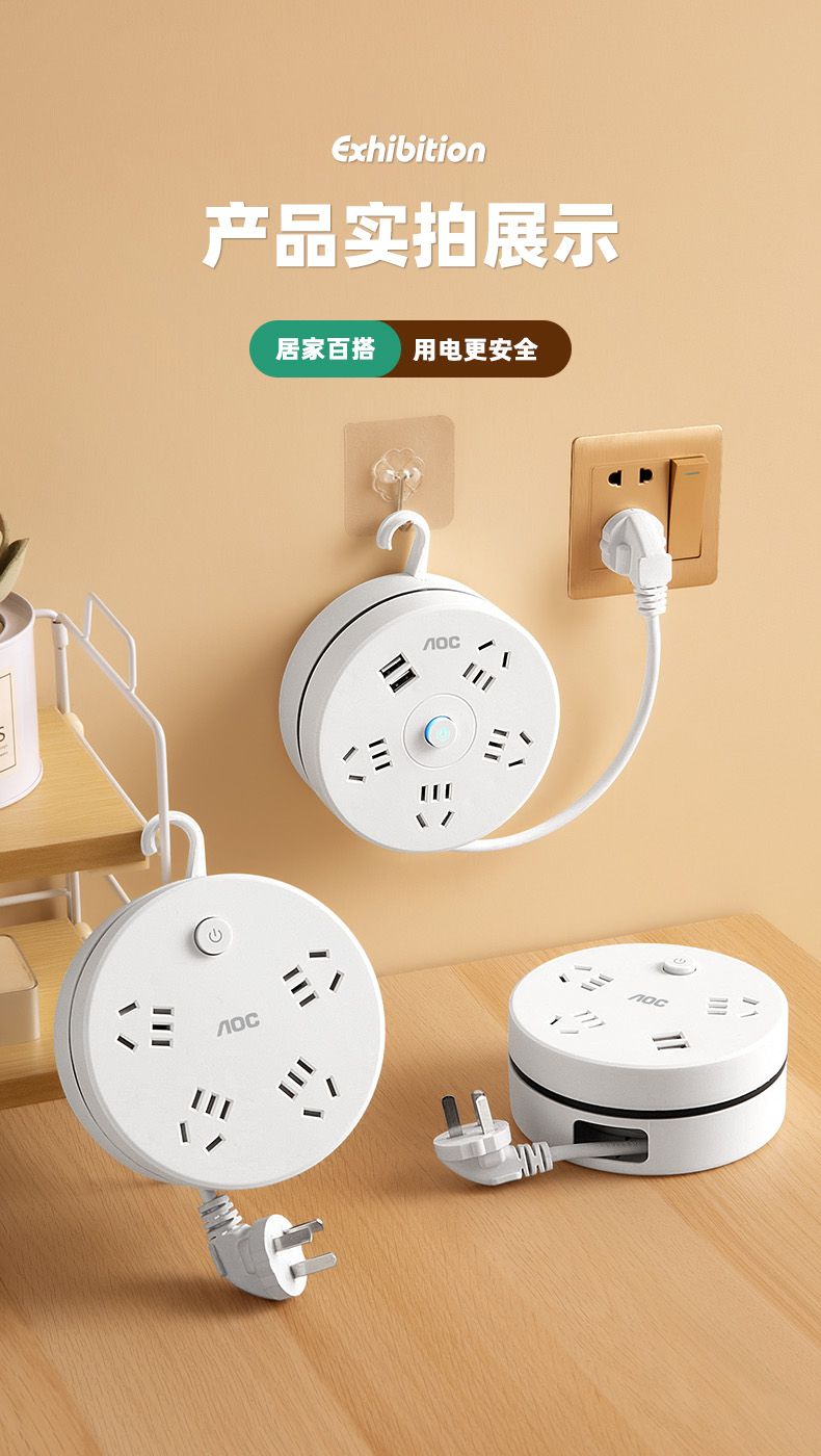 AOC插座可收纳多功能多孔带线插排USB插线板插板学生宿舍拖接线板