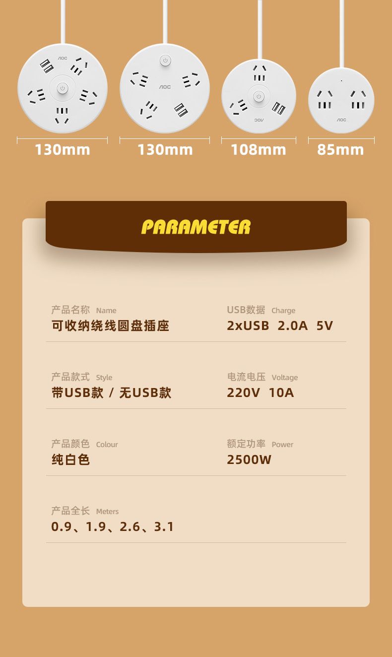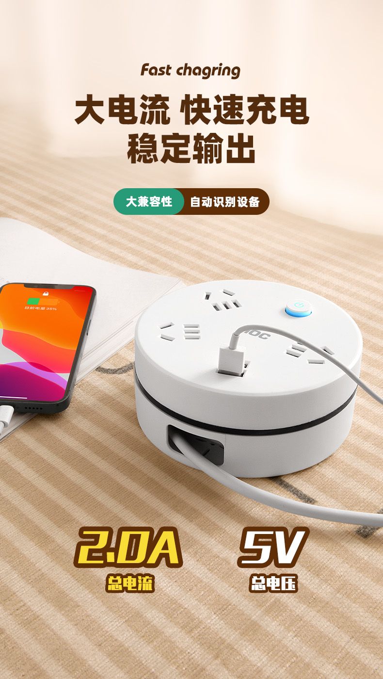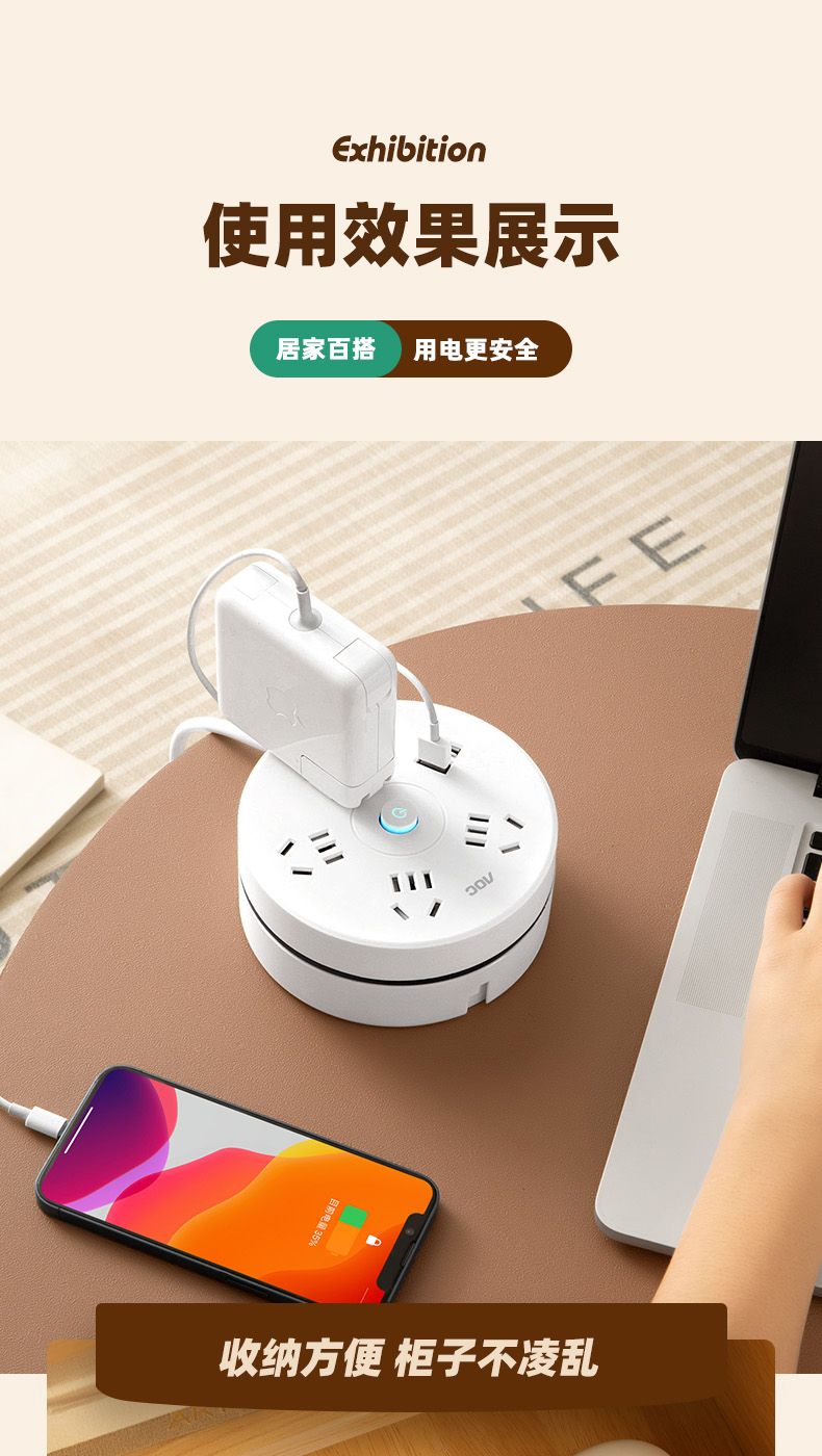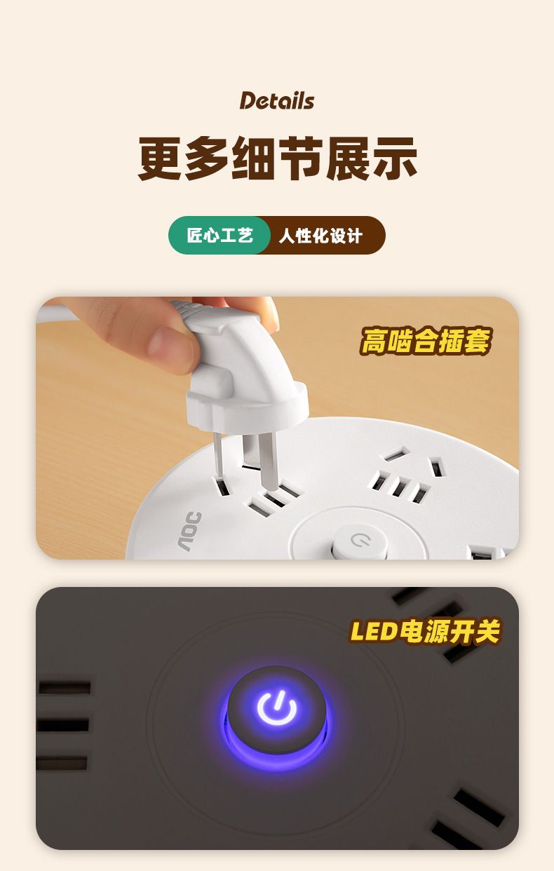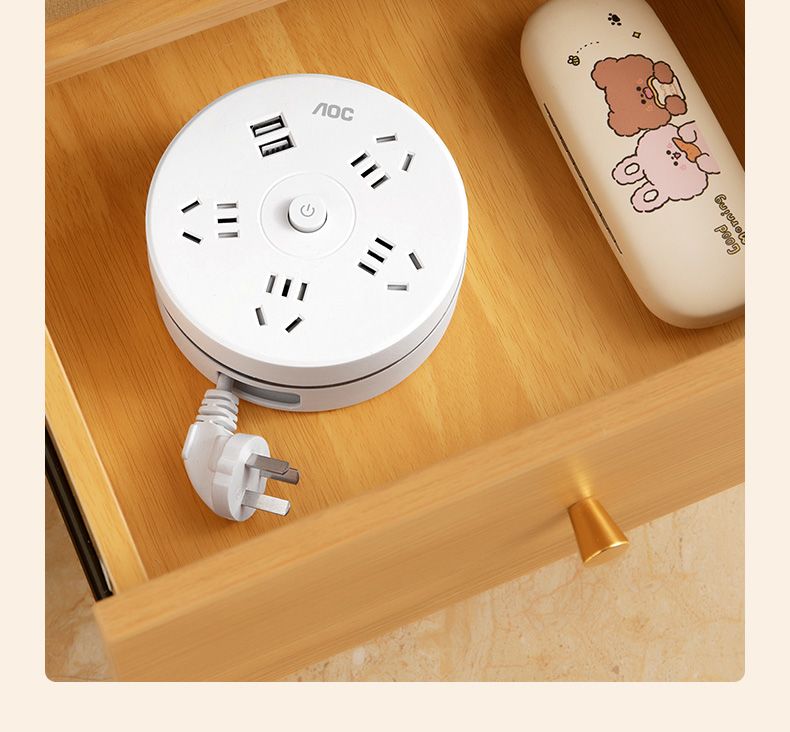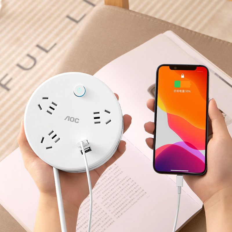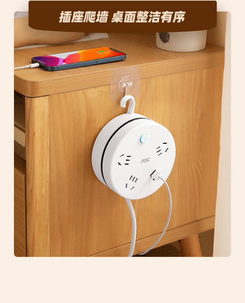 AOC插座可收纳多功能多孔带线插排USB插线板插板学生宿舍拖接线板