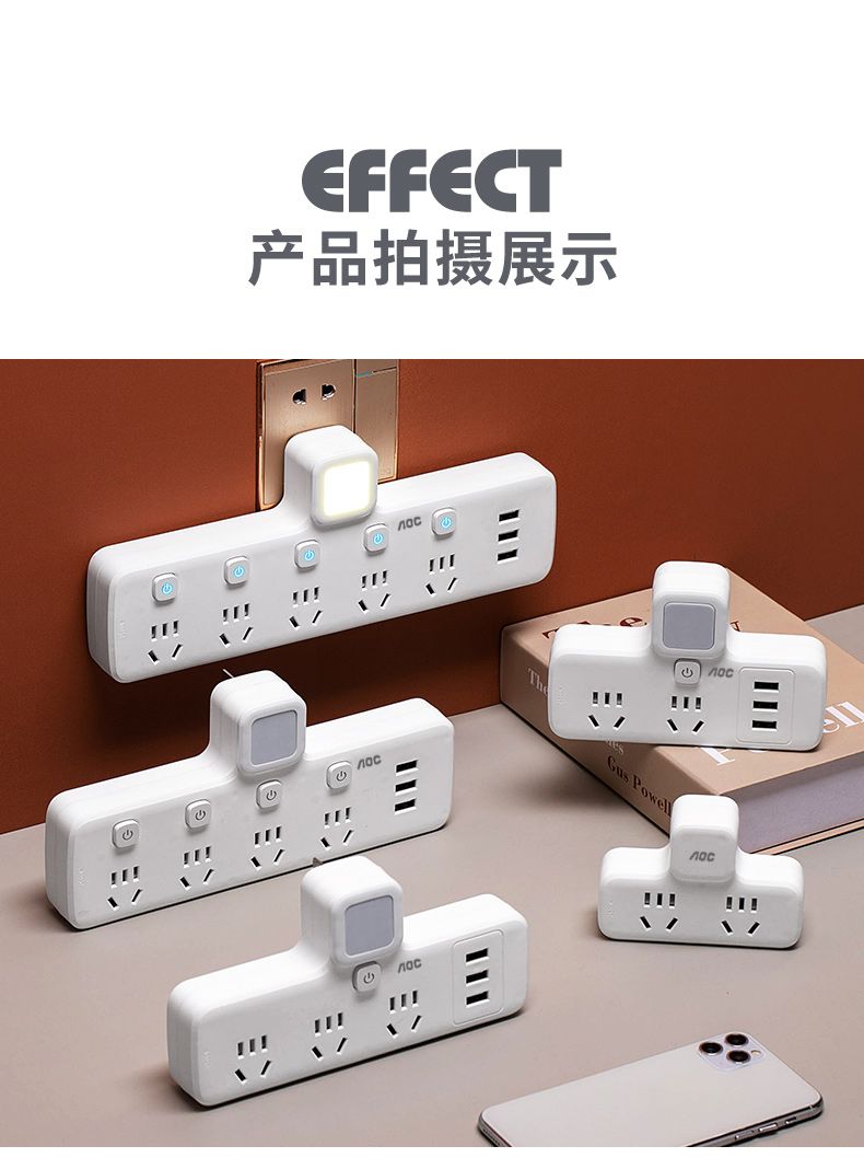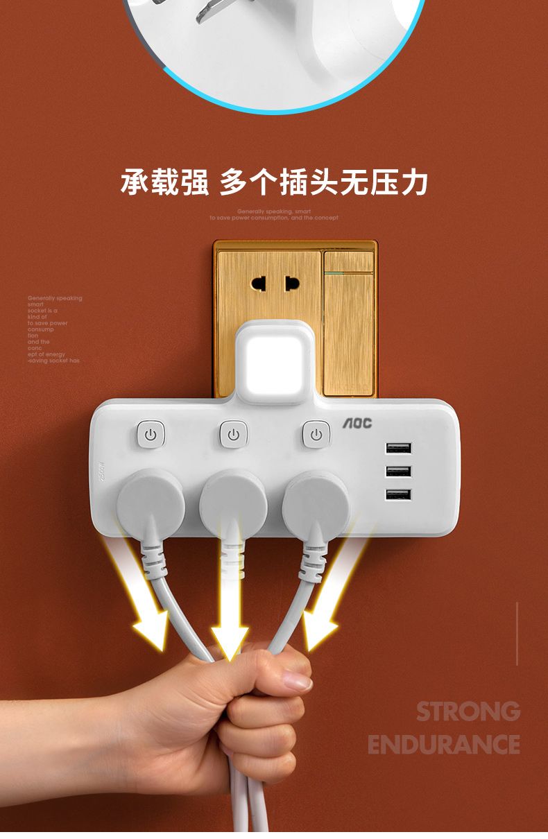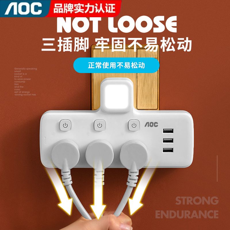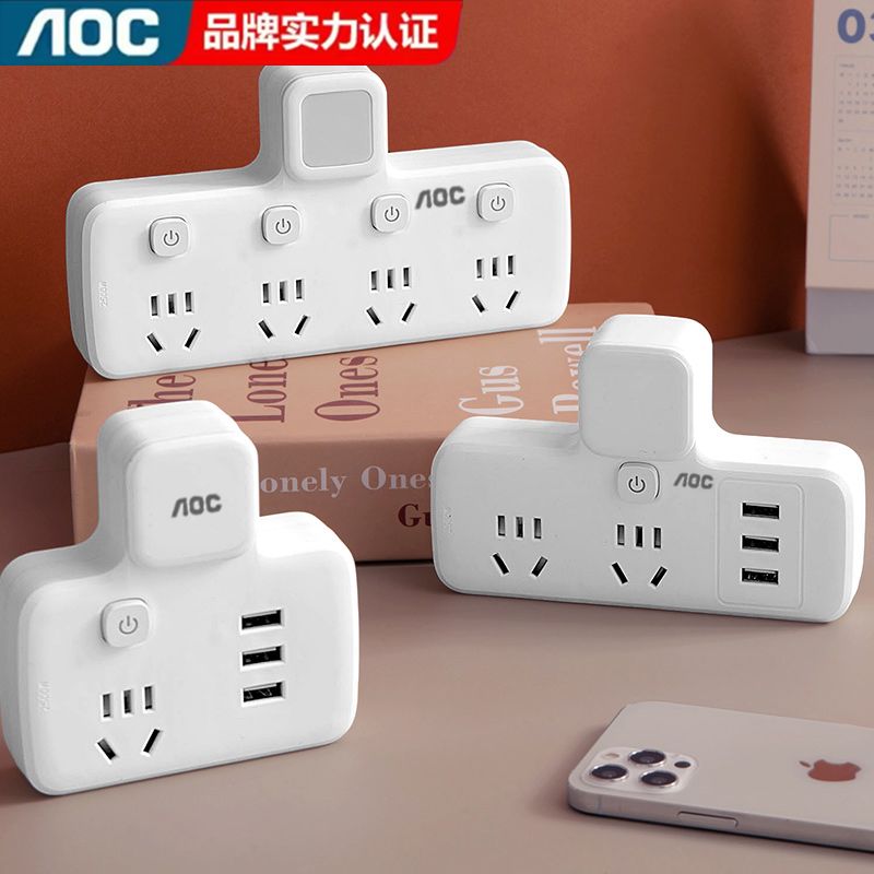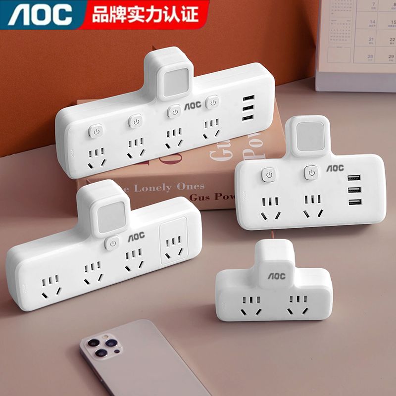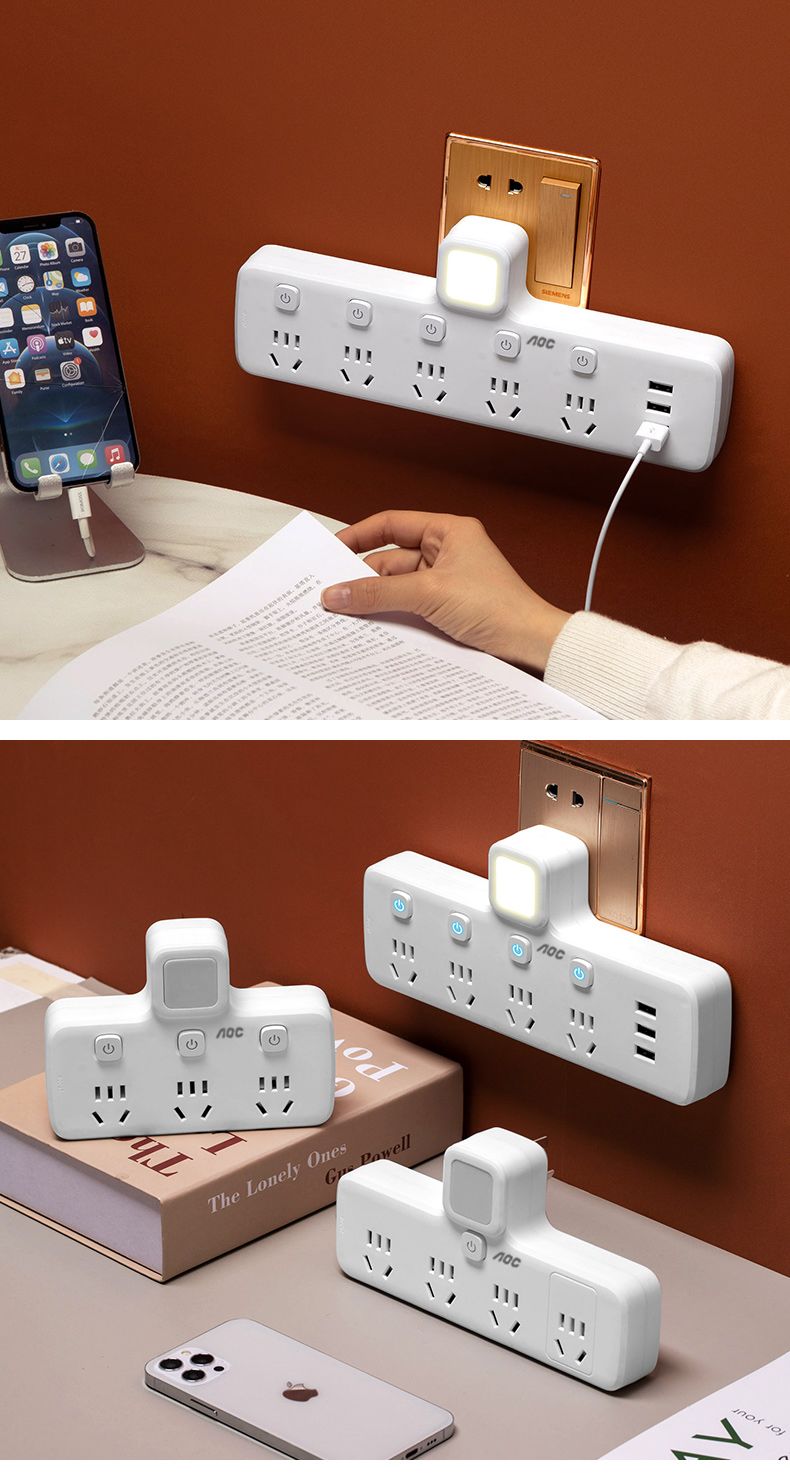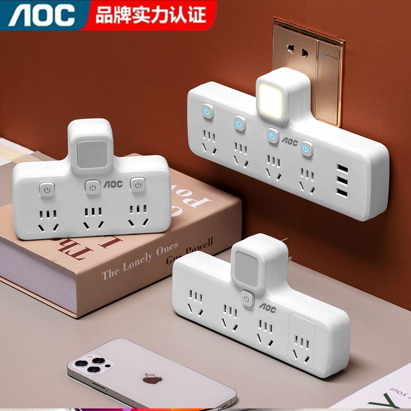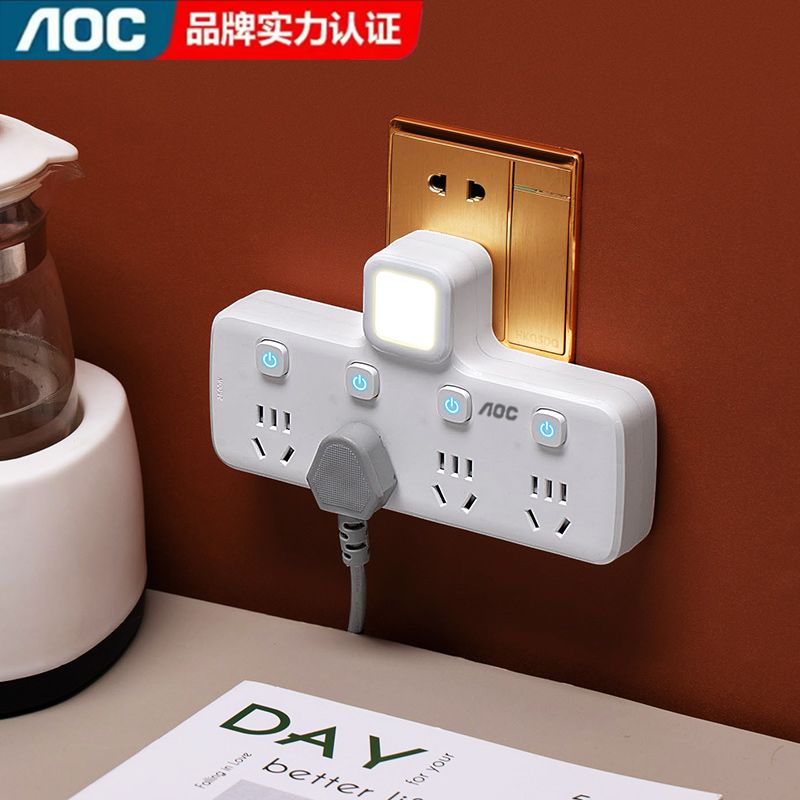 AOC插座宿舍学生转换器不带线扩展一转三四多功能插排夜灯夜灯