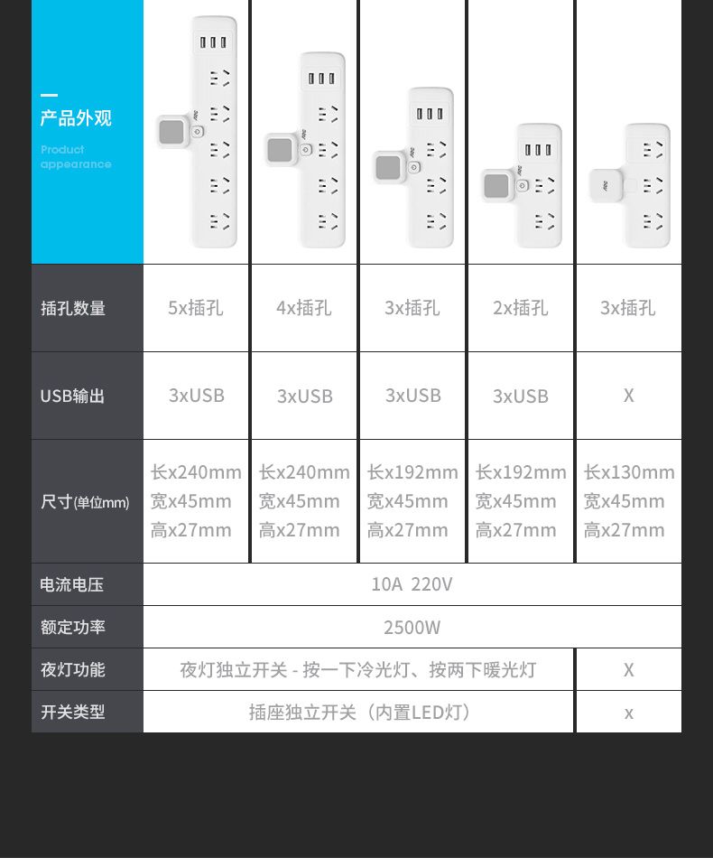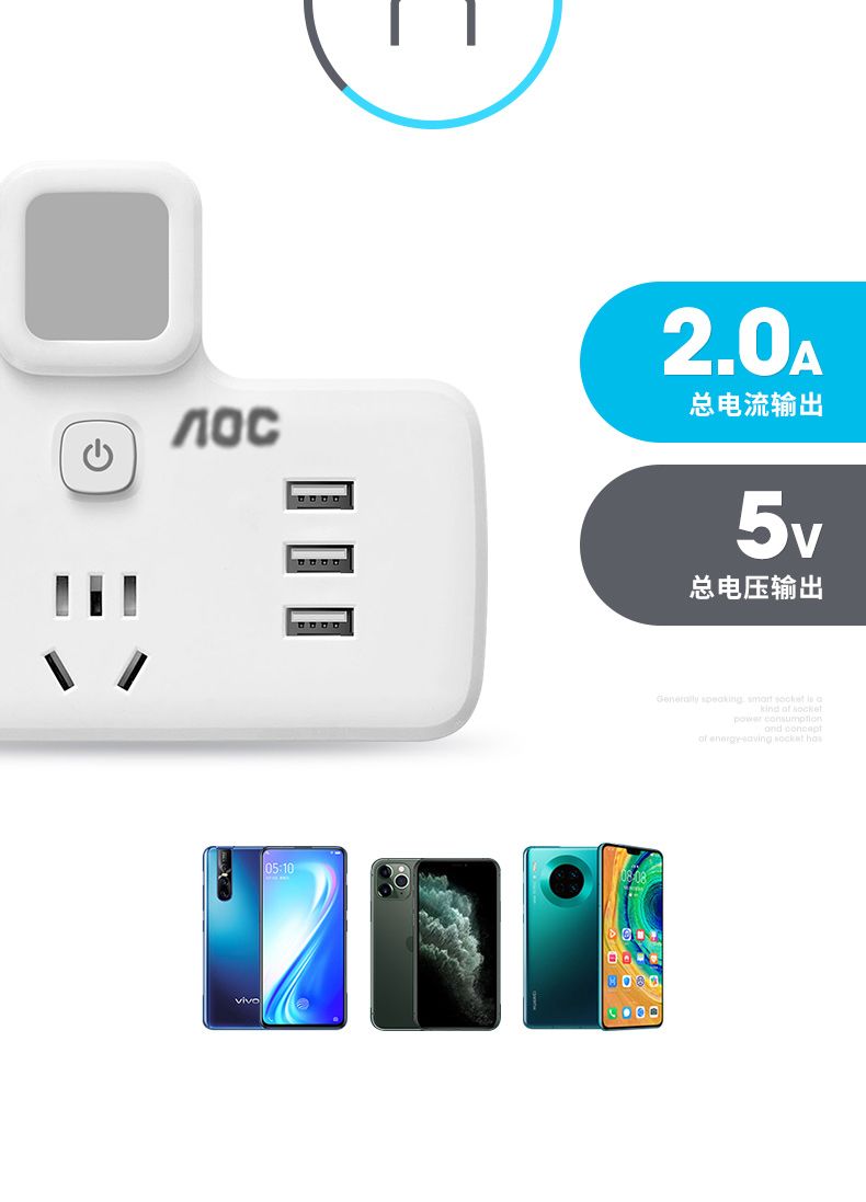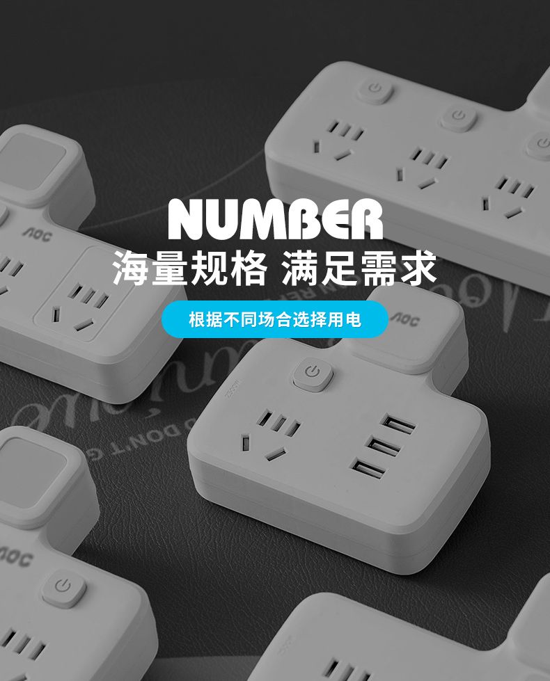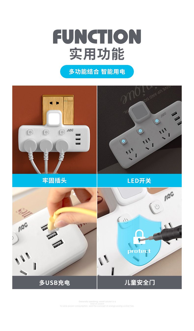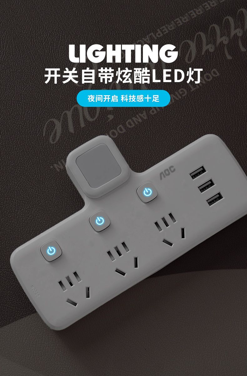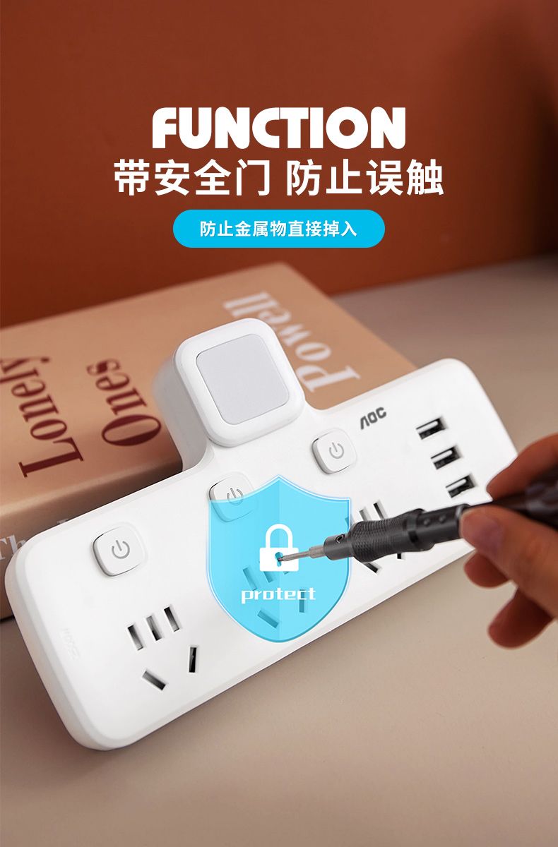 AOC插座宿舍学生转换器不带线扩展一转三四多功能插排夜灯夜灯