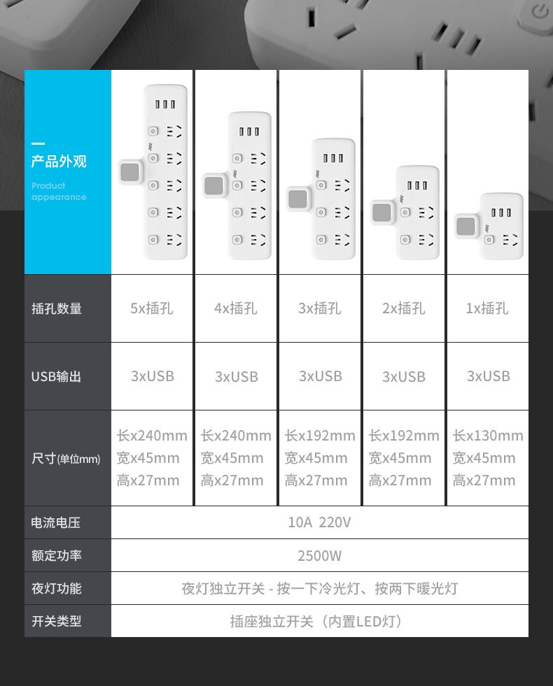 | 五插位+usb(独立开关) | USD $6.82 | 99999 piece available |