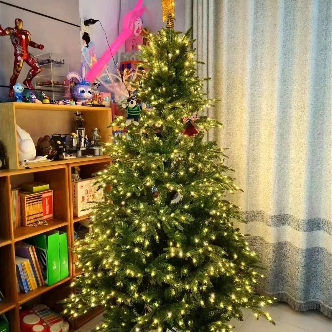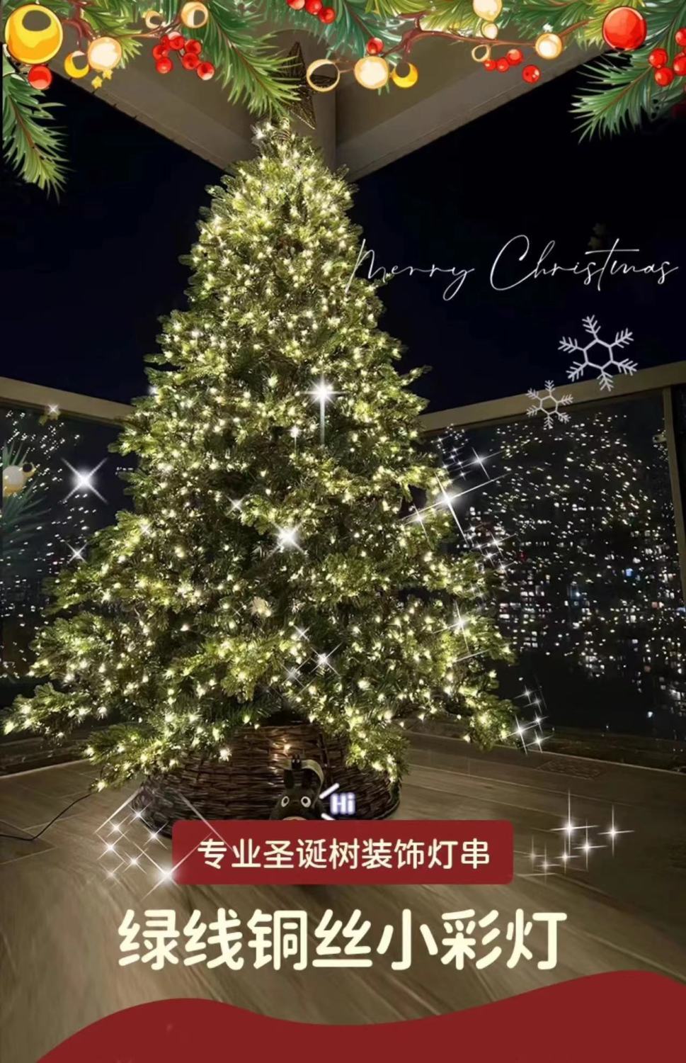 圣诞遥控led小灯串绿线铜丝星星串灯满天星绿植圣诞藤条花环装饰