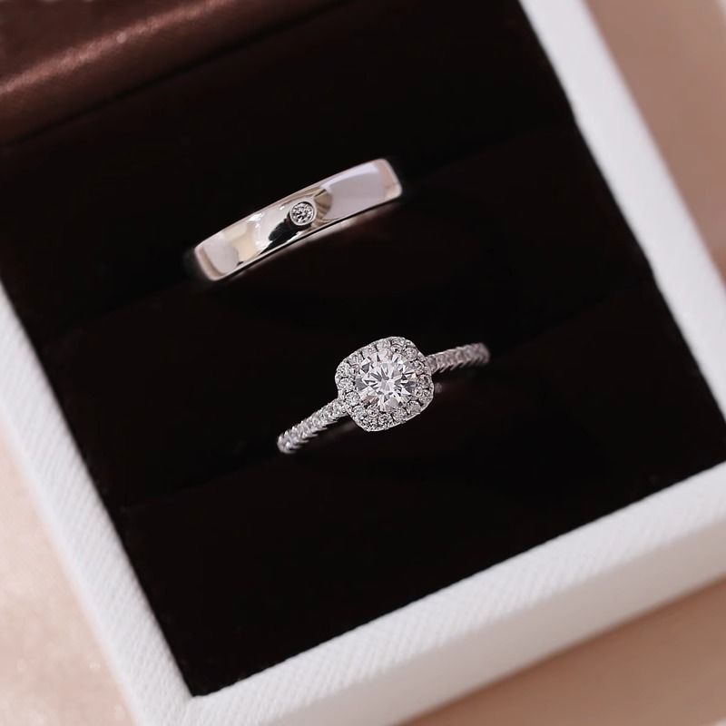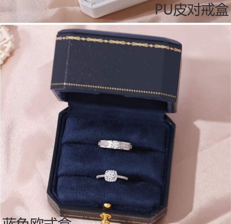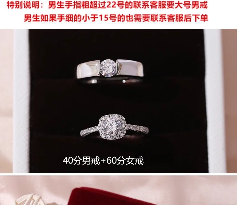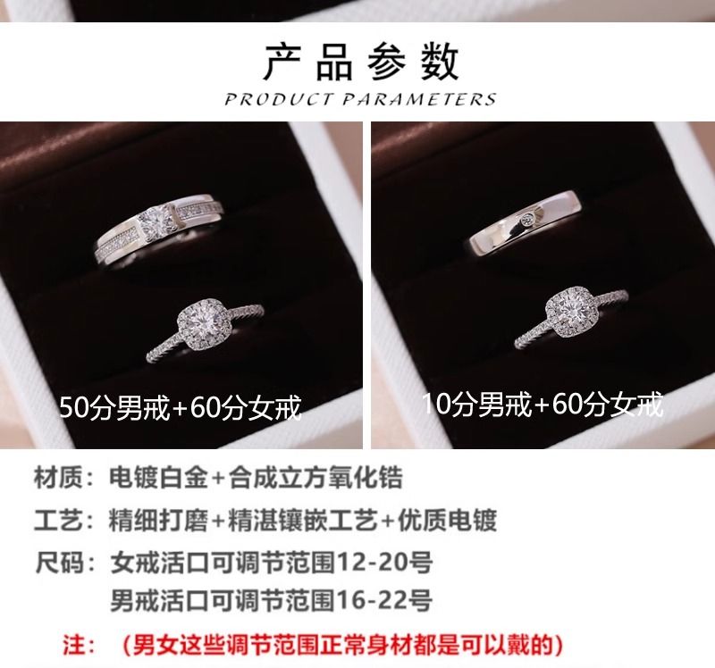 新款仿真结婚婚戒对戒60分微镶方形钻戒开口可调节求婚戒指道具