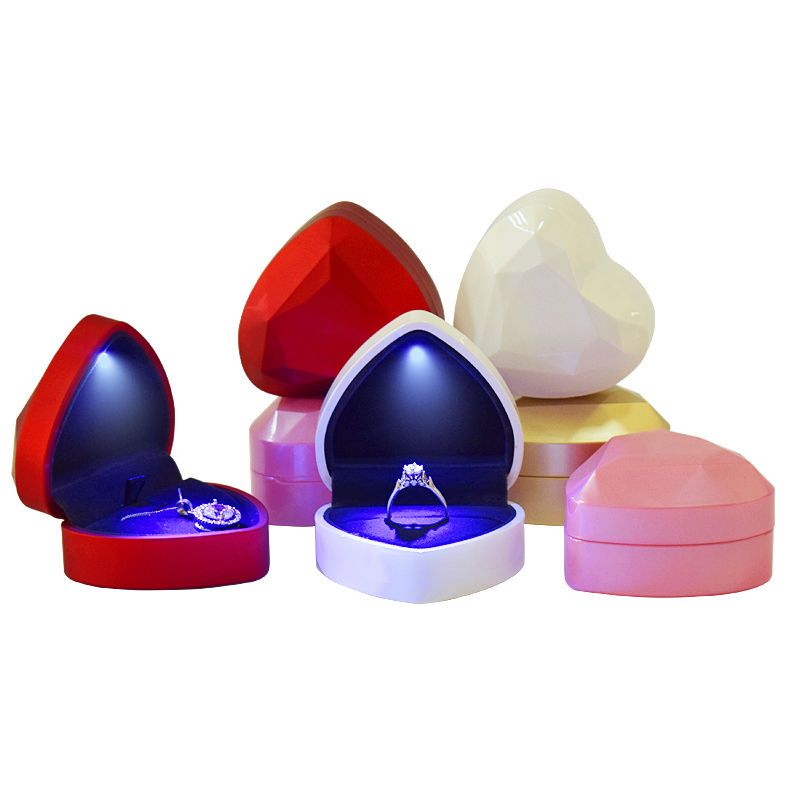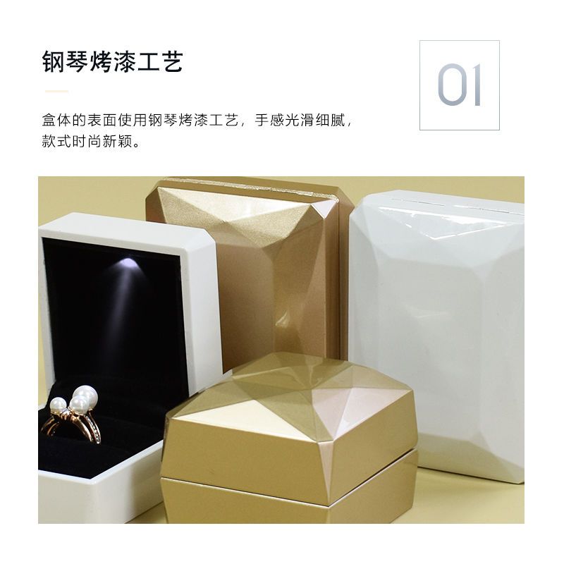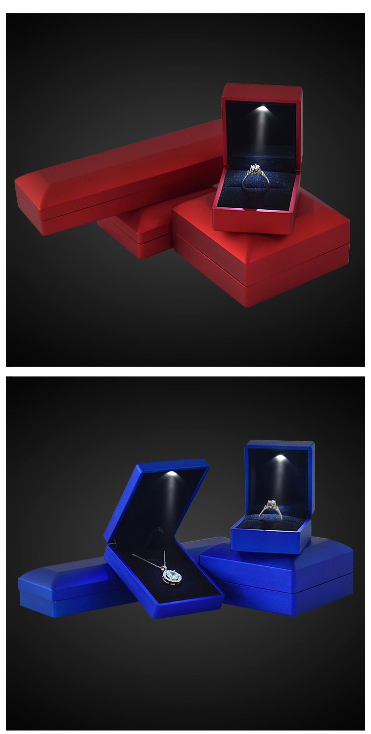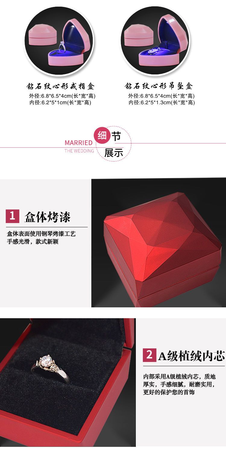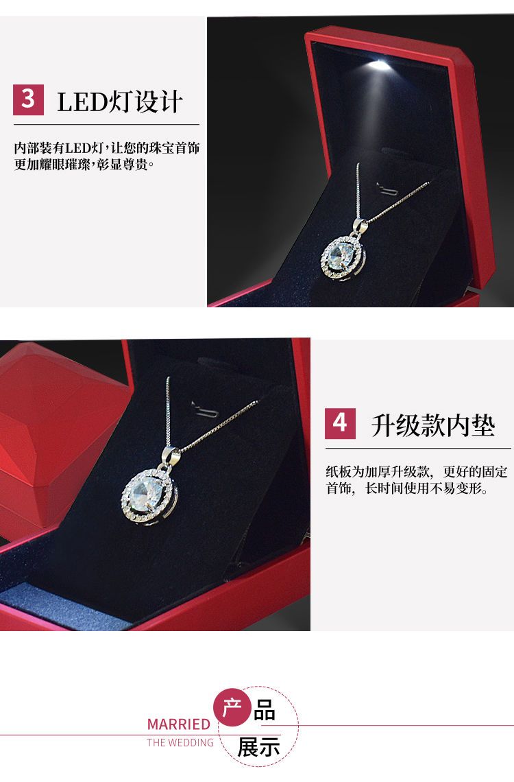 高档带灯LED首饰盒吊坠手镯盒求婚戒指盒项链礼物包装珠宝盒子