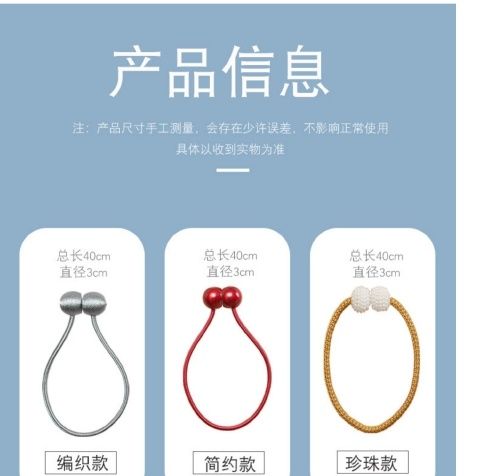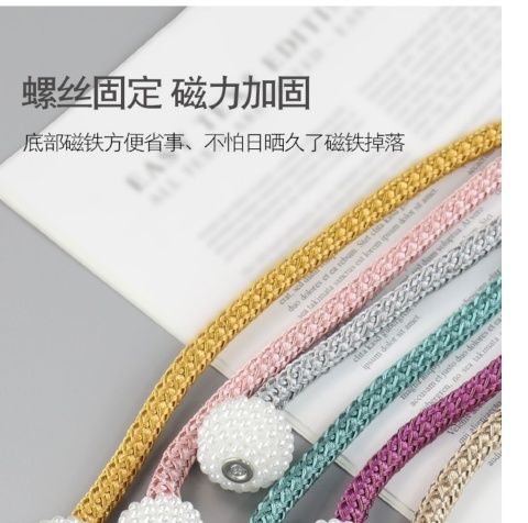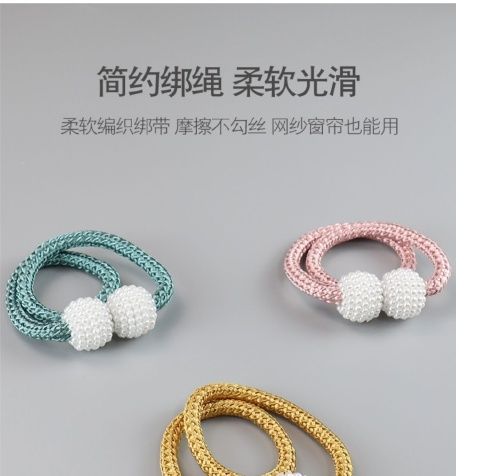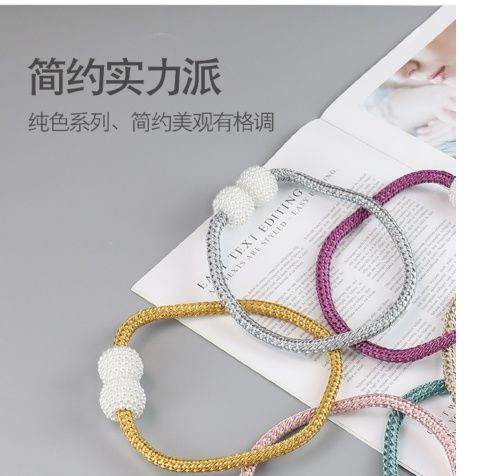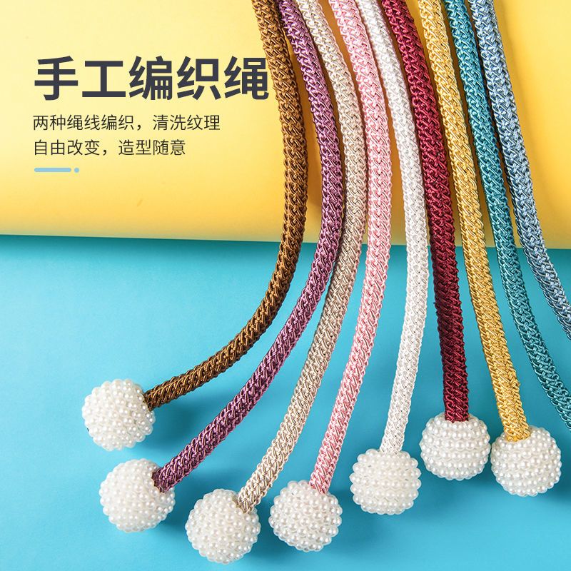 窗帘捆绑带一对装创意磁吸窗帘绑带珍珠窗帘扣环窗帘配件绑绳批发