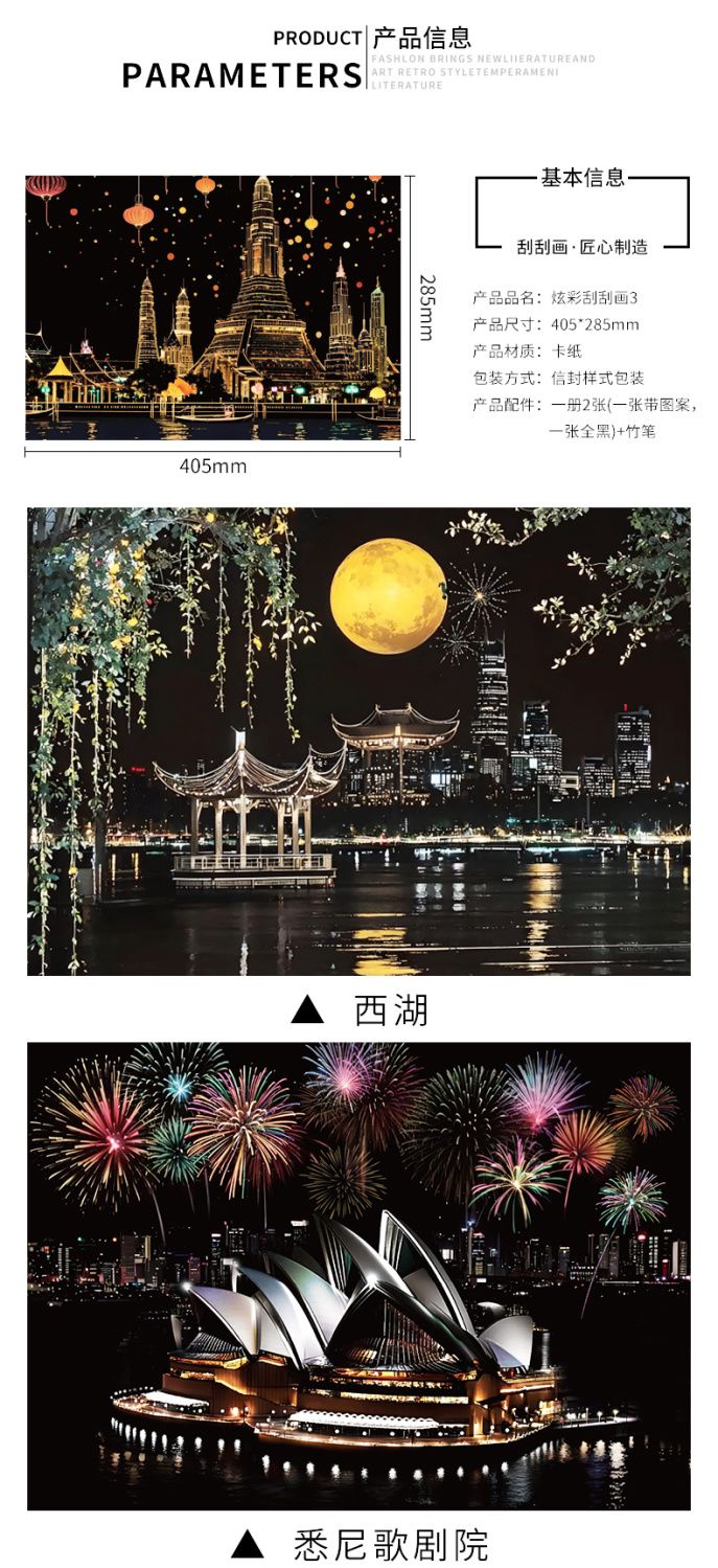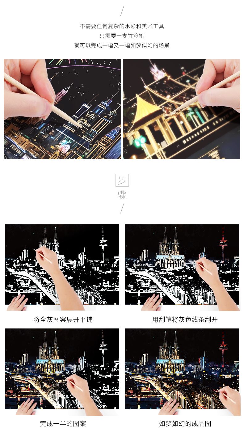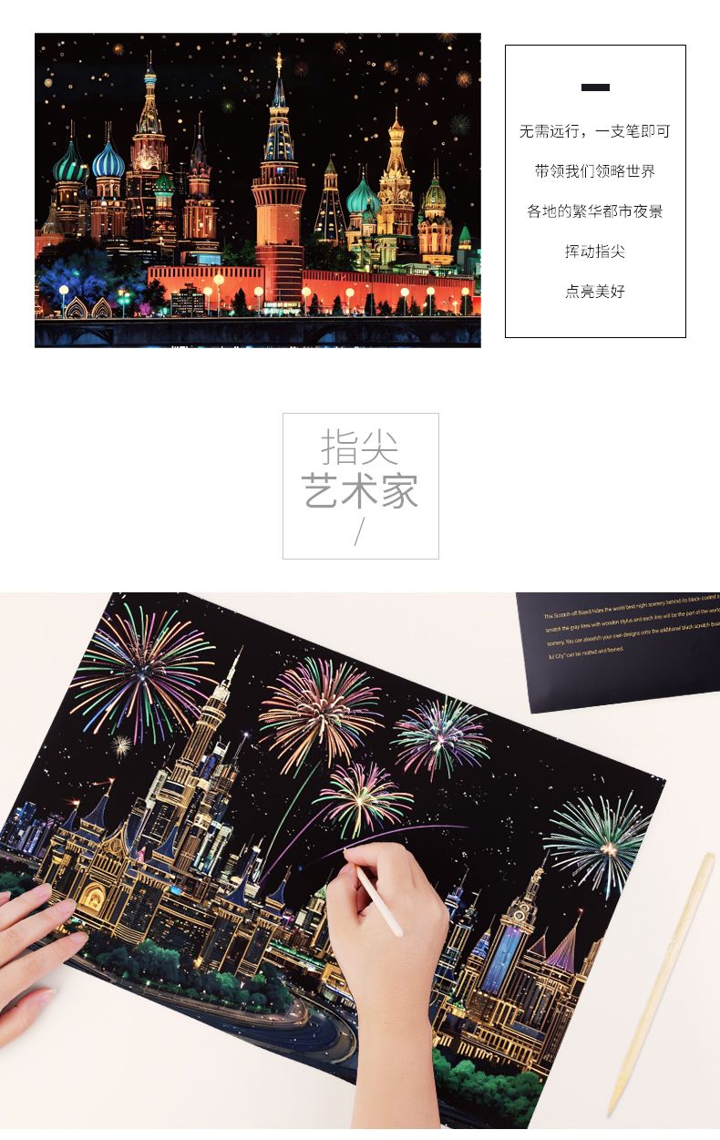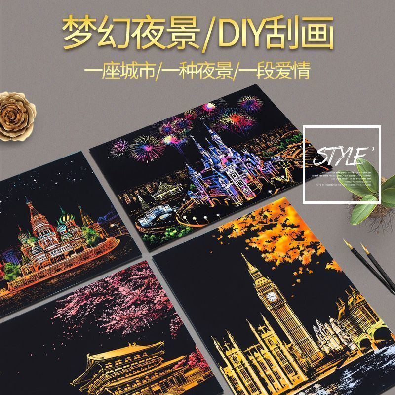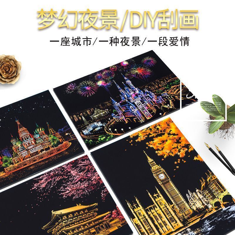 彩色城市夜景刮刮画A3炫彩刮画纸8开手刮画本有图案DIY送男女礼物