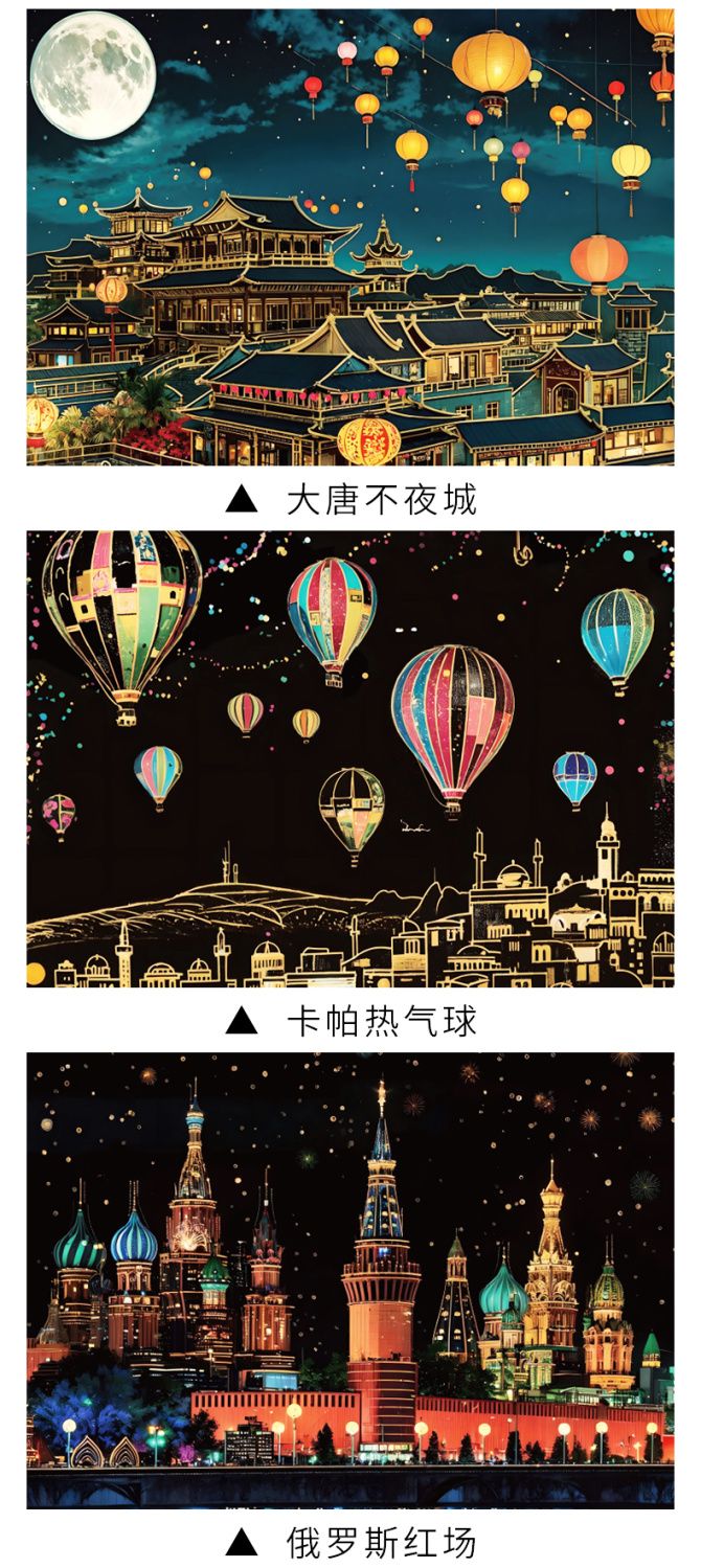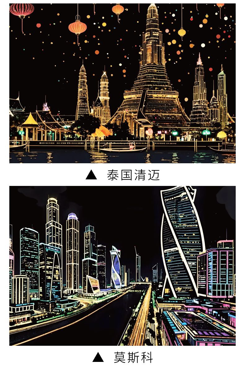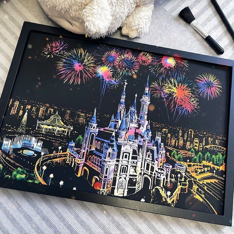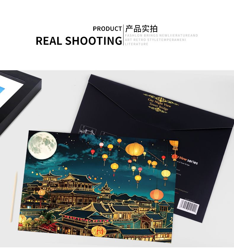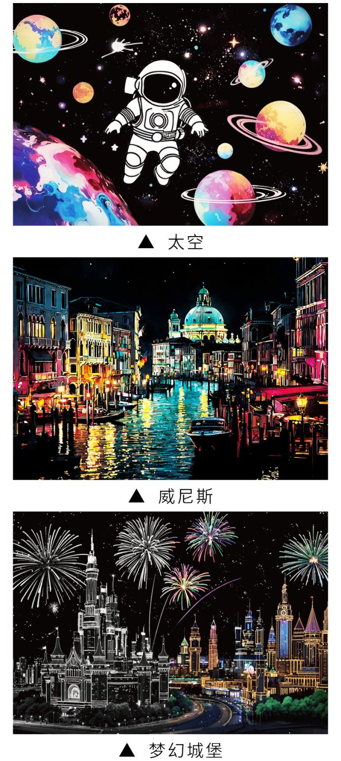 彩色城市夜景刮刮画A3炫彩刮画纸8开手刮画本有图案DIY送男女礼物