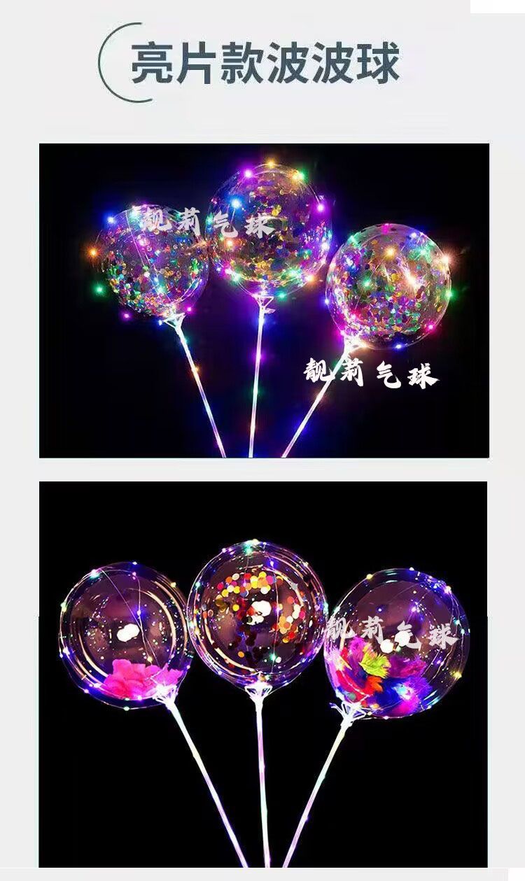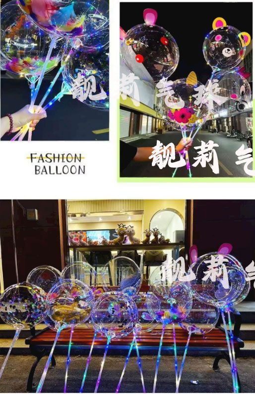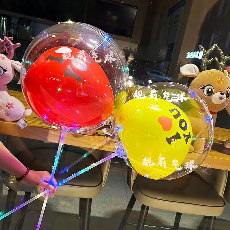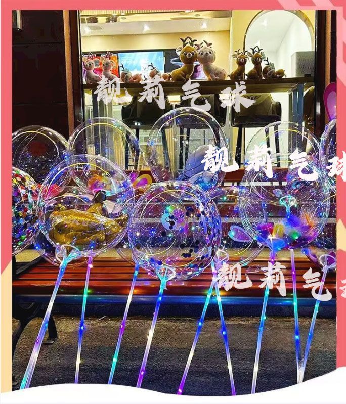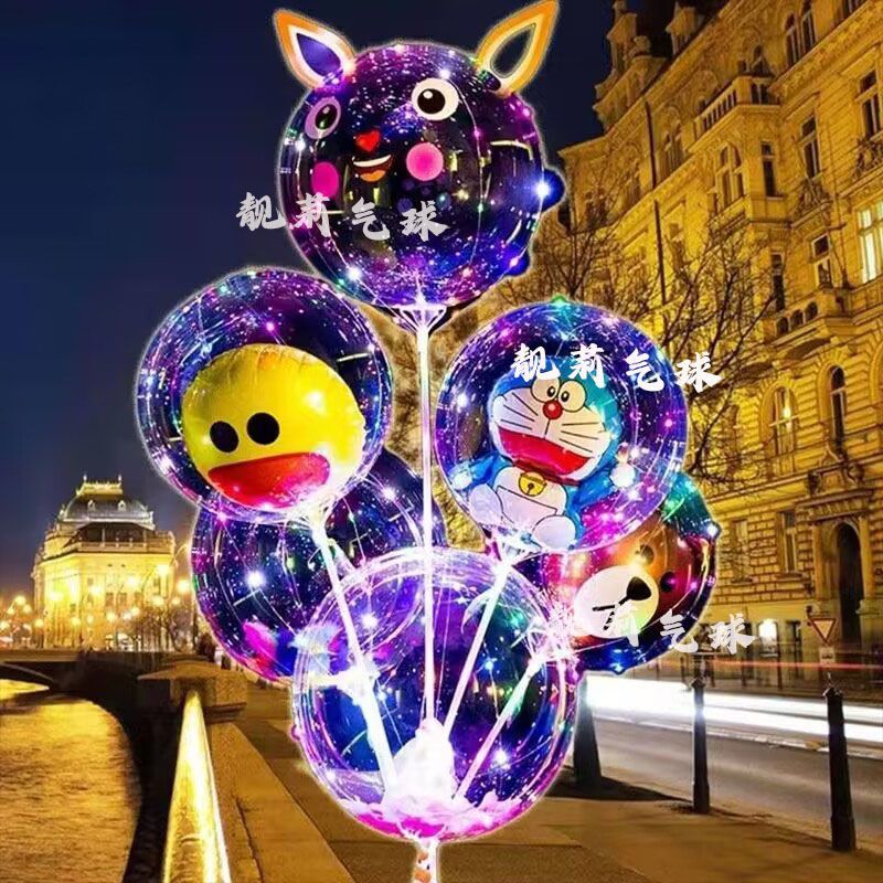 网红发光波波球闪光气球火爆款透明卡通摆摊热卖地推装饰带灯灯光