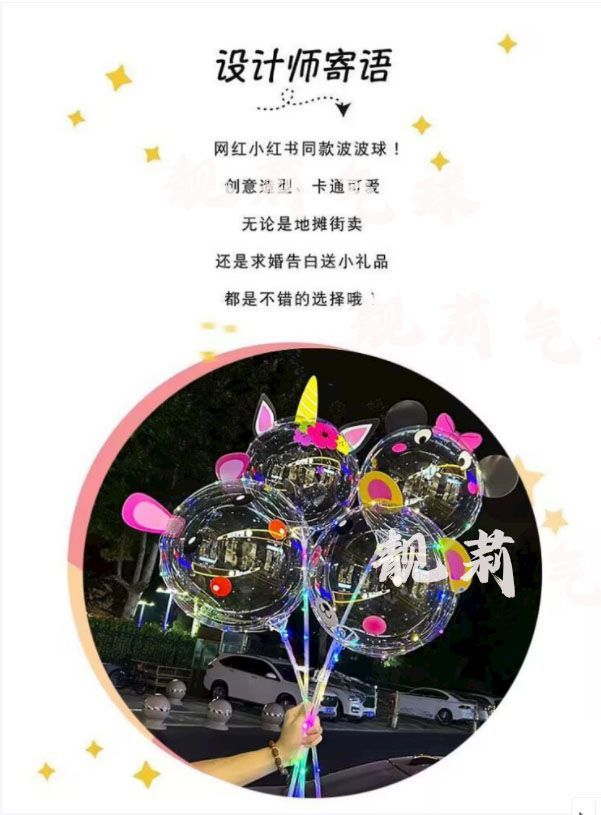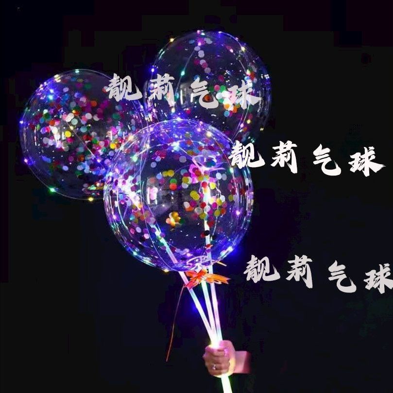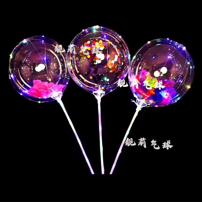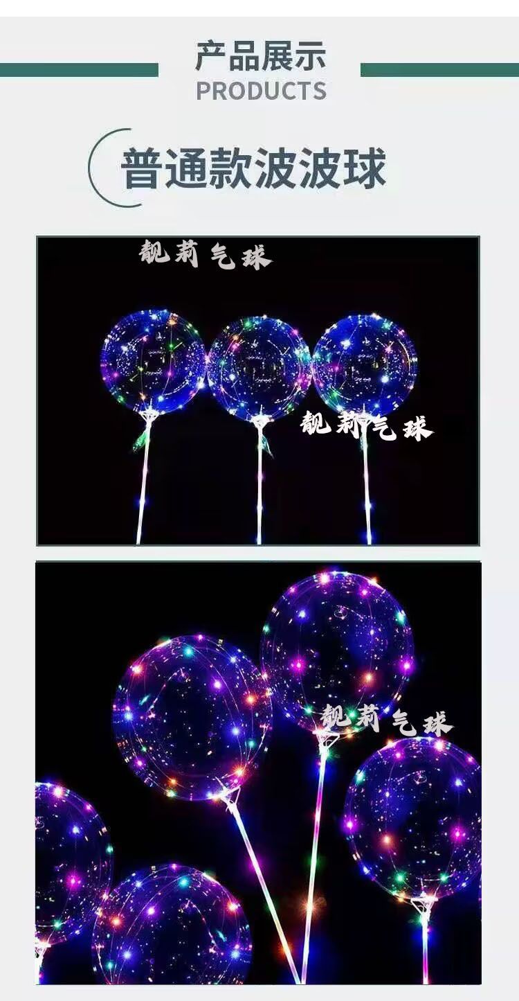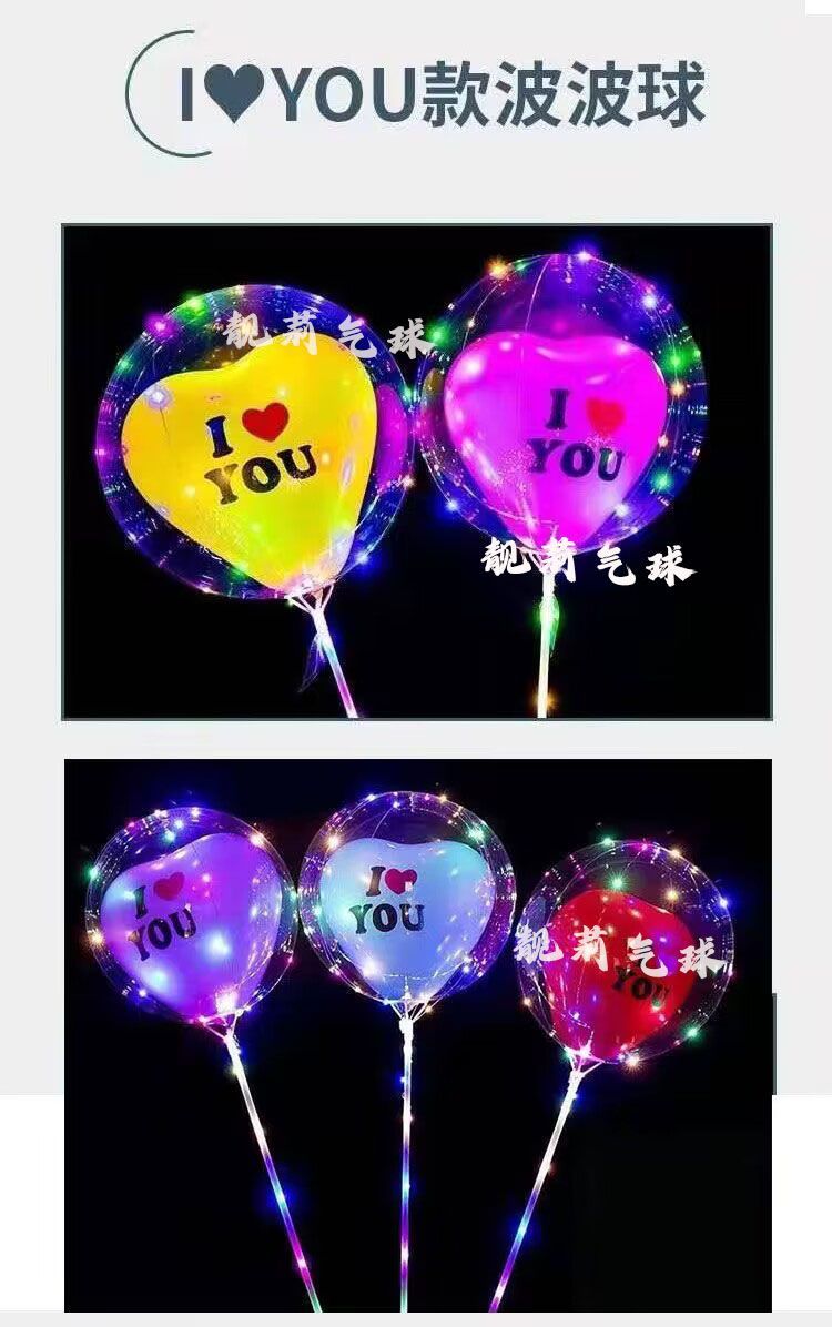 网红发光波波球闪光气球火爆款透明卡通摆摊热卖地推装饰带灯灯光