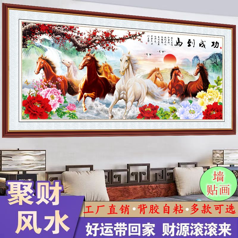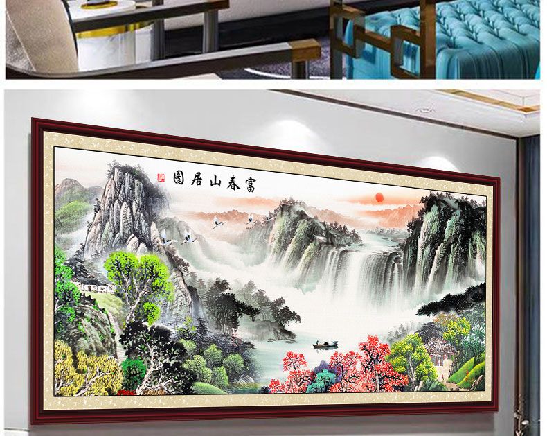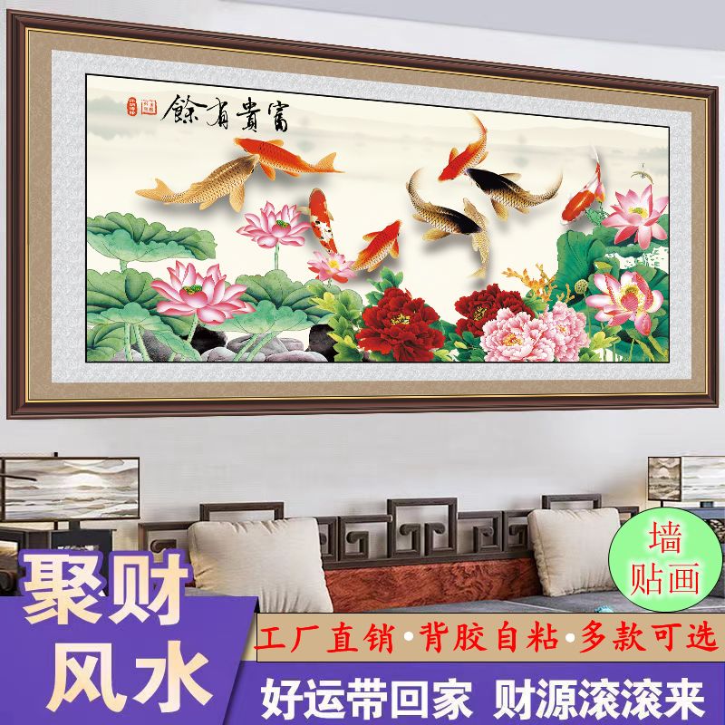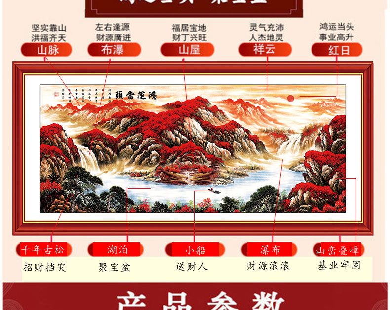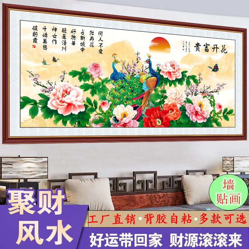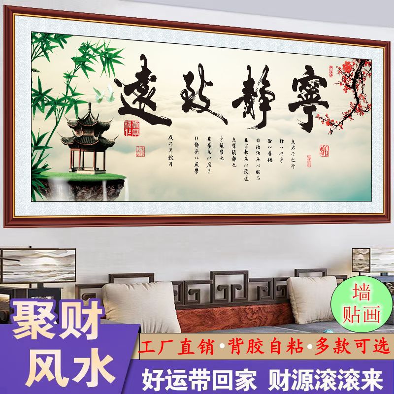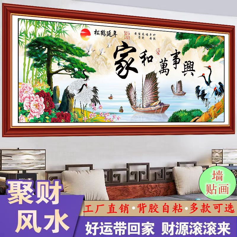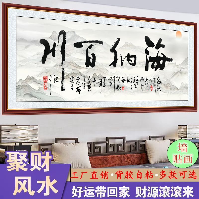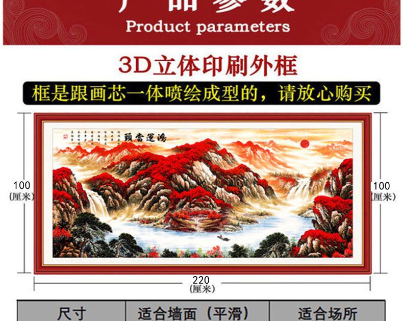 客厅山水画鸿运当头装饰自粘画旭日东升国画办公室沙发背景墙粘画