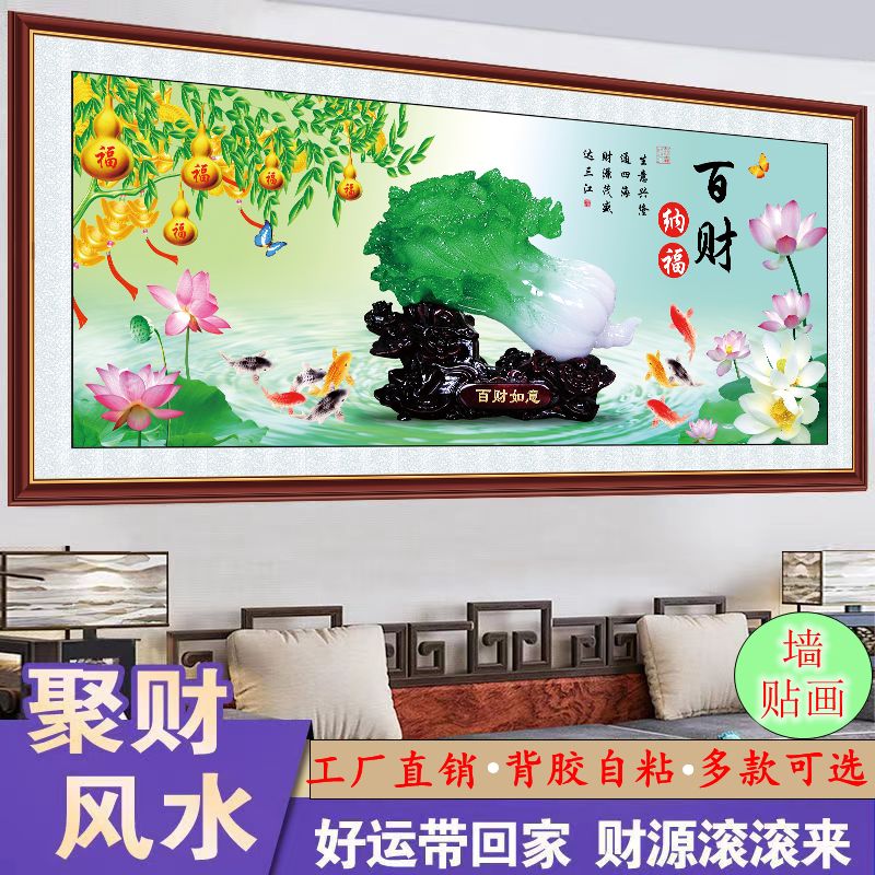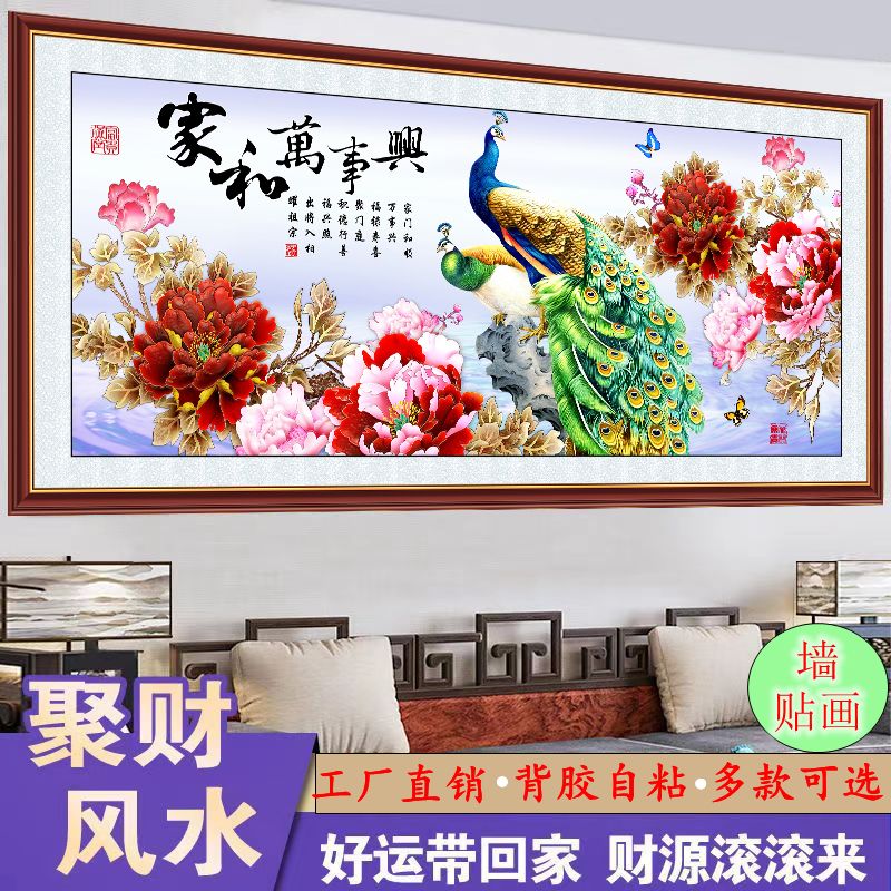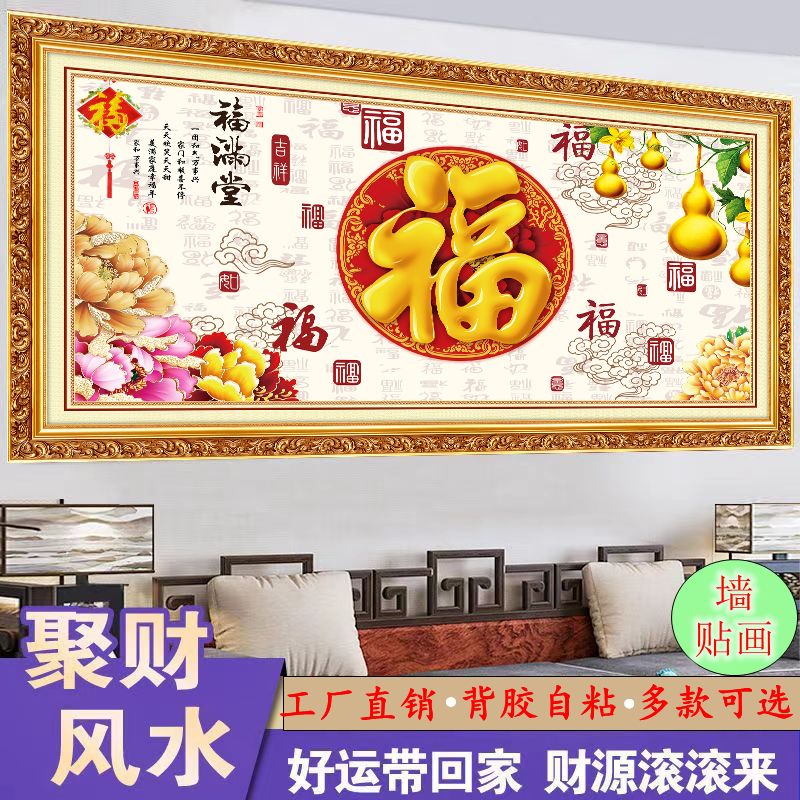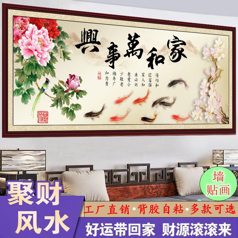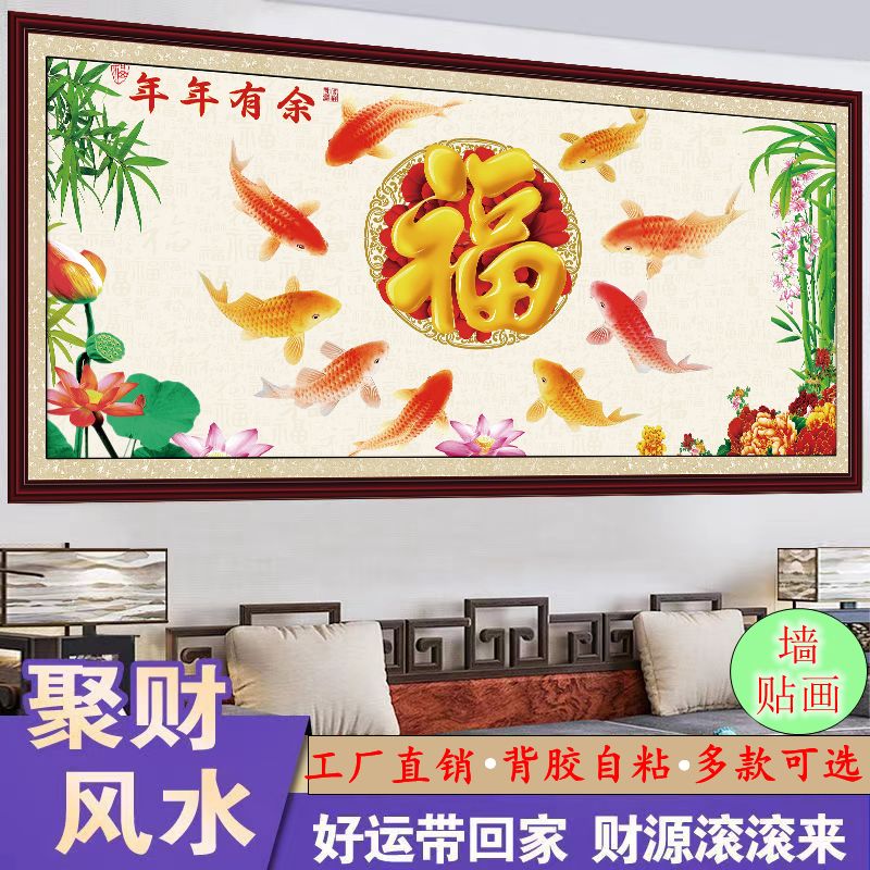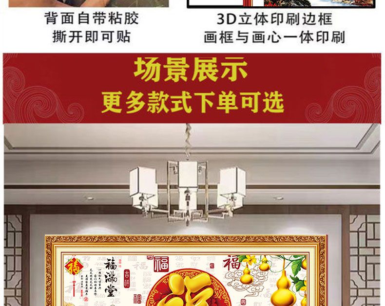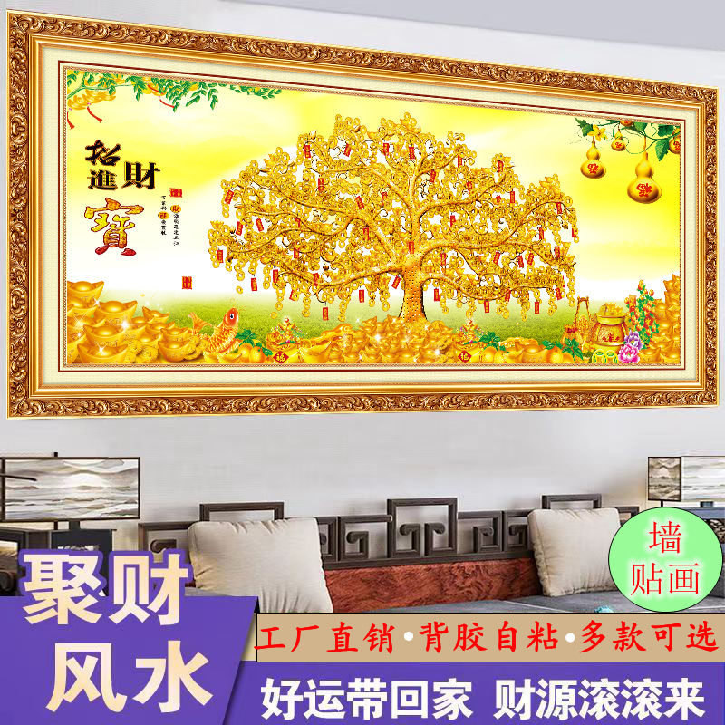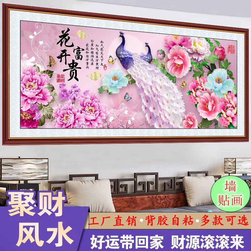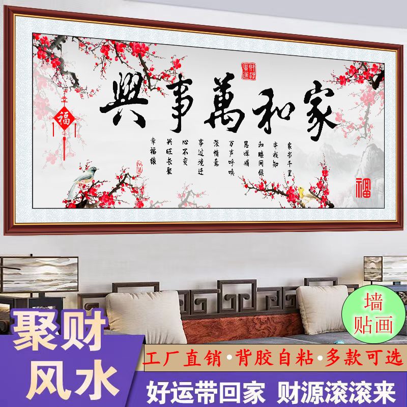 客厅山水画鸿运当头装饰自粘画旭日东升国画办公室沙发背景墙粘画