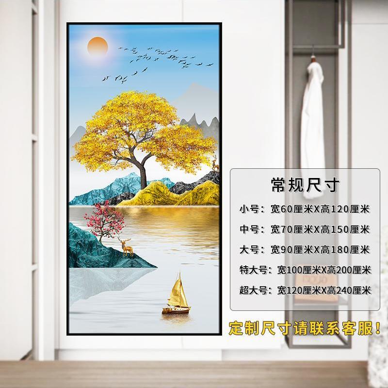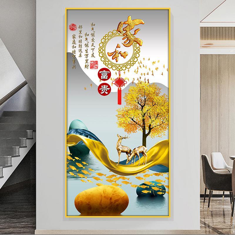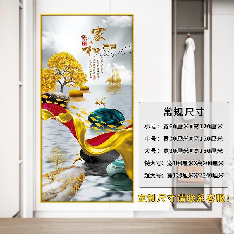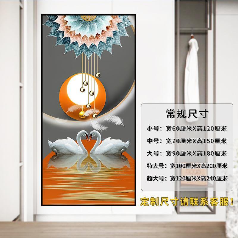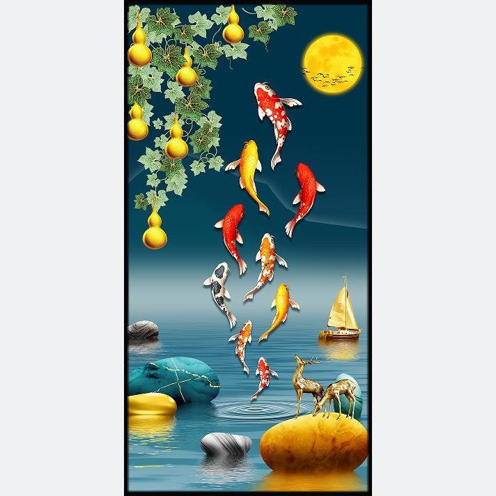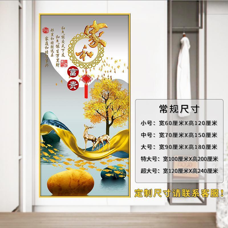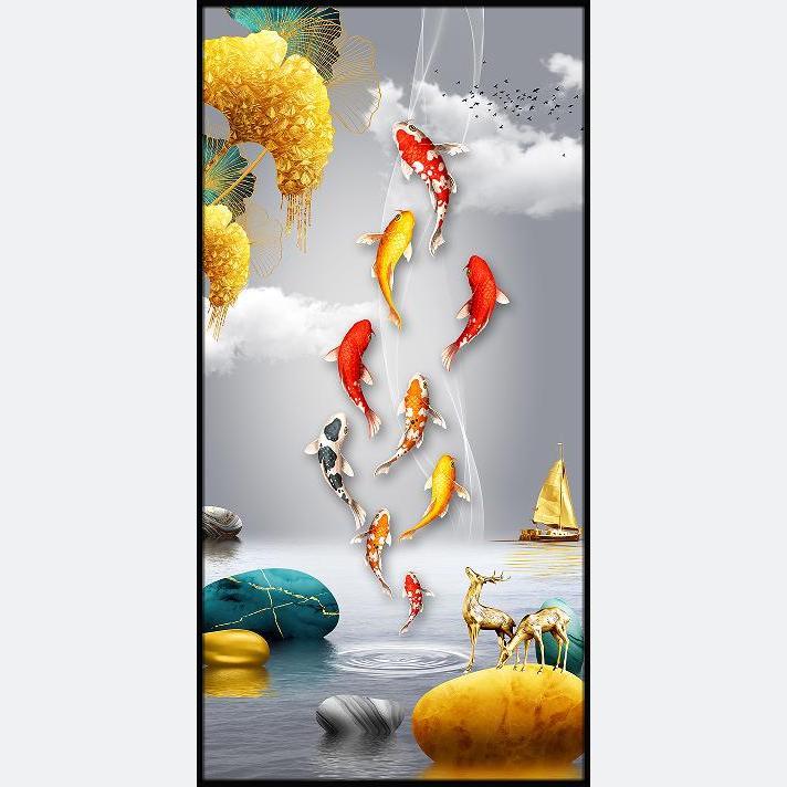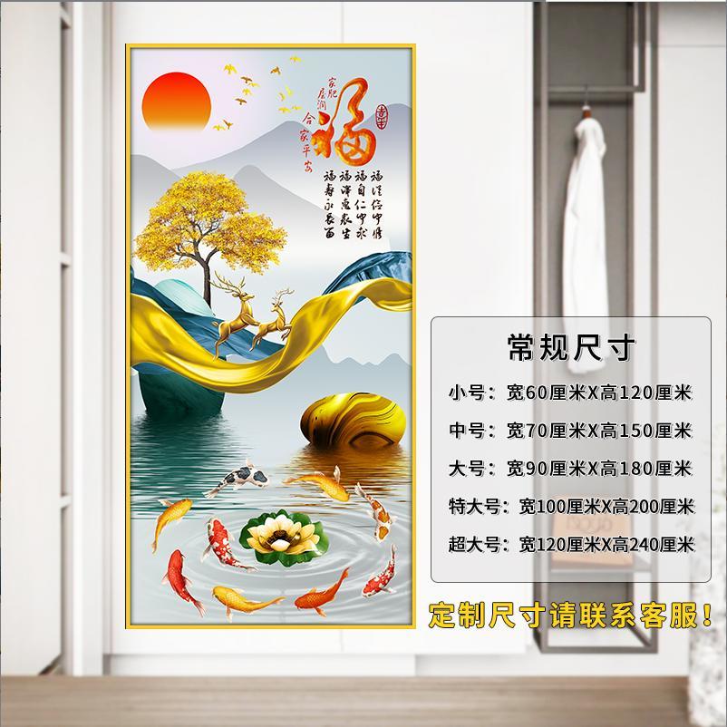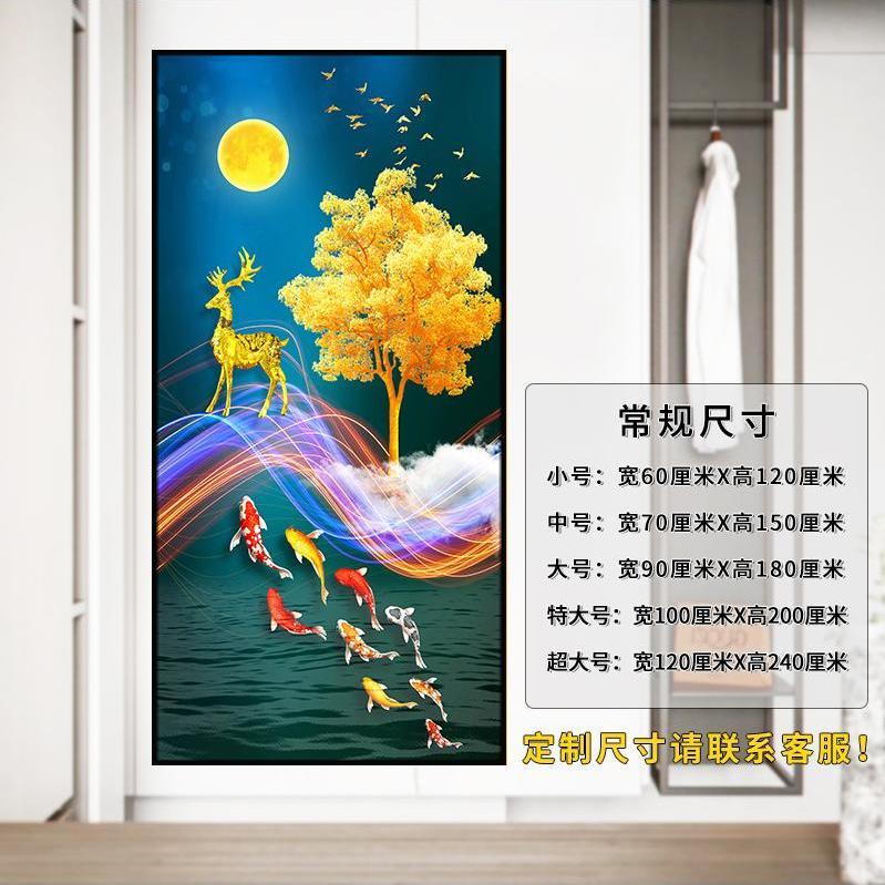 九鱼图入户玄关装饰画竖版现代轻奢走廊过道自粘贴画抽象客厅壁画