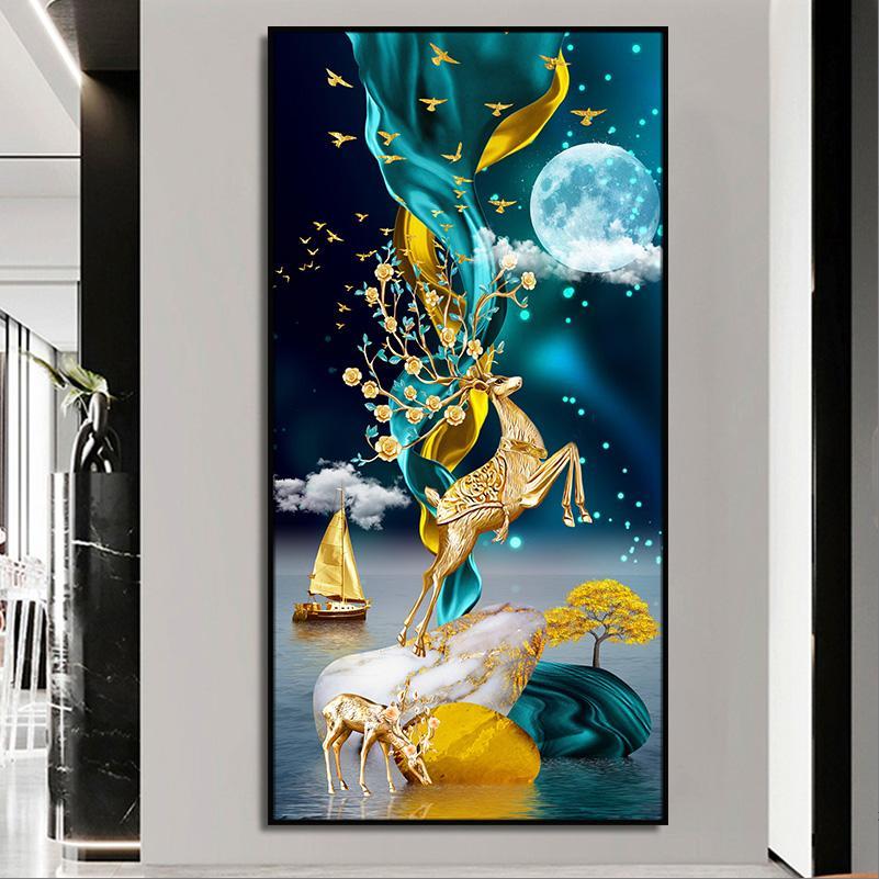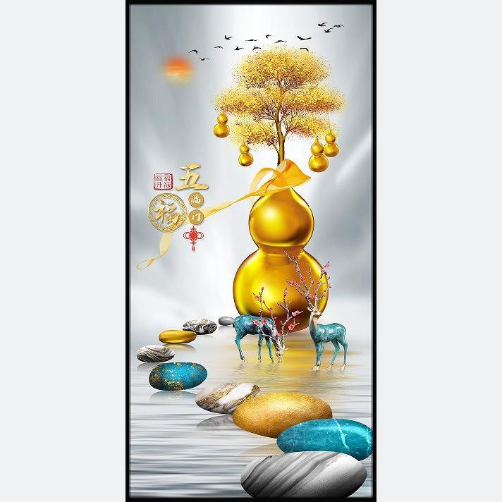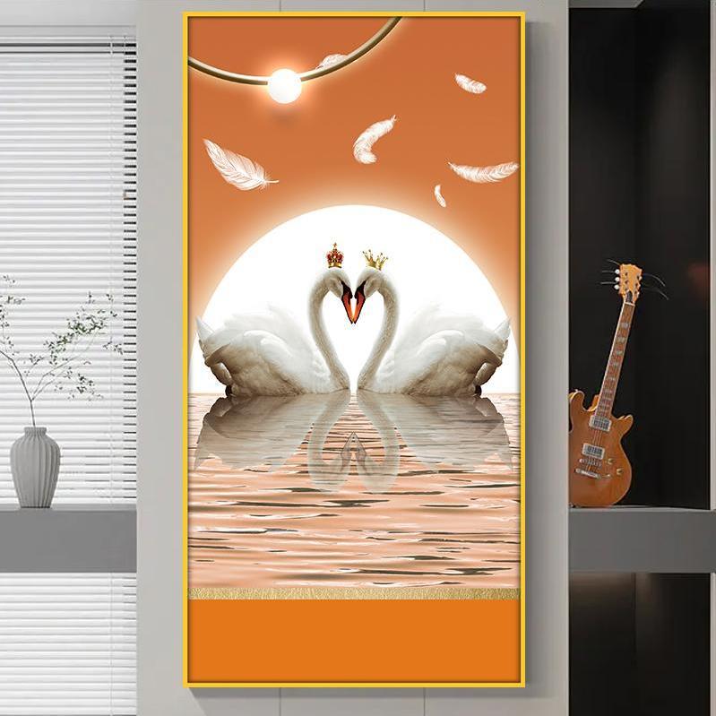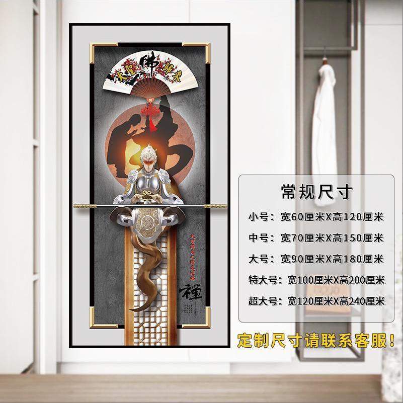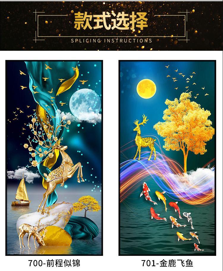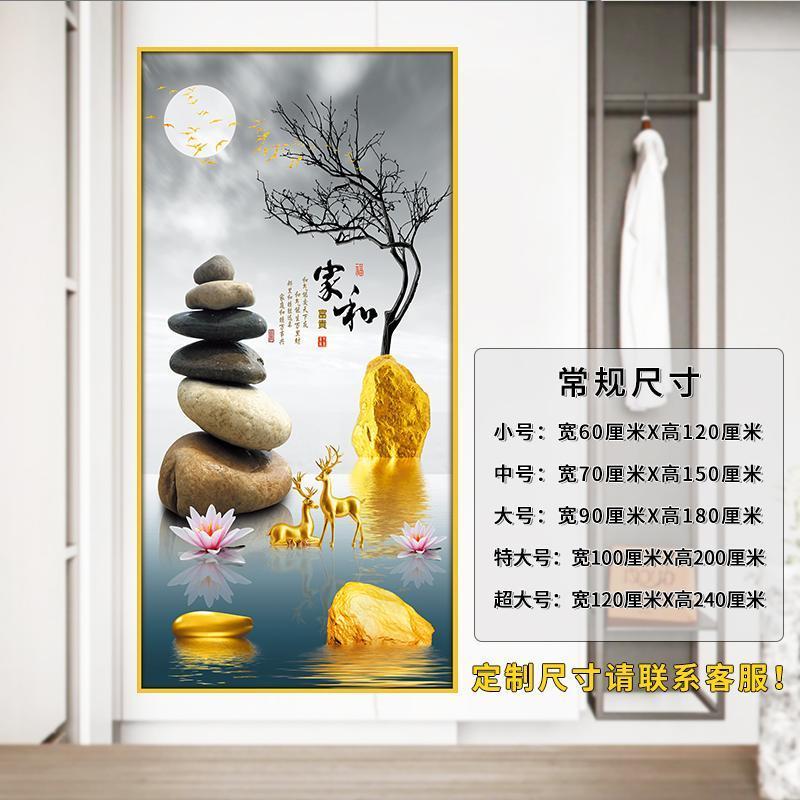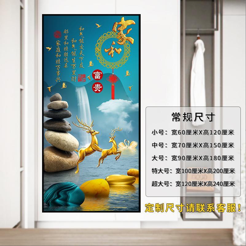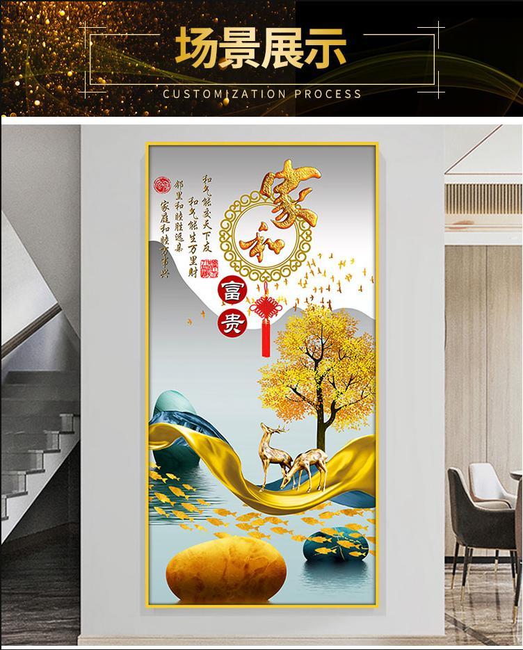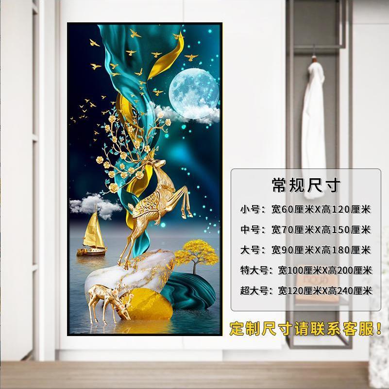 九鱼图入户玄关装饰画竖版现代轻奢走廊过道自粘贴画抽象客厅壁画