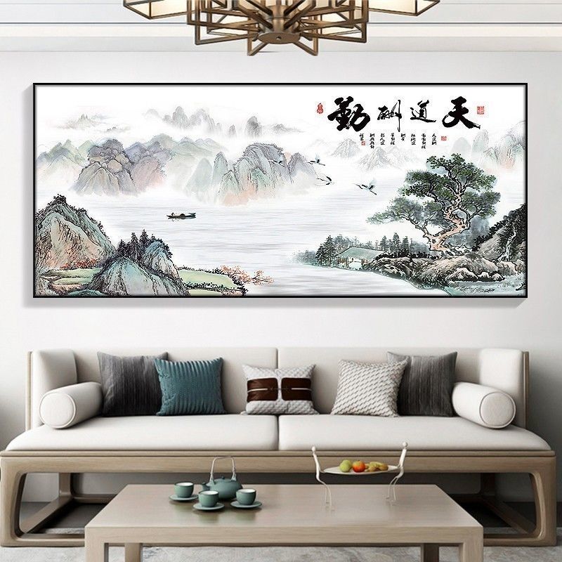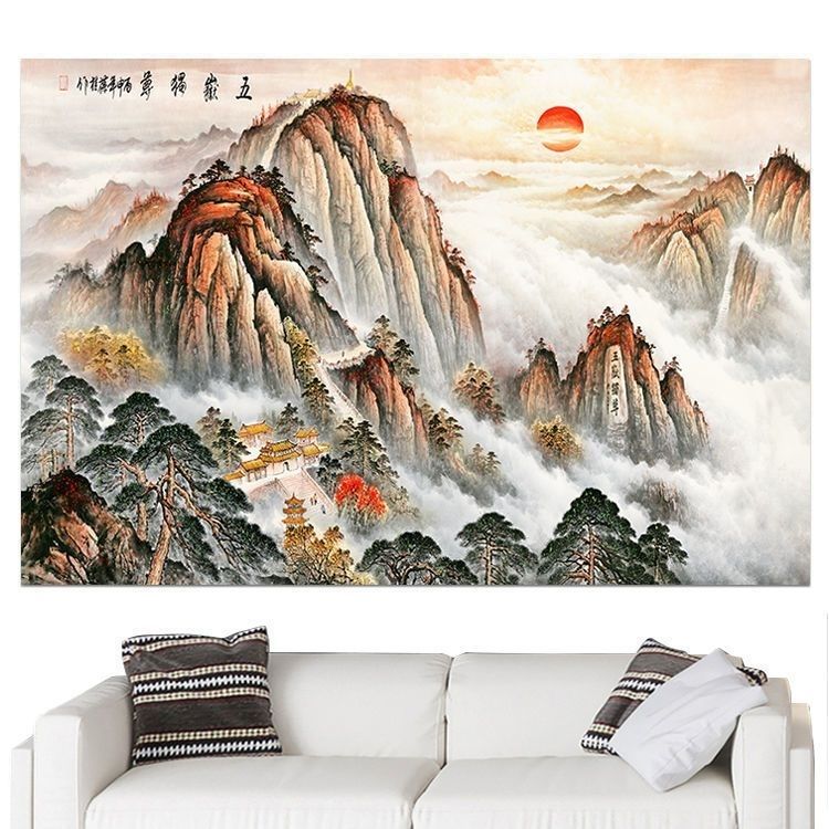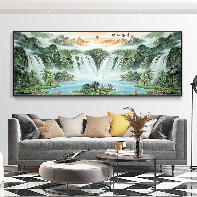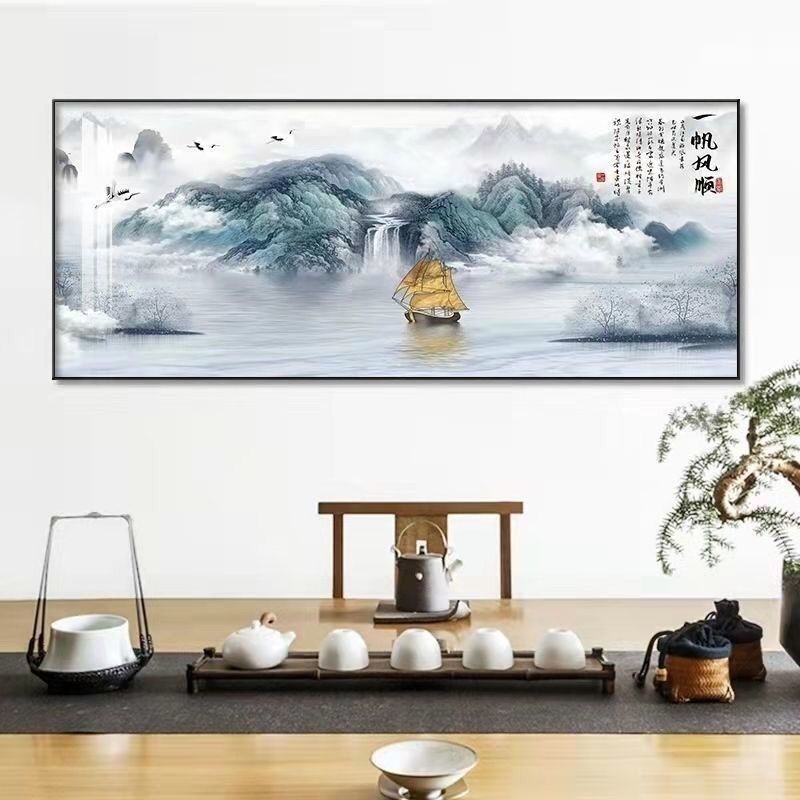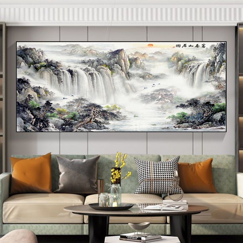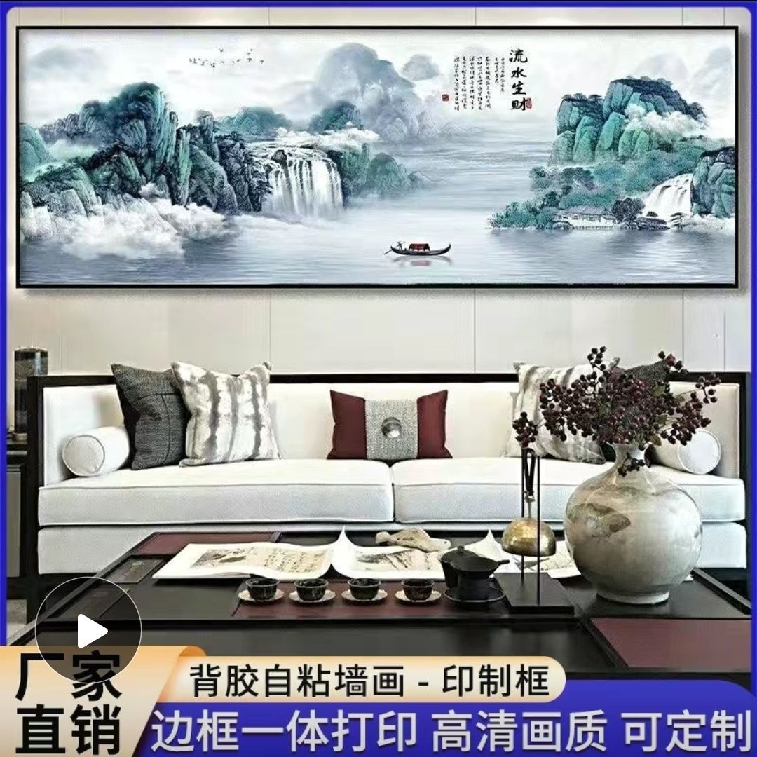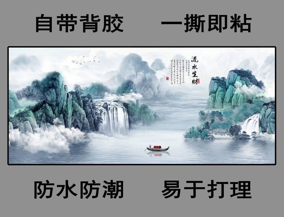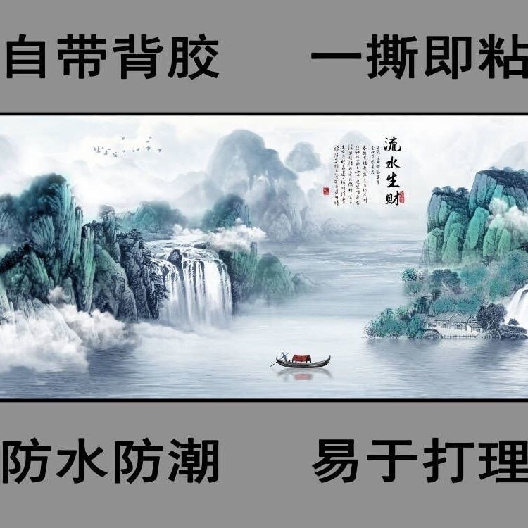自粘墙贴贴画客厅山水画人财两旺自贴装饰画自贴画背景墙贴画壁画