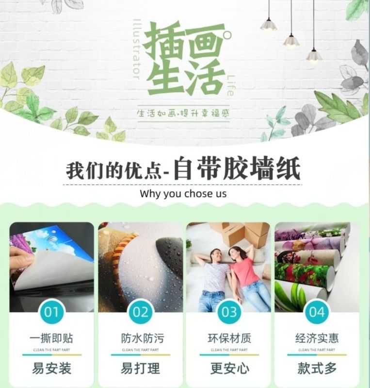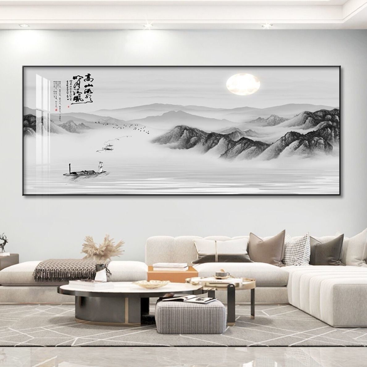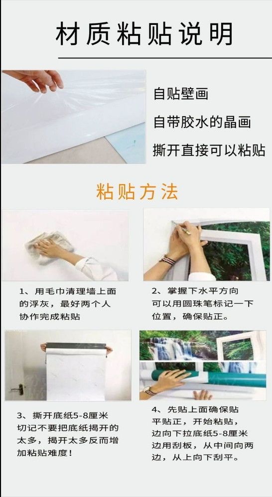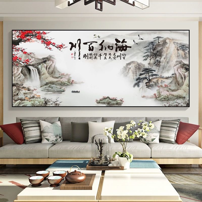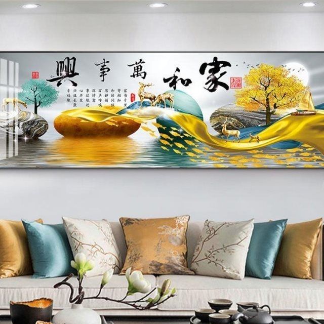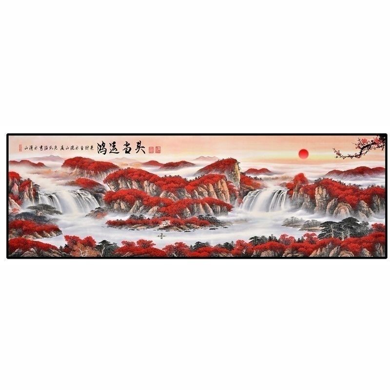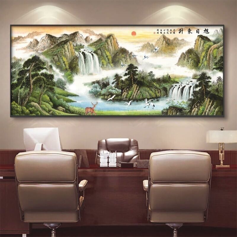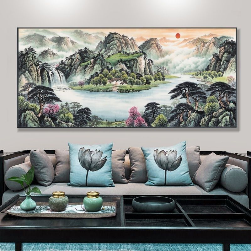 自粘墙贴贴画客厅山水画人财两旺自贴装饰画自贴画背景墙贴画壁画