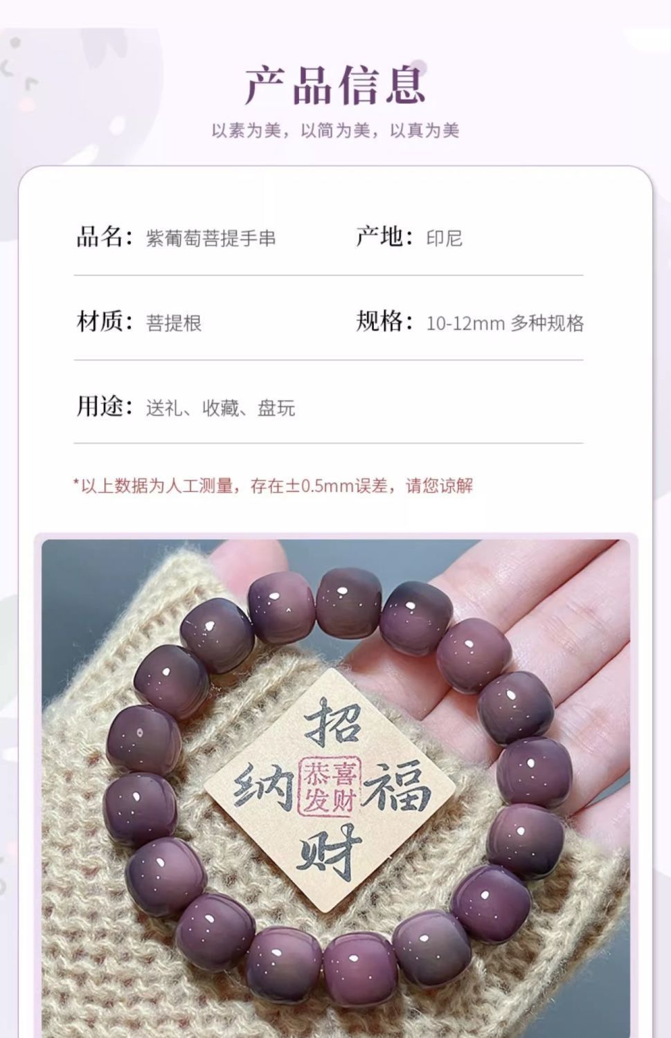 新品紫葡萄白玉菩提根学生盘玩手串女绕指柔菩提子文玩男佛珠手链