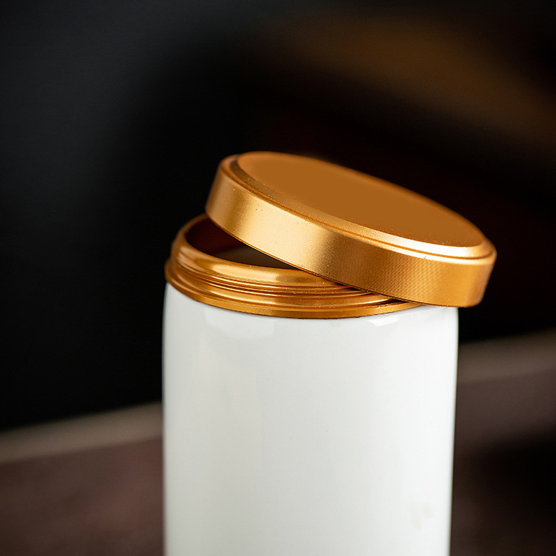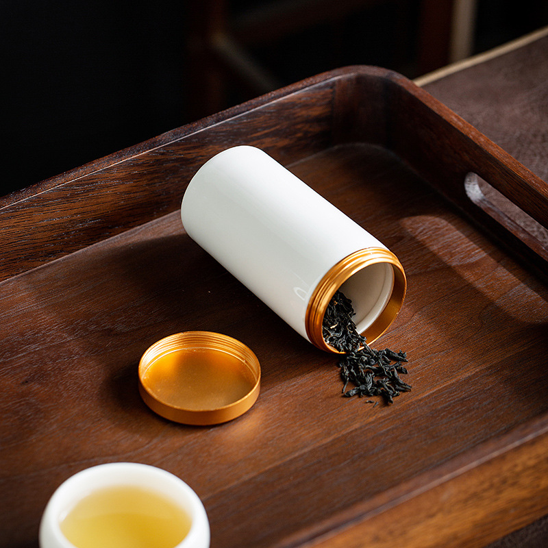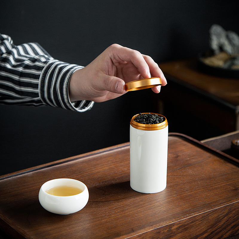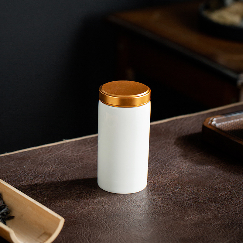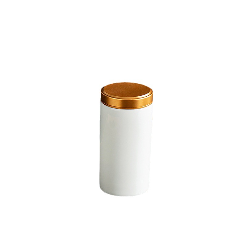 德化陶瓷小号茶叶罐牙粉白瓷香粉40g合金盖密封 茶仓圆柱药粉干果