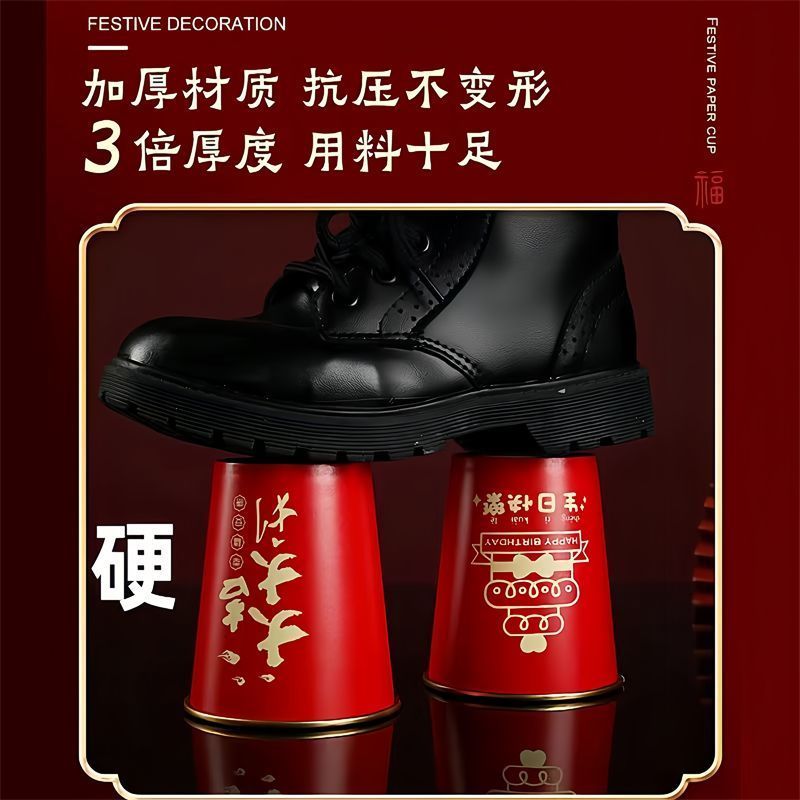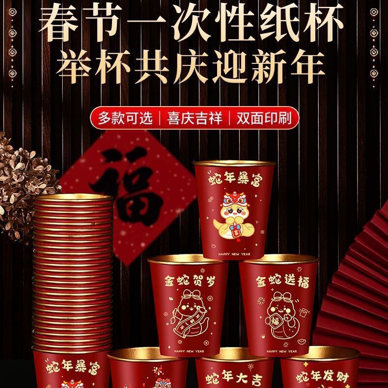 2025蛇年纸杯一次性杯子家用新年贺岁加厚金箔乔迁春节结婚水杯