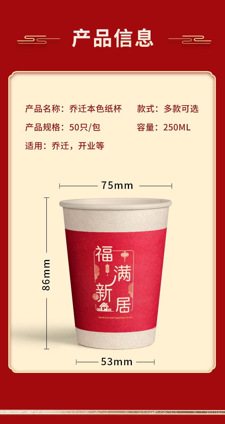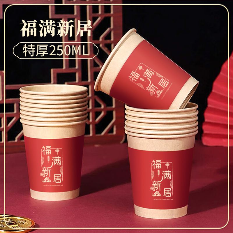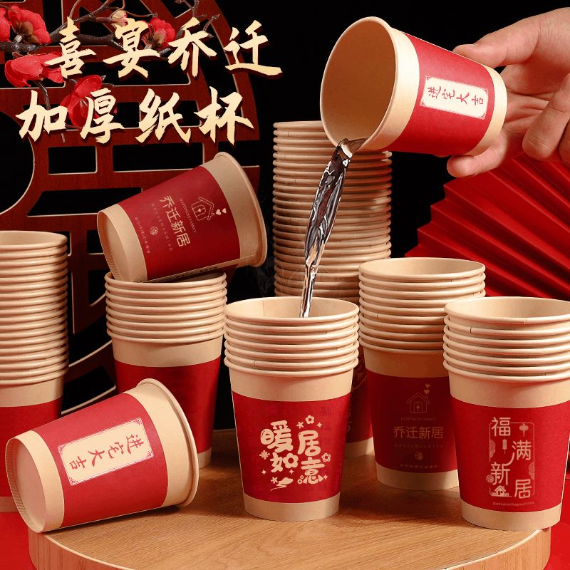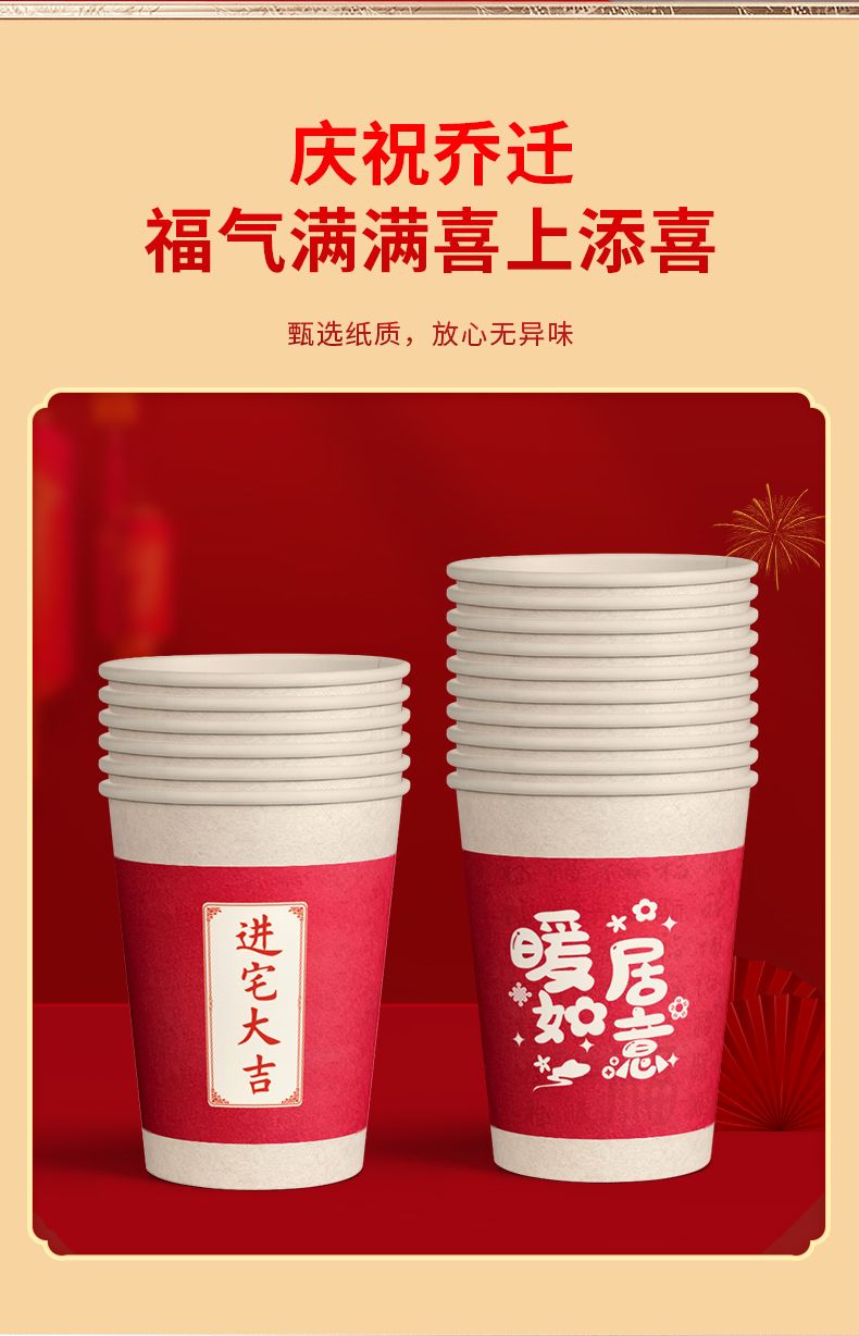 乔迁之喜纸杯子新居必备入宅布置一次性纸杯搬家新房装饰红色杯子