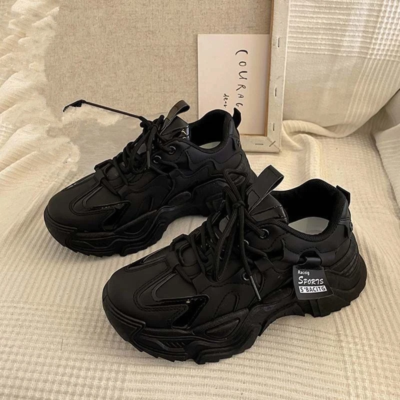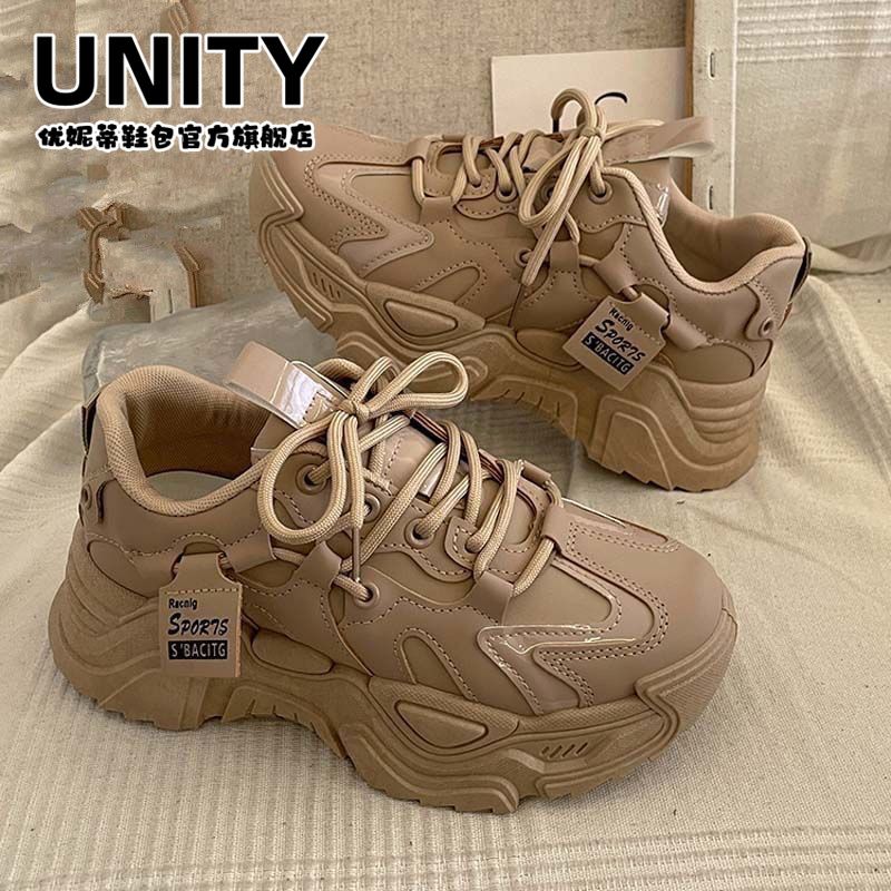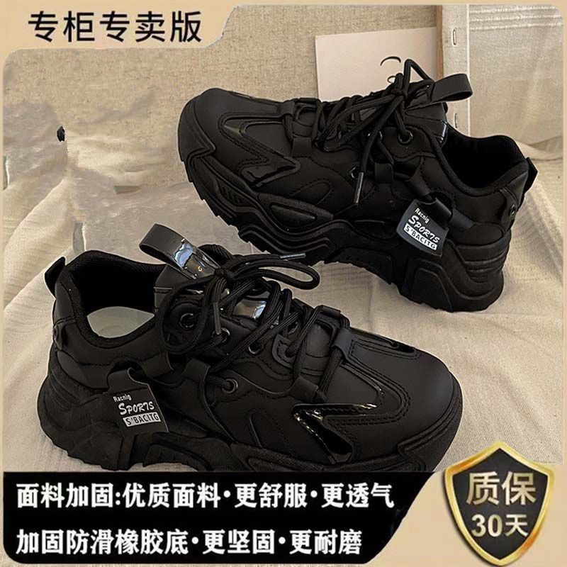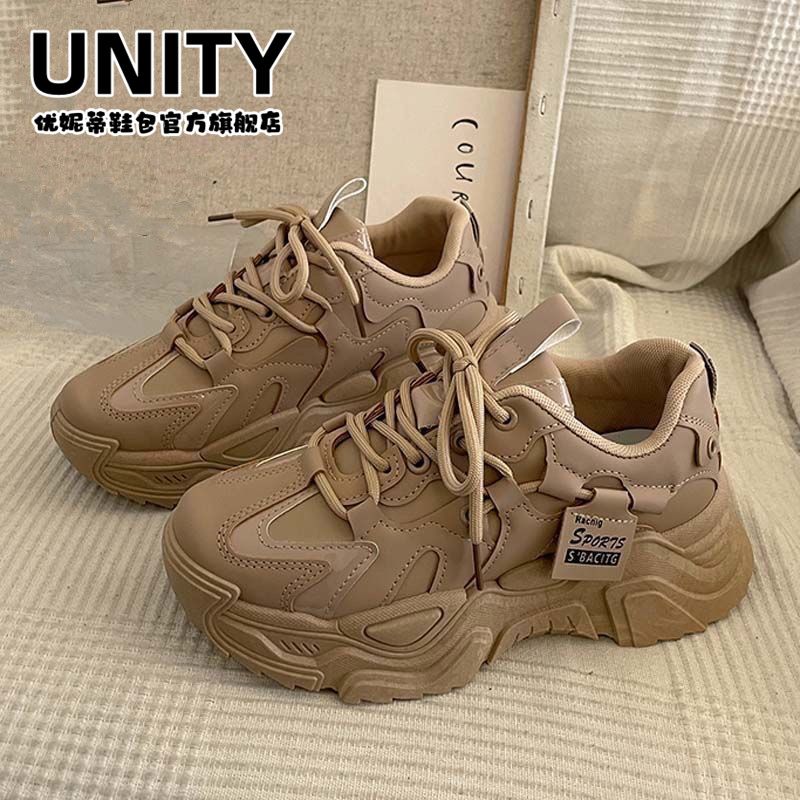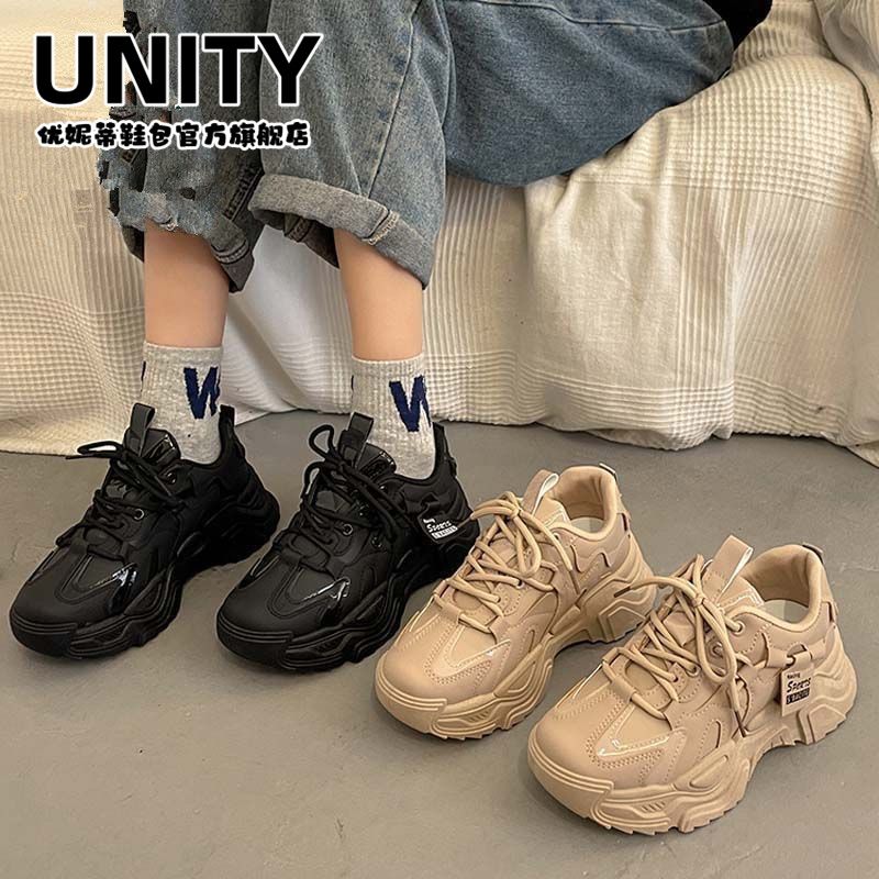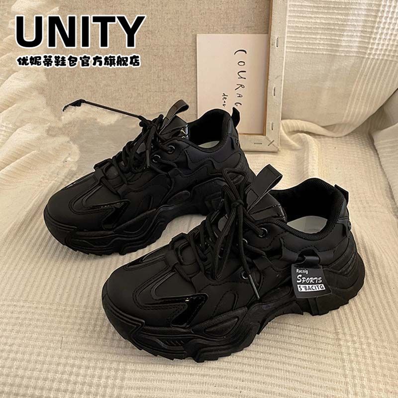 UNIITY黑色老爹鞋女潮2024春秋新款百搭显脚小厚底防滑休闲运动鞋