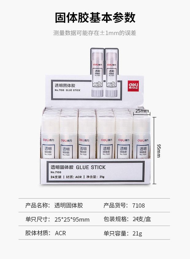 得力固体胶学生手工12支装21g36g大号7108固体胶棒胶水高粘度强力