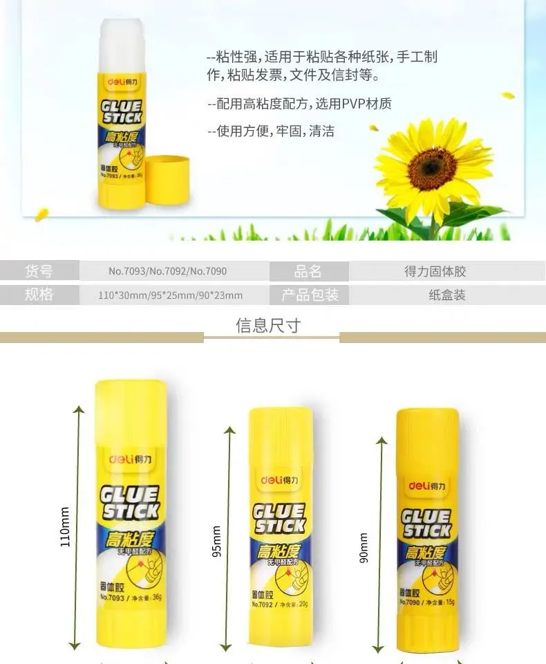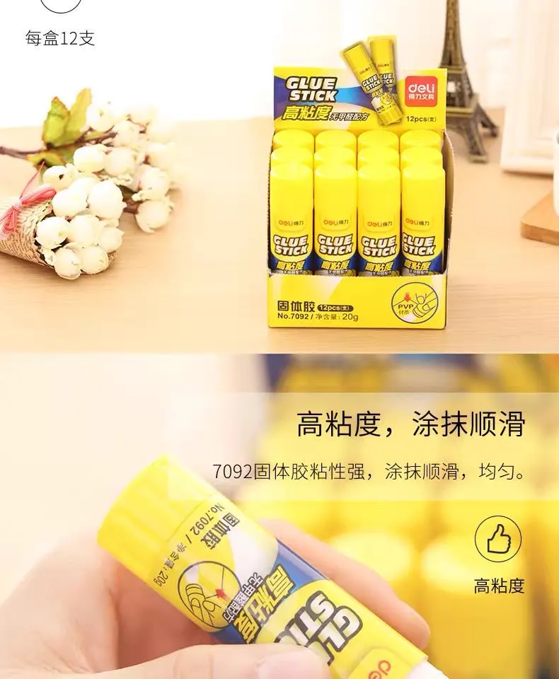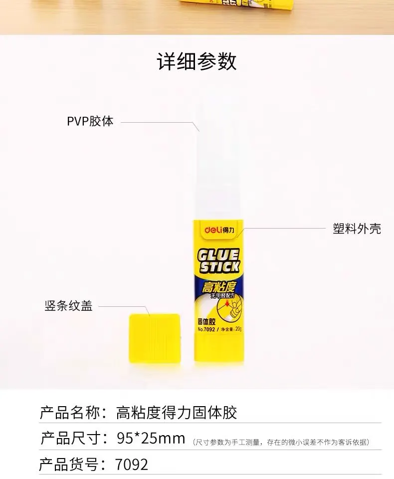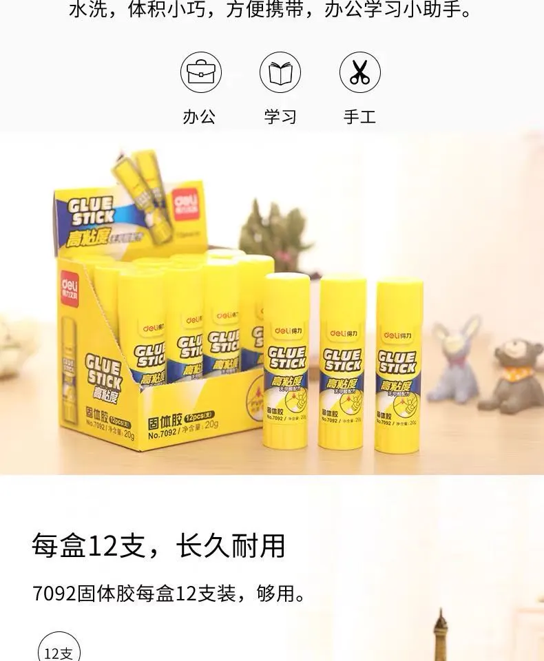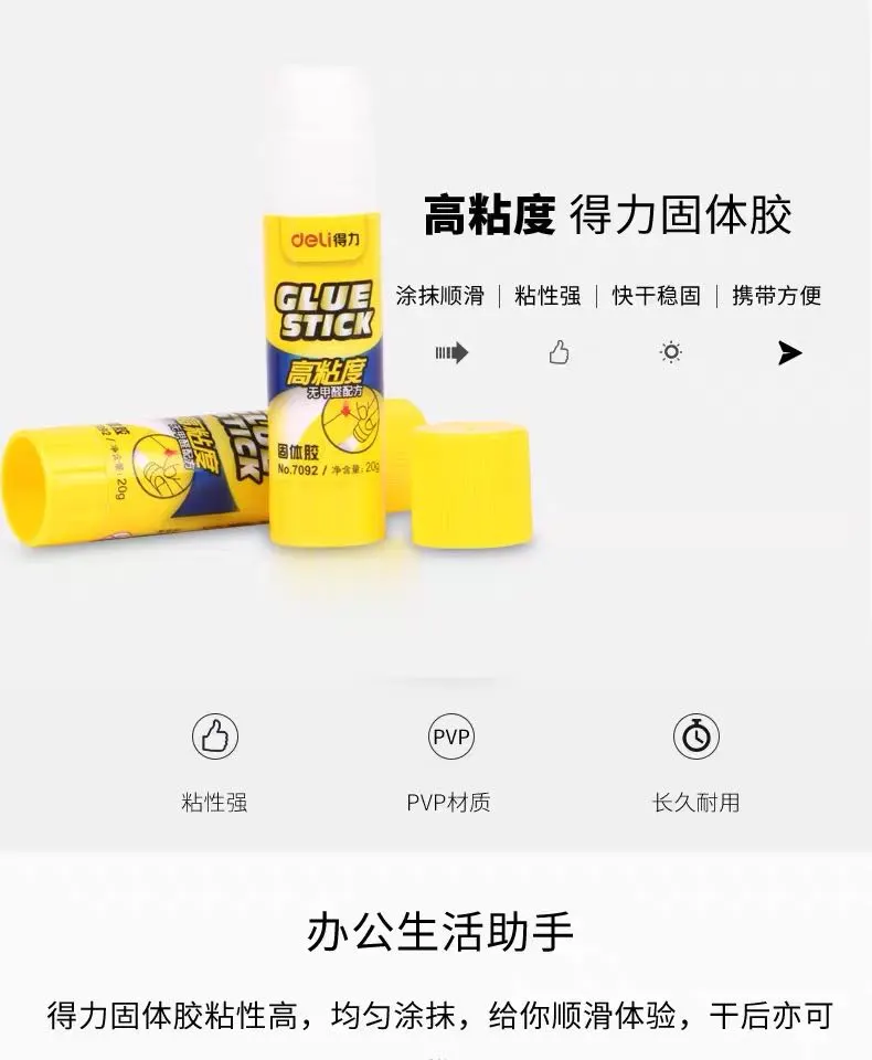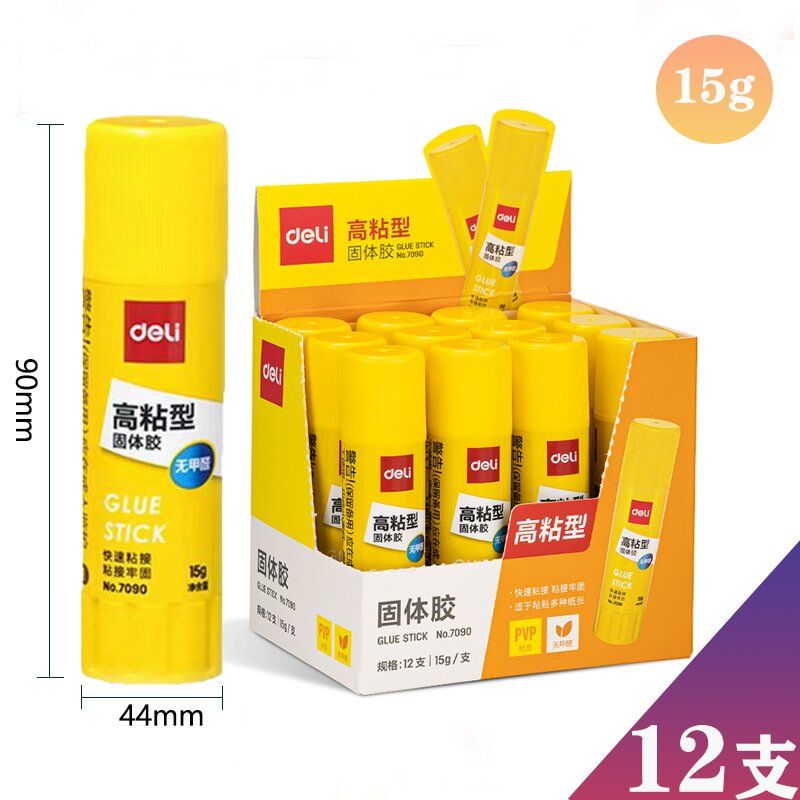 得力无甲醛固体胶儿童手工强力胶棒办公用粘贴胶水高粘度文具胶棒