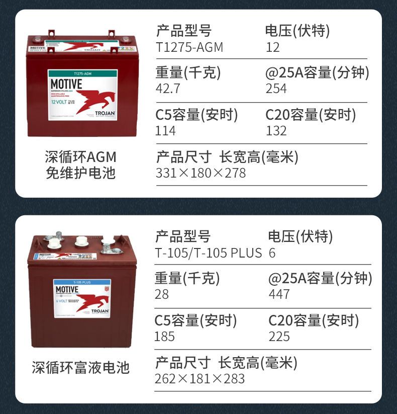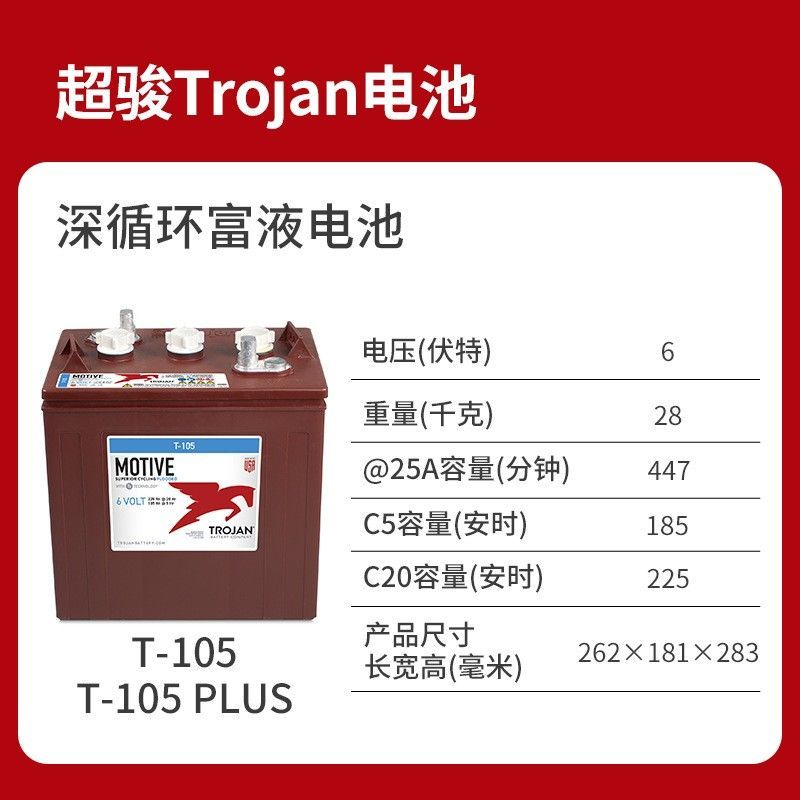 美国超骏TROJAN邱健 T-105/T-105PLUS 电瓶蓄电池6V225ah正品批发