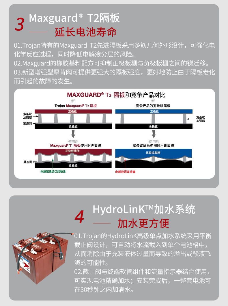 超骏TROJAN蓄电池T-875 8V 170AH洗地机高尔夫球车用铅酸电池正品