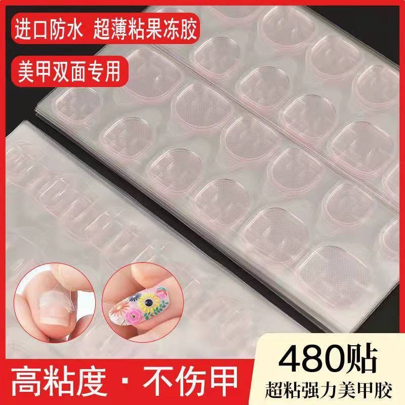 超薄果冻胶美甲贴高粘度假指甲双面穿戴式甲片贴胶水持久可拆卸