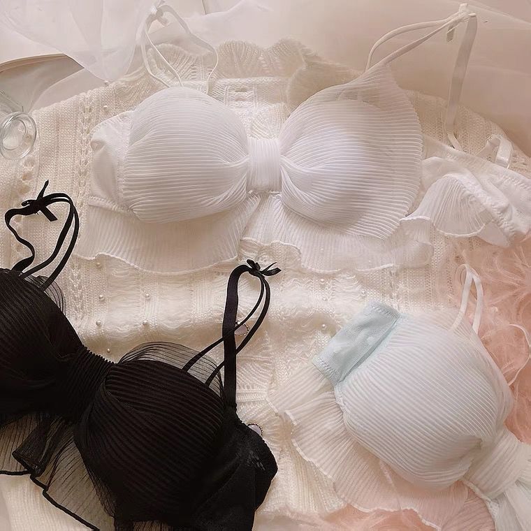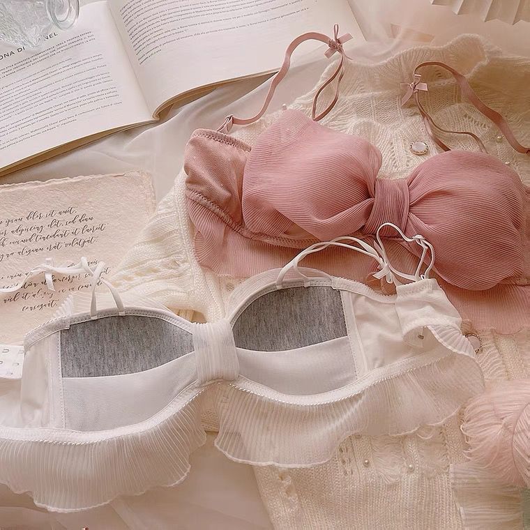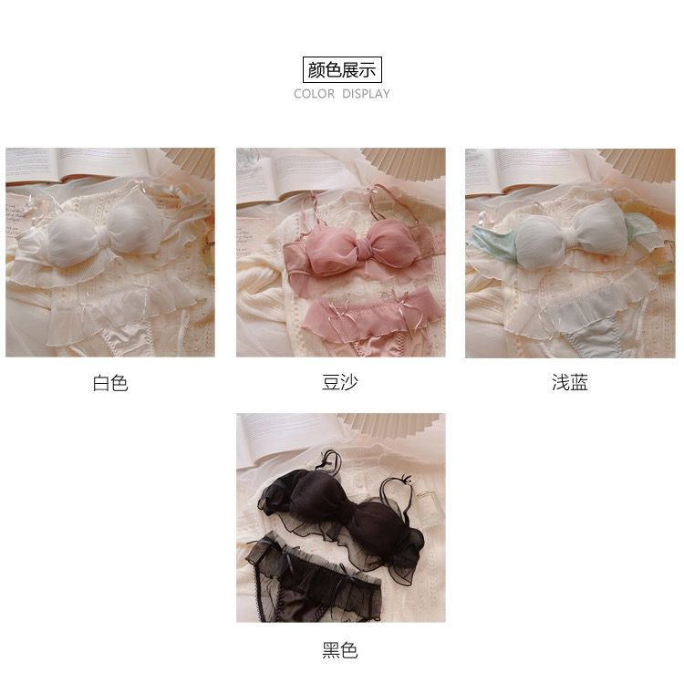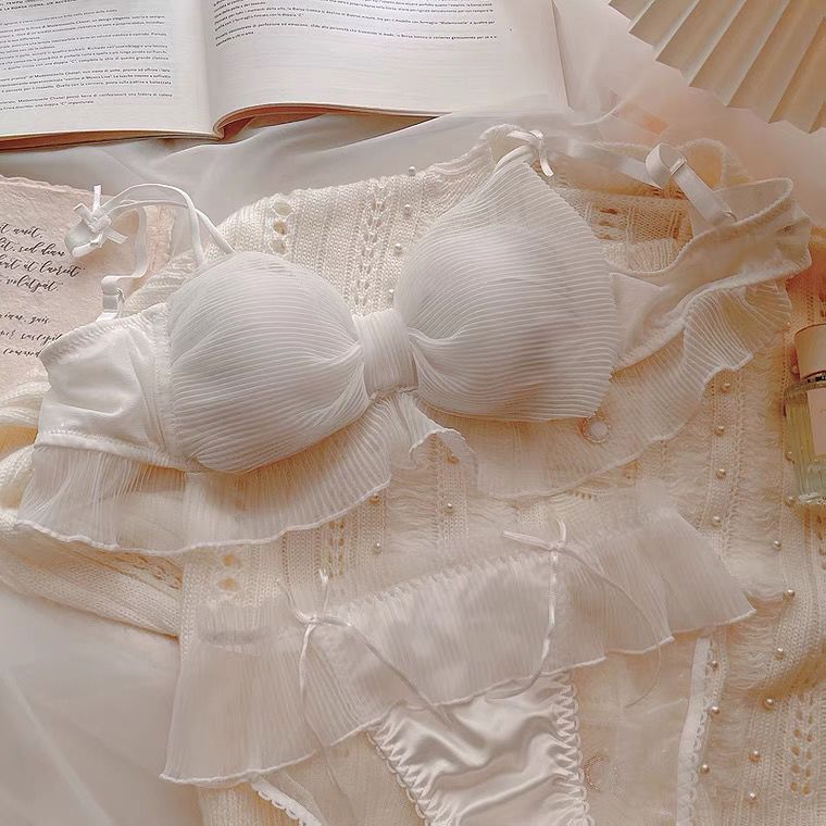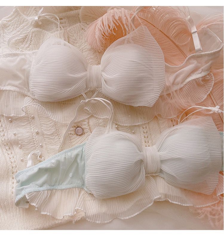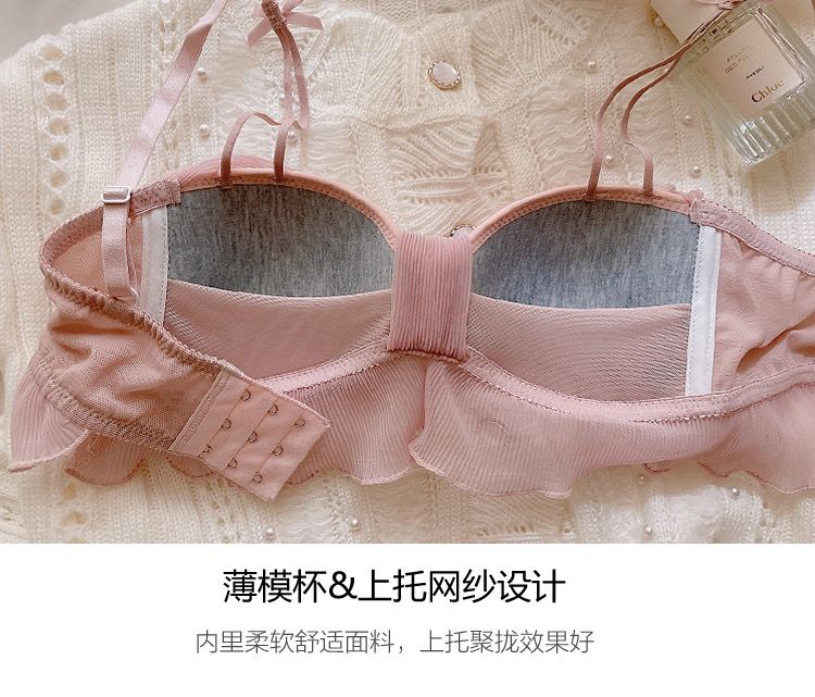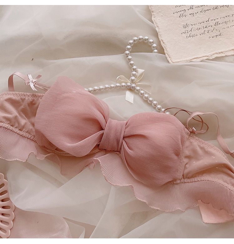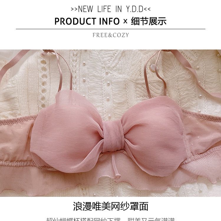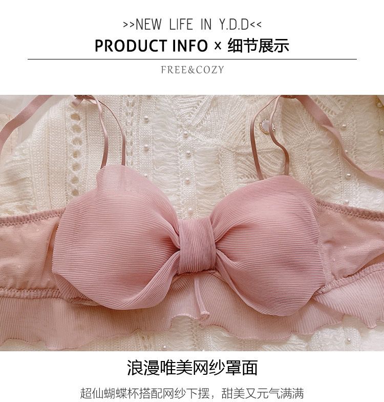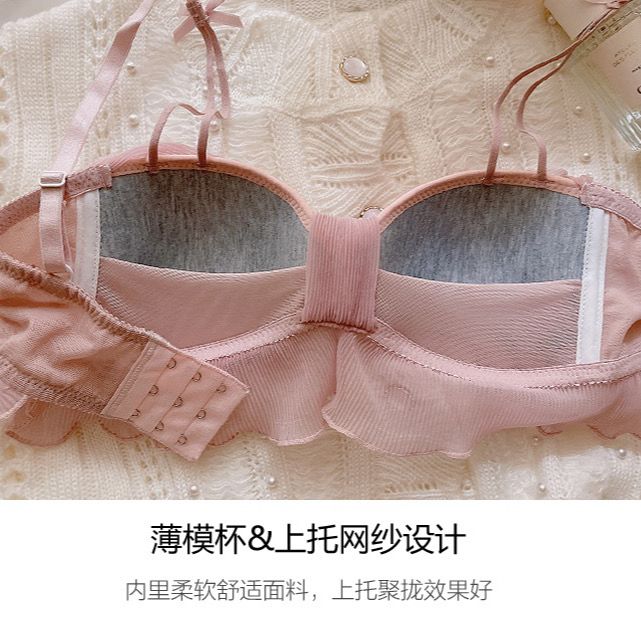 日系小胸聚拢文胸套装蝴蝶结无钢圈甜美少女学生防下垂内衣秋冬