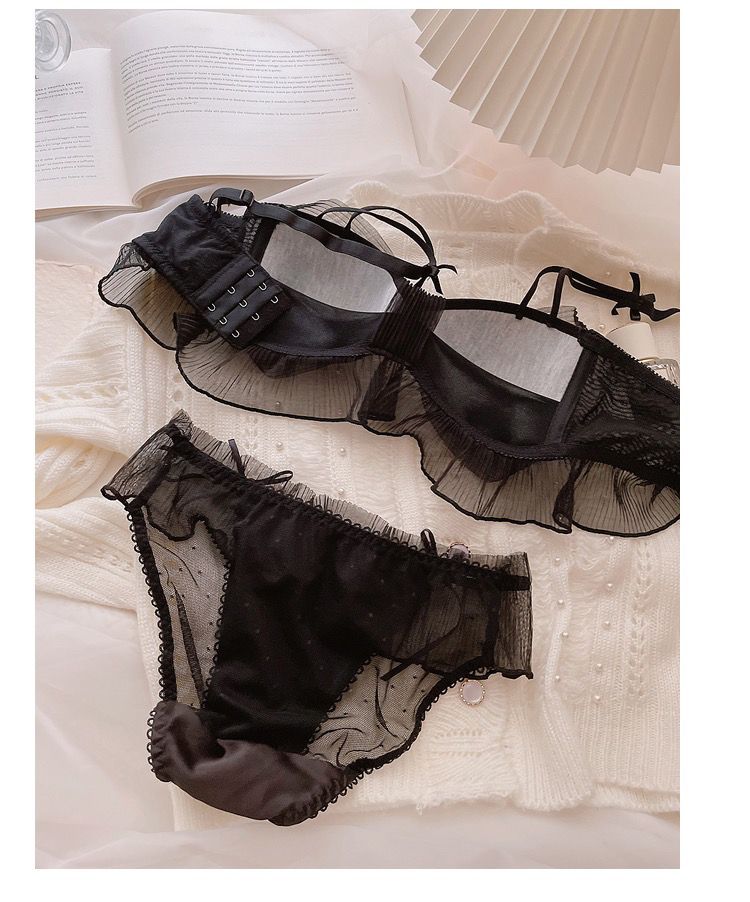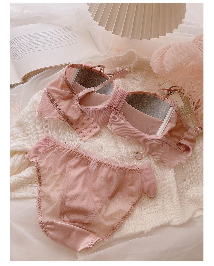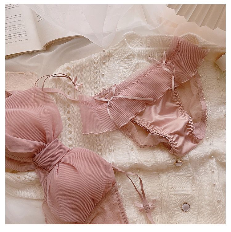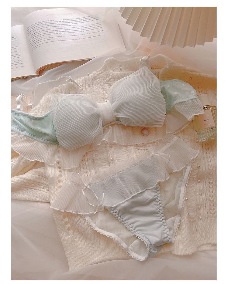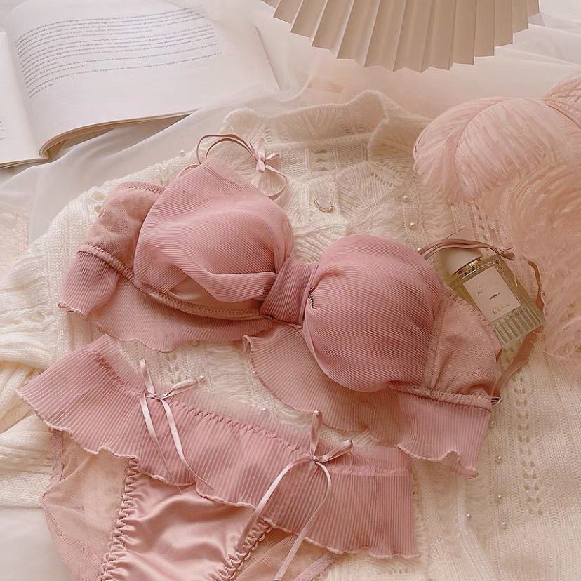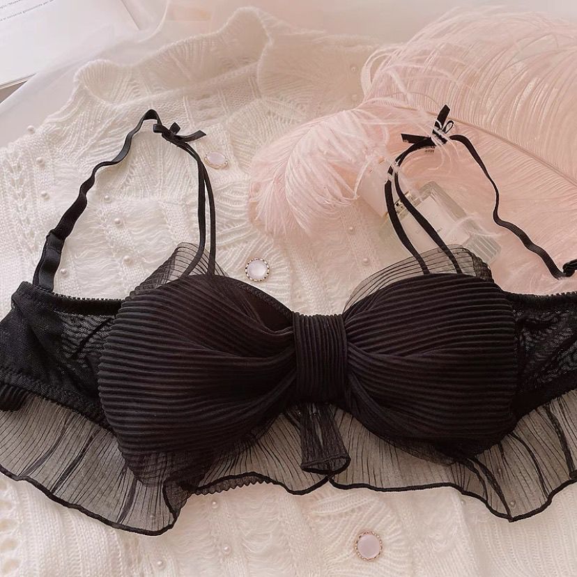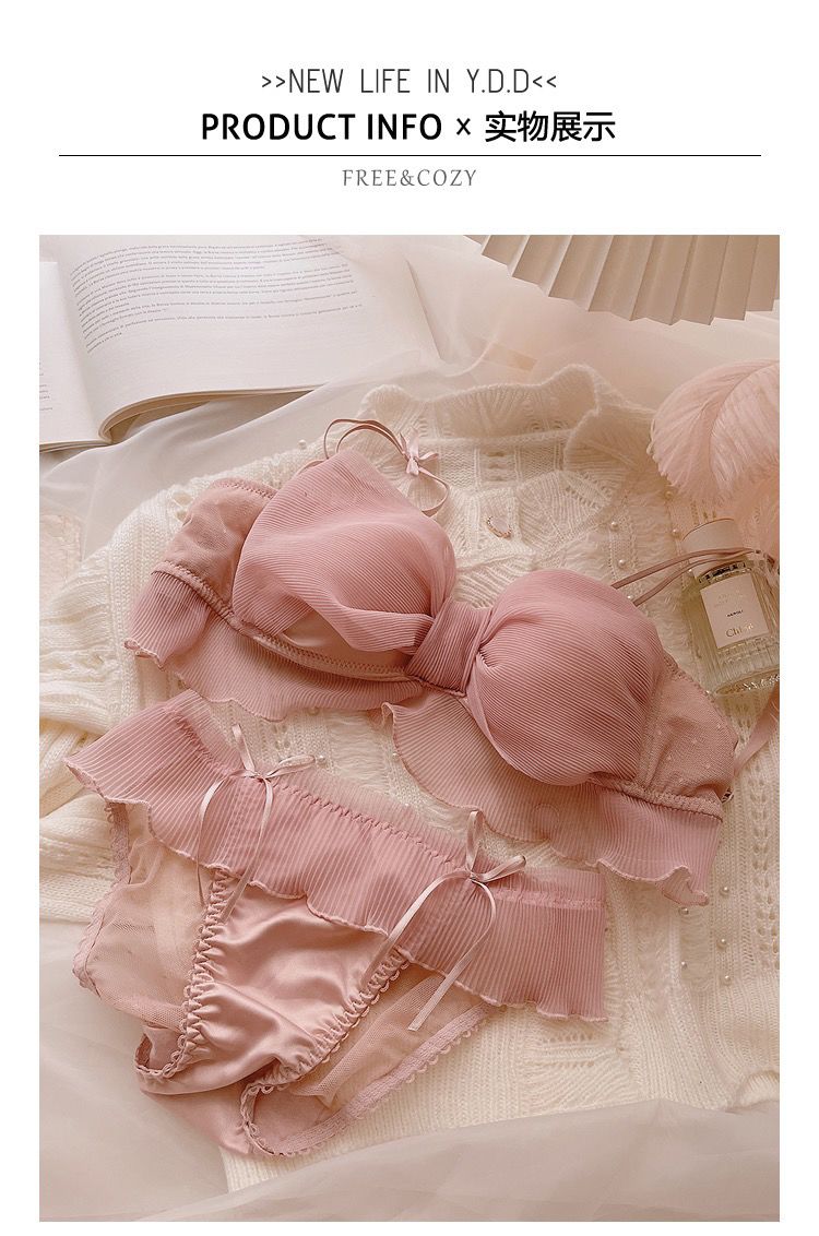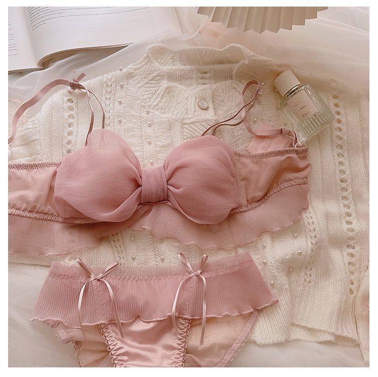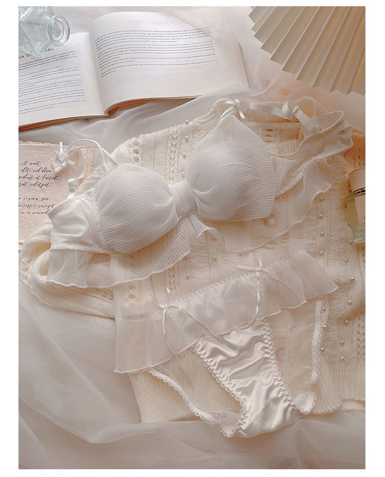 日系小胸聚拢文胸套装蝴蝶结无钢圈甜美少女学生防下垂内衣秋冬