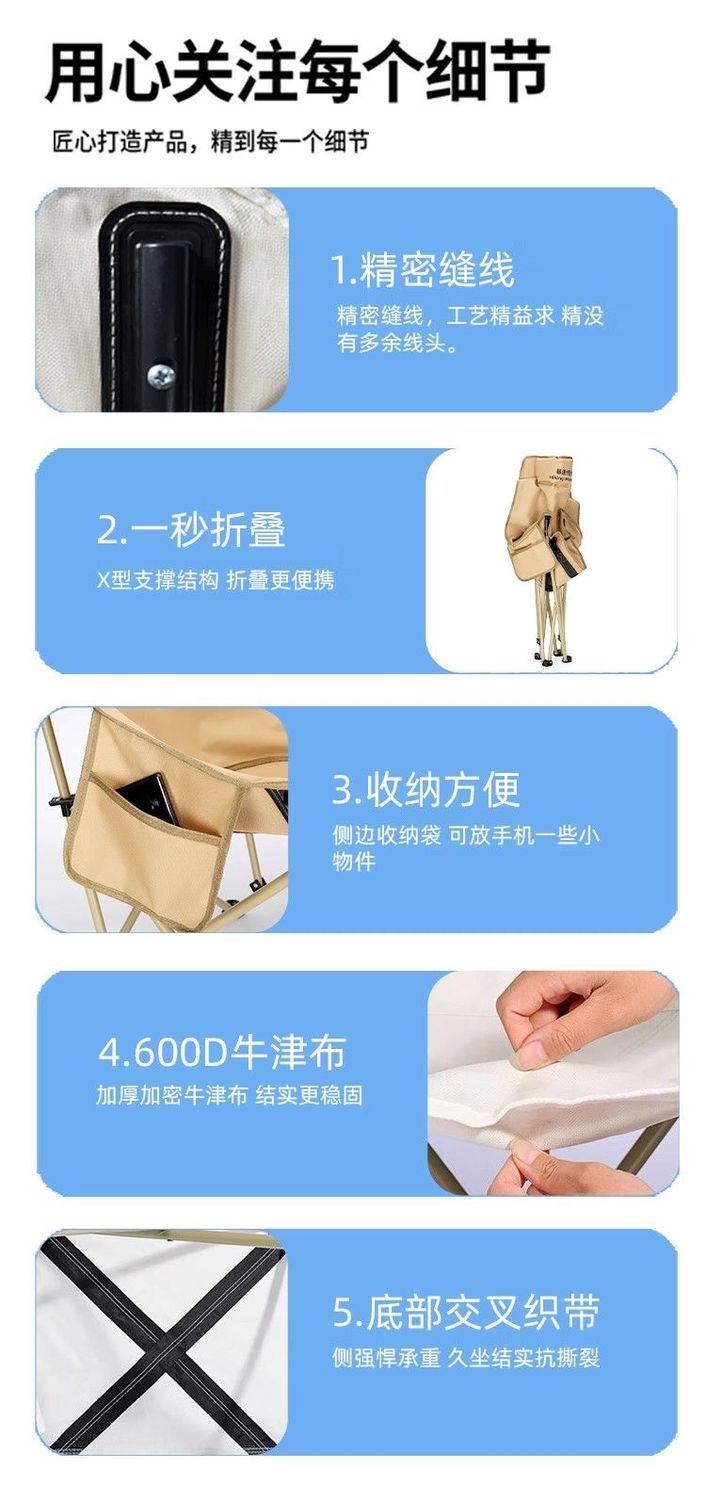 户外折叠椅高靠背月亮椅便携式椅子凳摆摊美术生椅子儿童旅行加厚