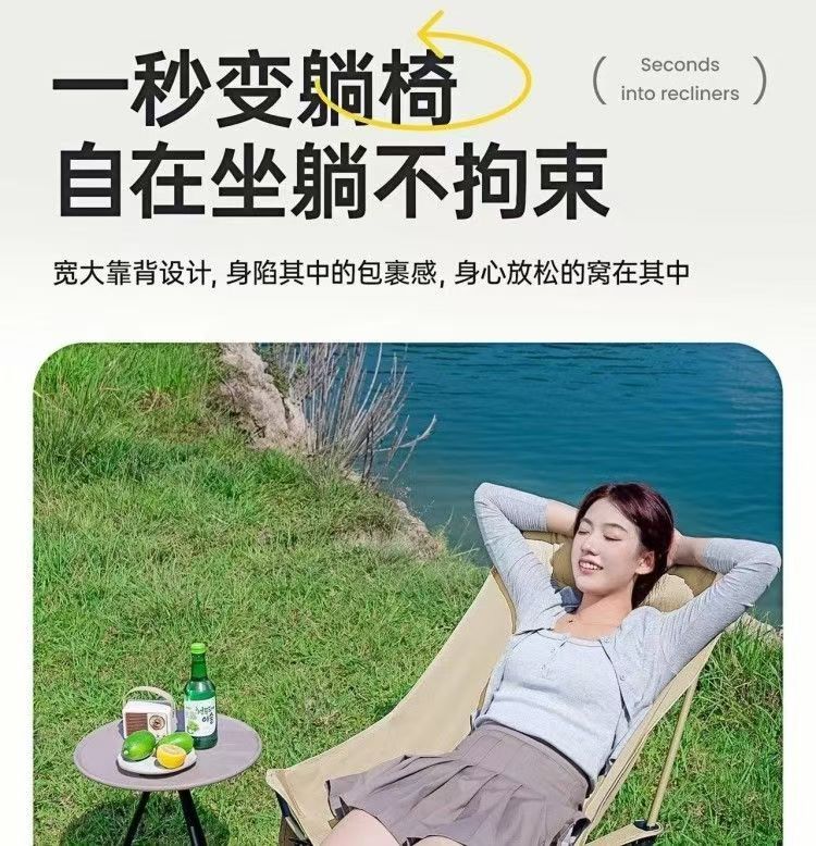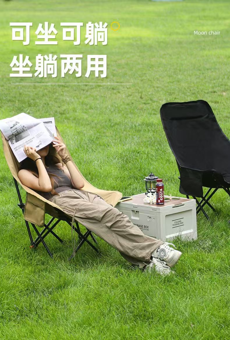 三档可调节躺椅户外月亮椅折叠椅露营椅子便携式办公室午休沙滩椅