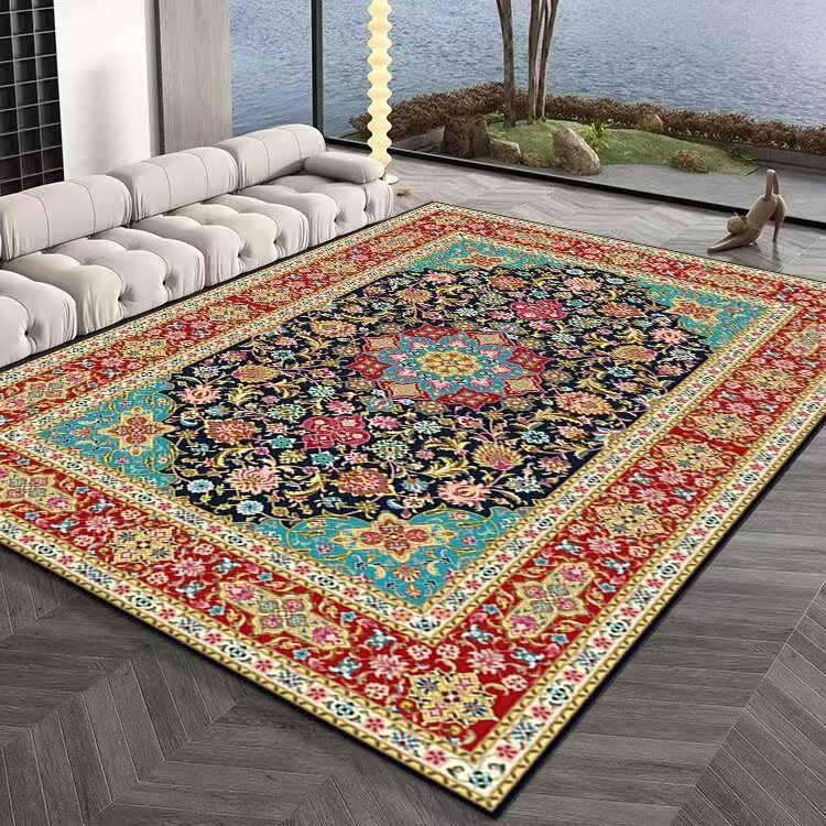 跨境仿羊绒可折叠水洗背客厅地毯亚马逊波斯民族风地毯卧室床边毯