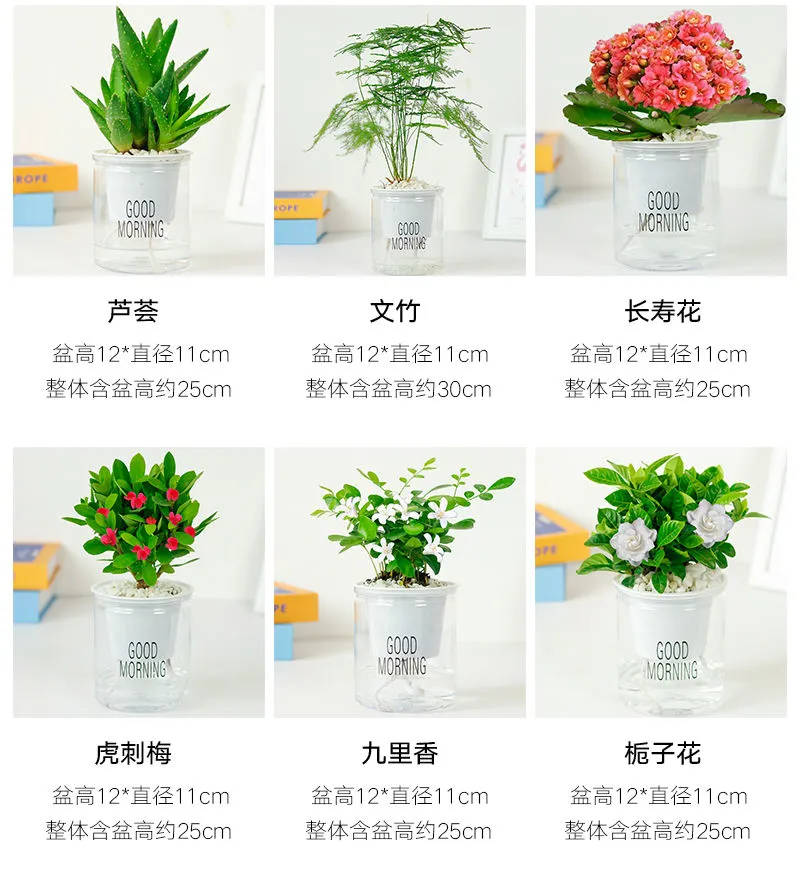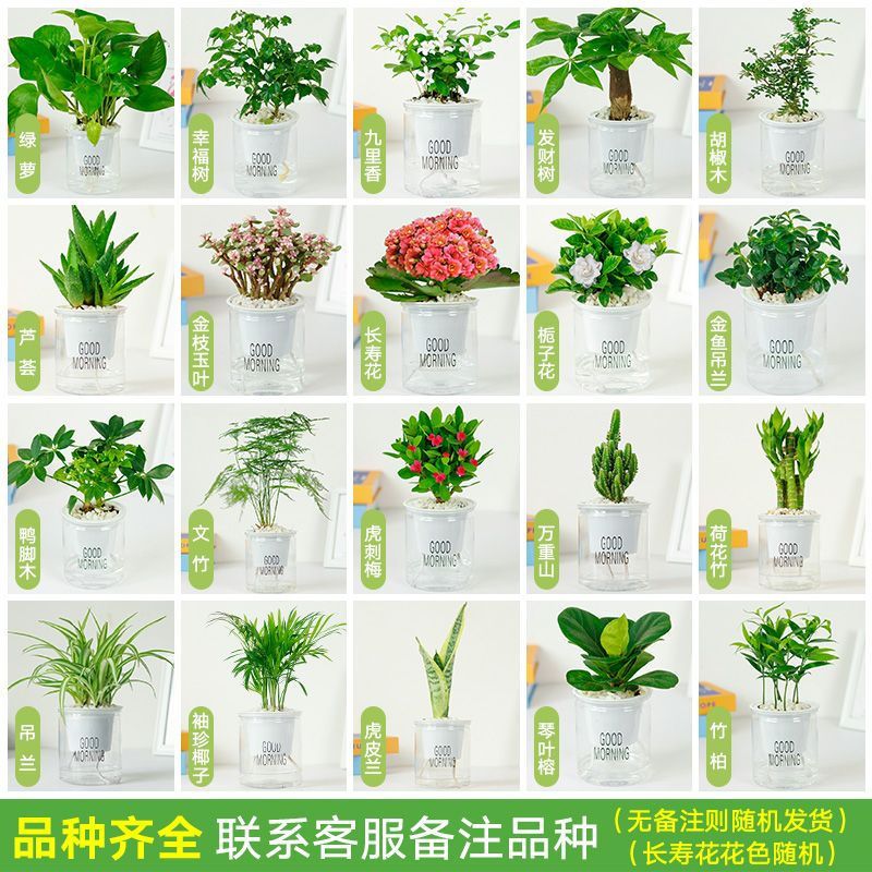 绿植盆栽花卉室内好养发财树办公室文竹栀子花绿萝水培小植物多肉