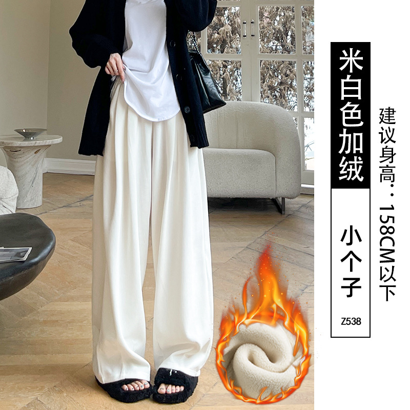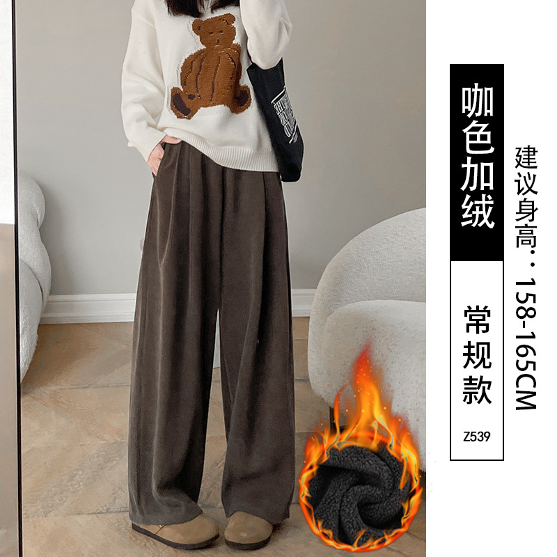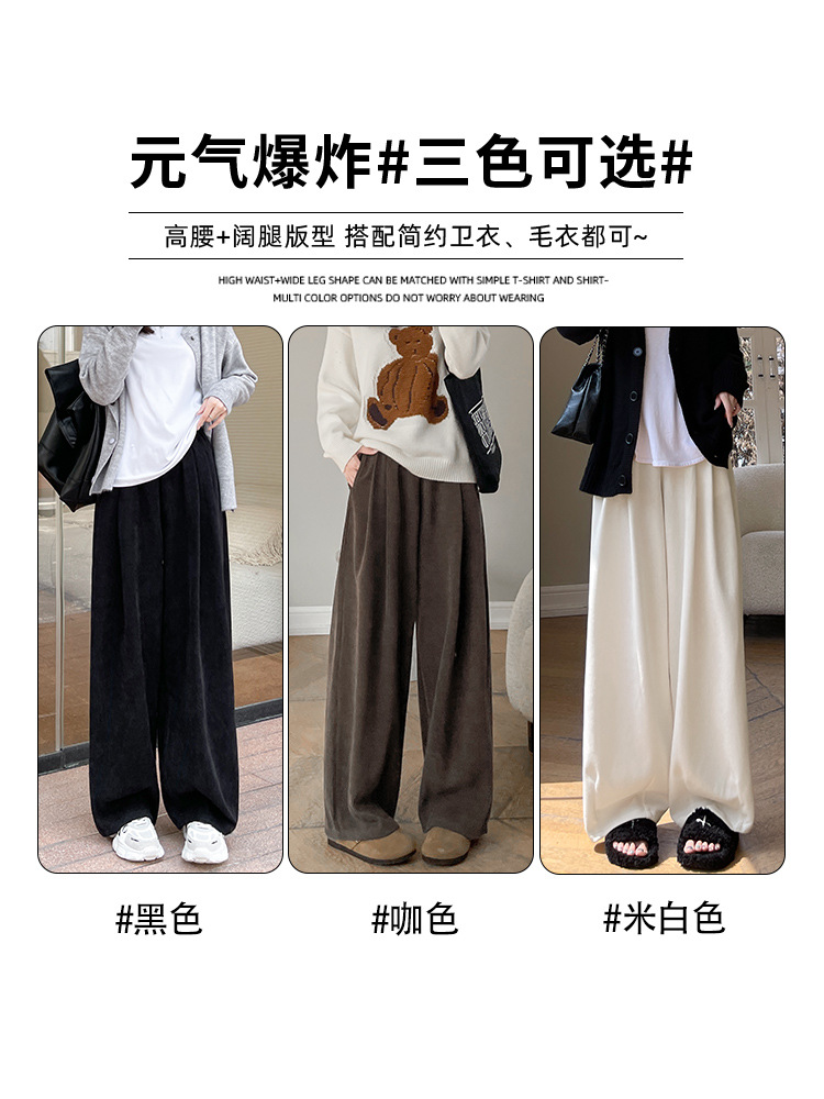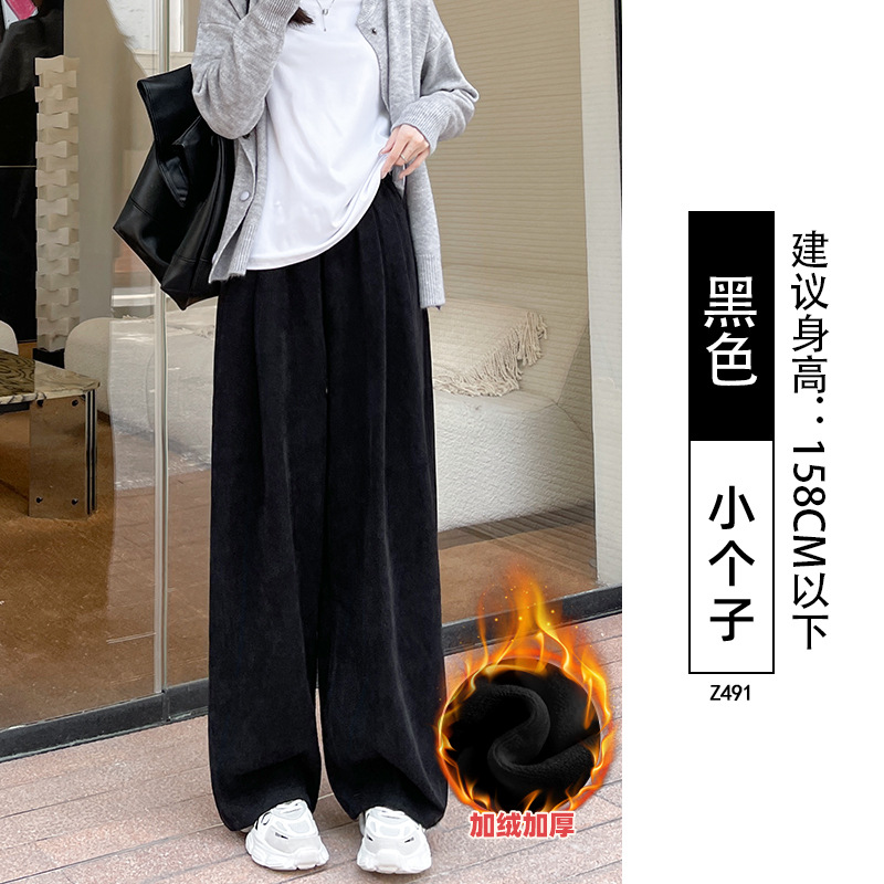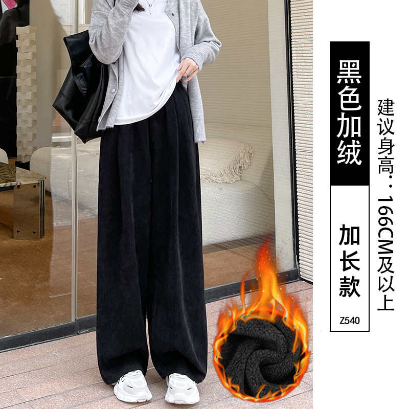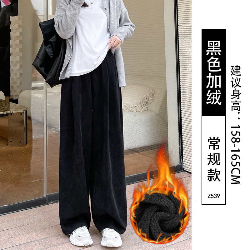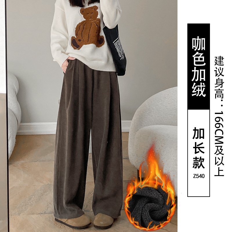 雪尼尔阔腿裤女秋冬季2024新款高腰直筒宽松加绒加厚慵懒山本裤子