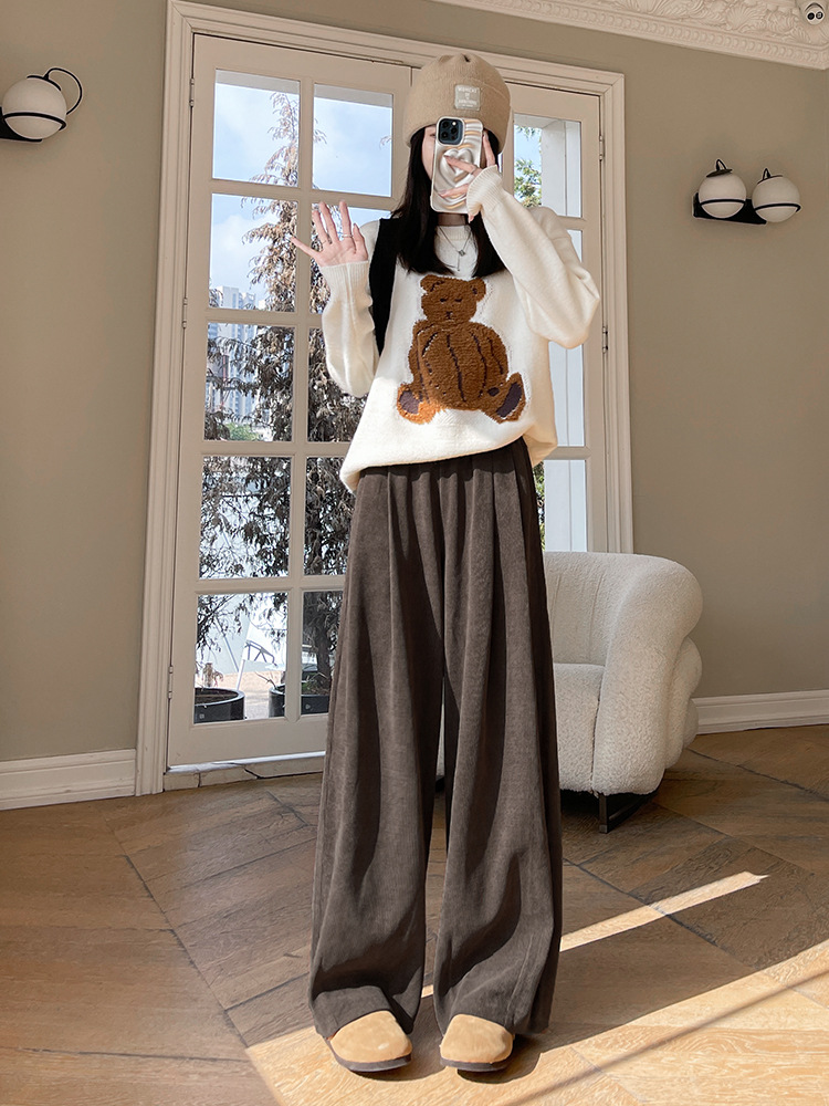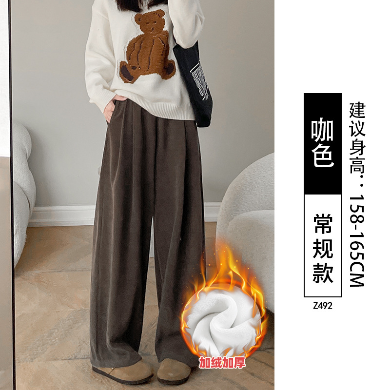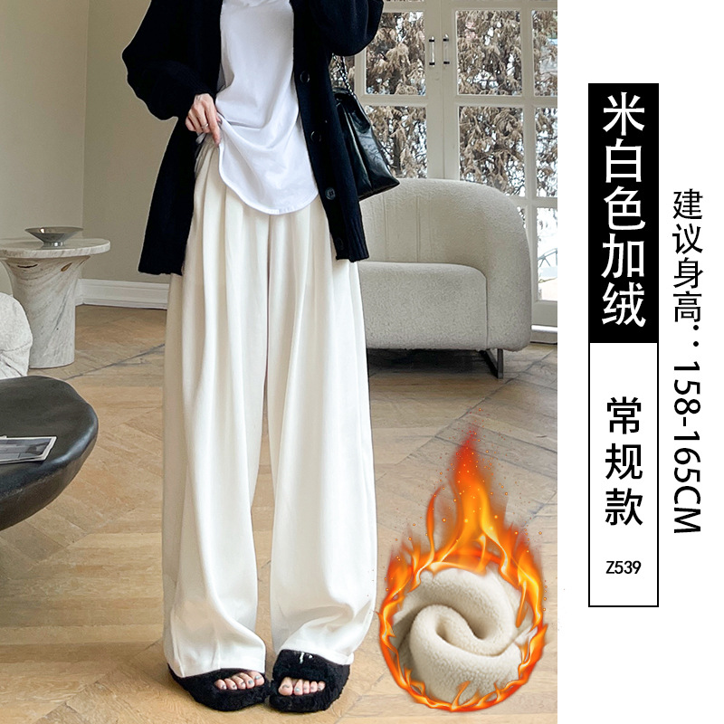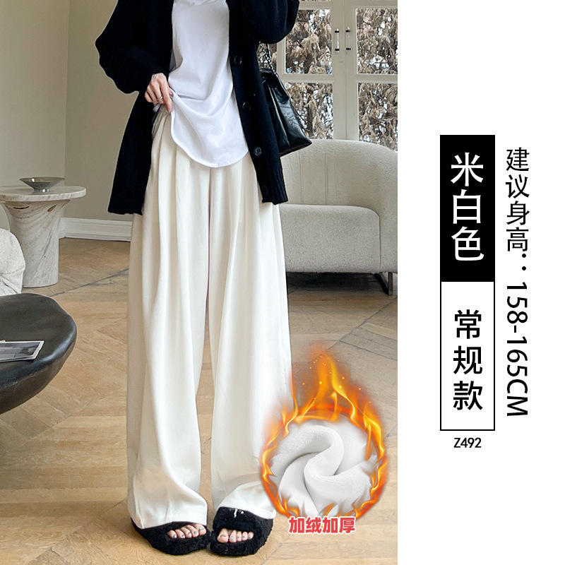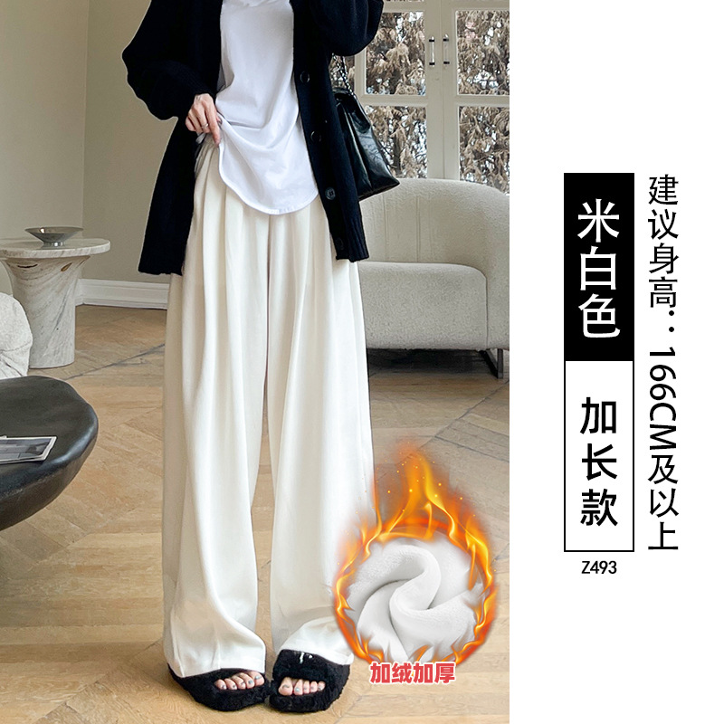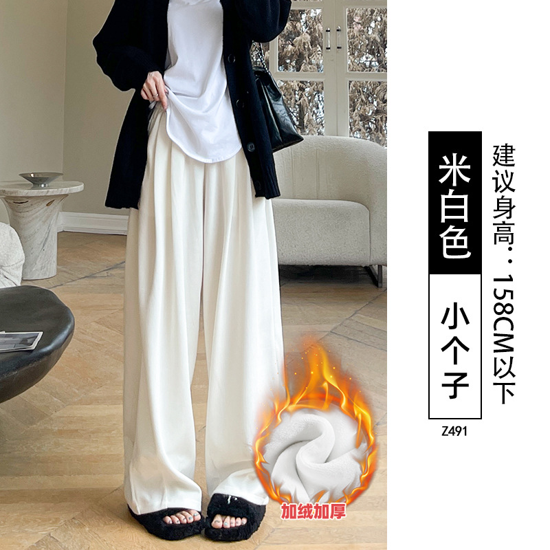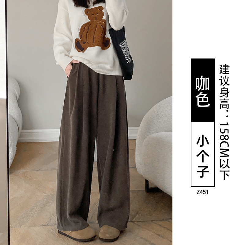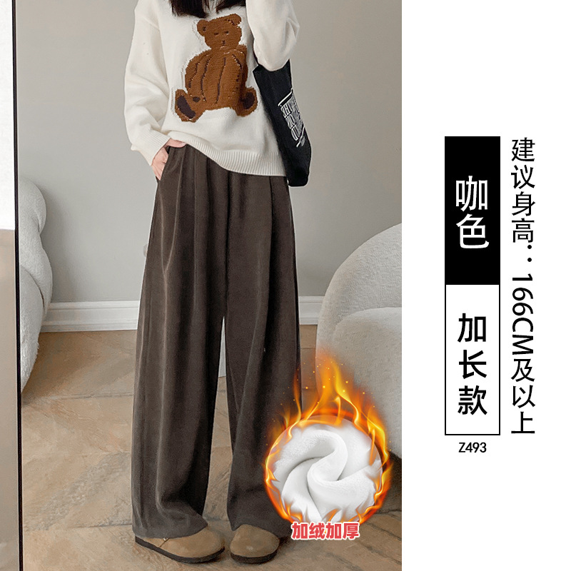 雪尼尔阔腿裤女秋冬季2024新款高腰直筒宽松加绒加厚慵懒山本裤子