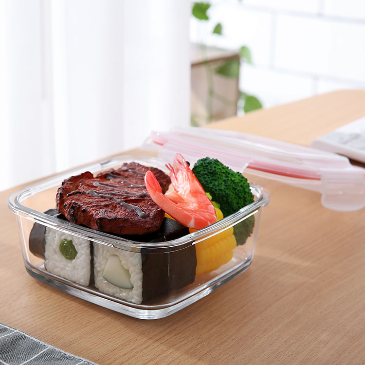 批发现货方形矩形玻璃饭盒上班族便当餐盒分隔微波炉餐具精美包装