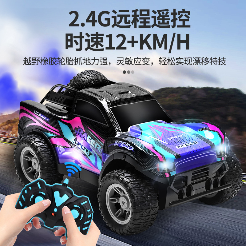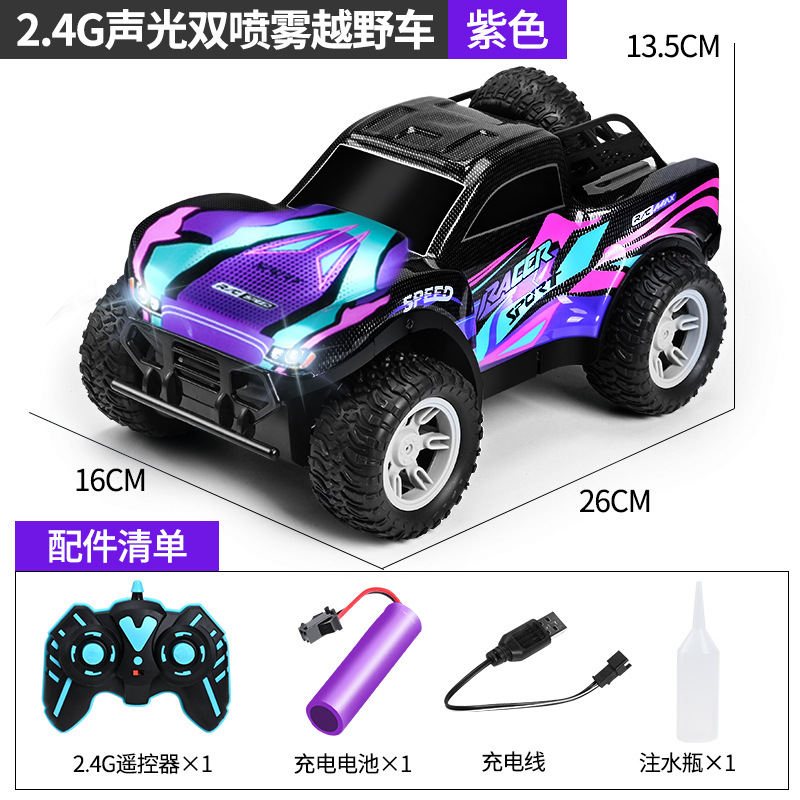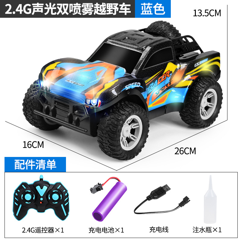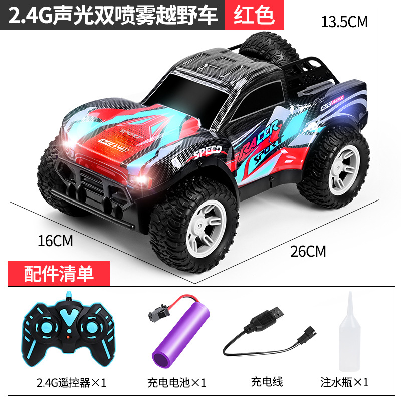 跨境新品遥控车双喷雾皮卡车四驱越野赛车漂移动感音乐儿童玩具