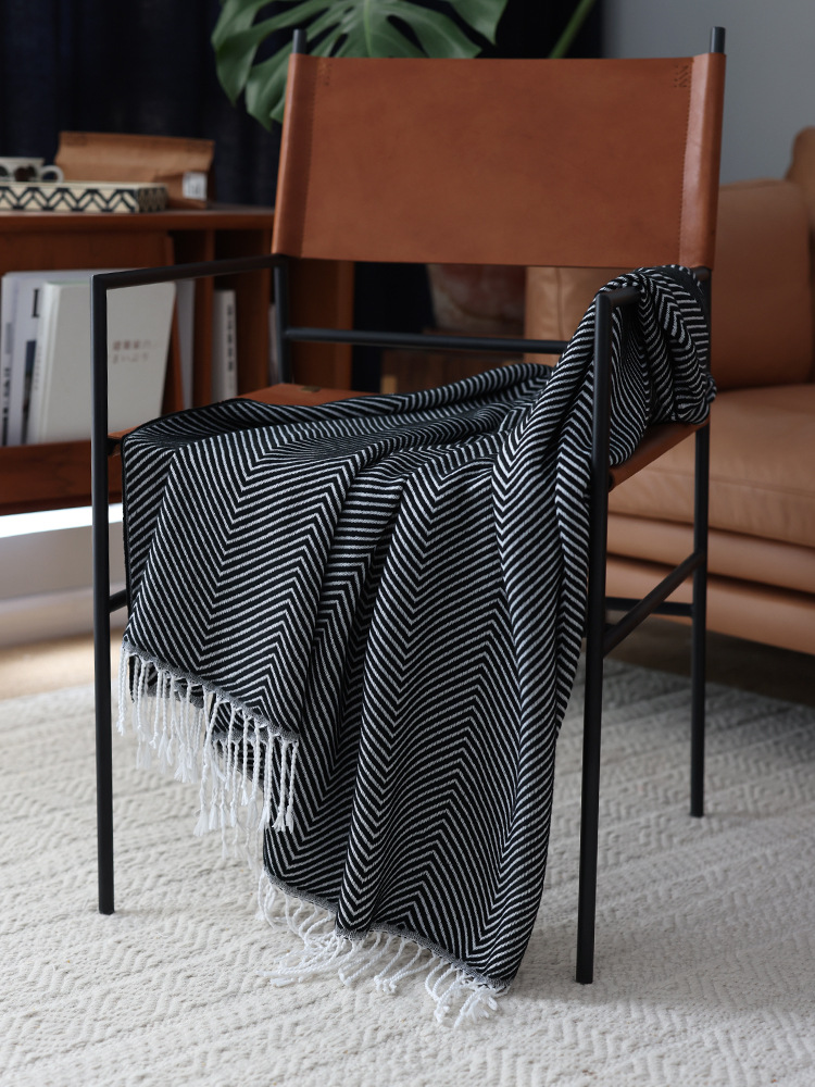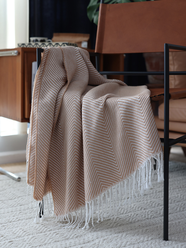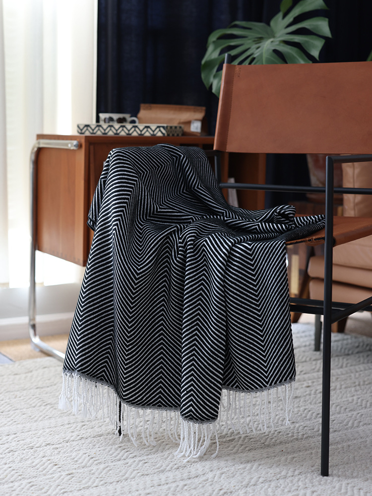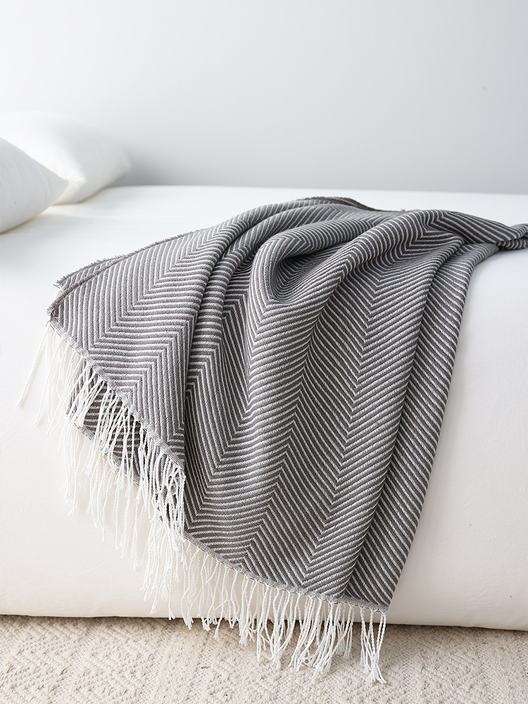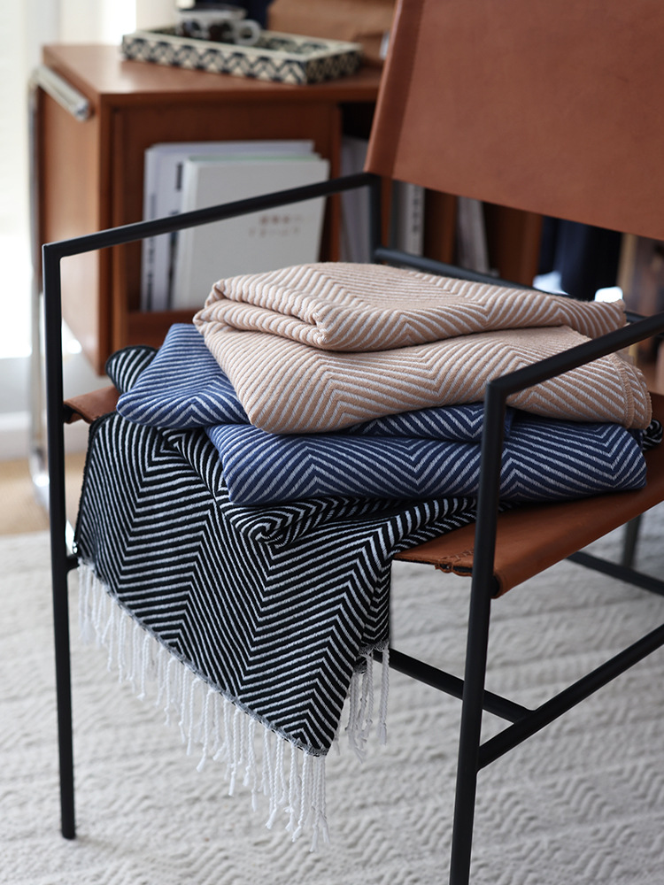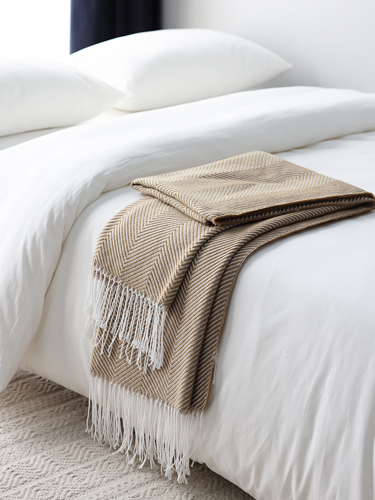 人字纹提花床尾巾搭毯北欧休闲装饰毯现货一件代发北欧INS风毛毯